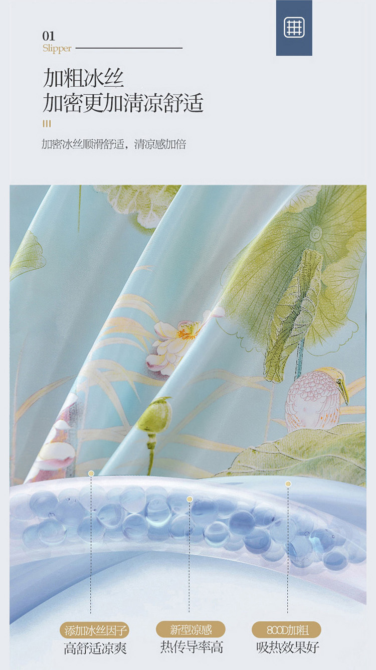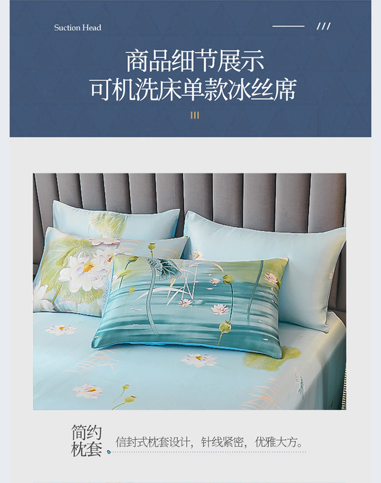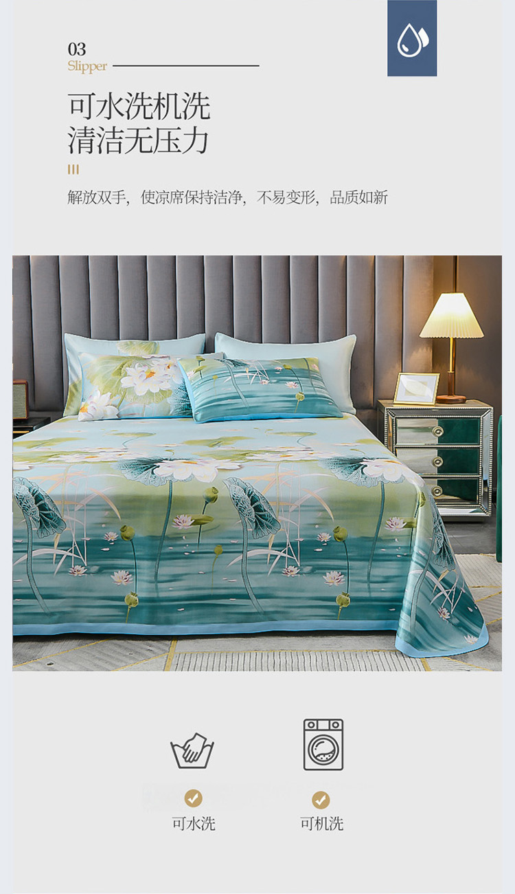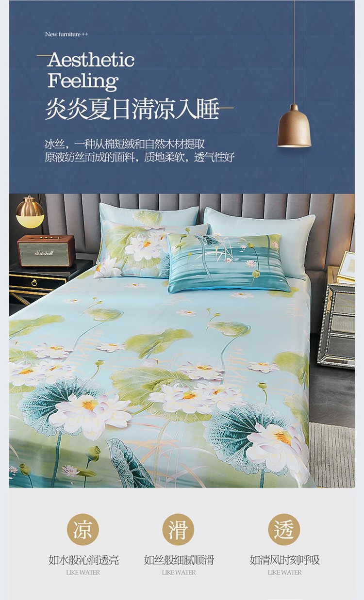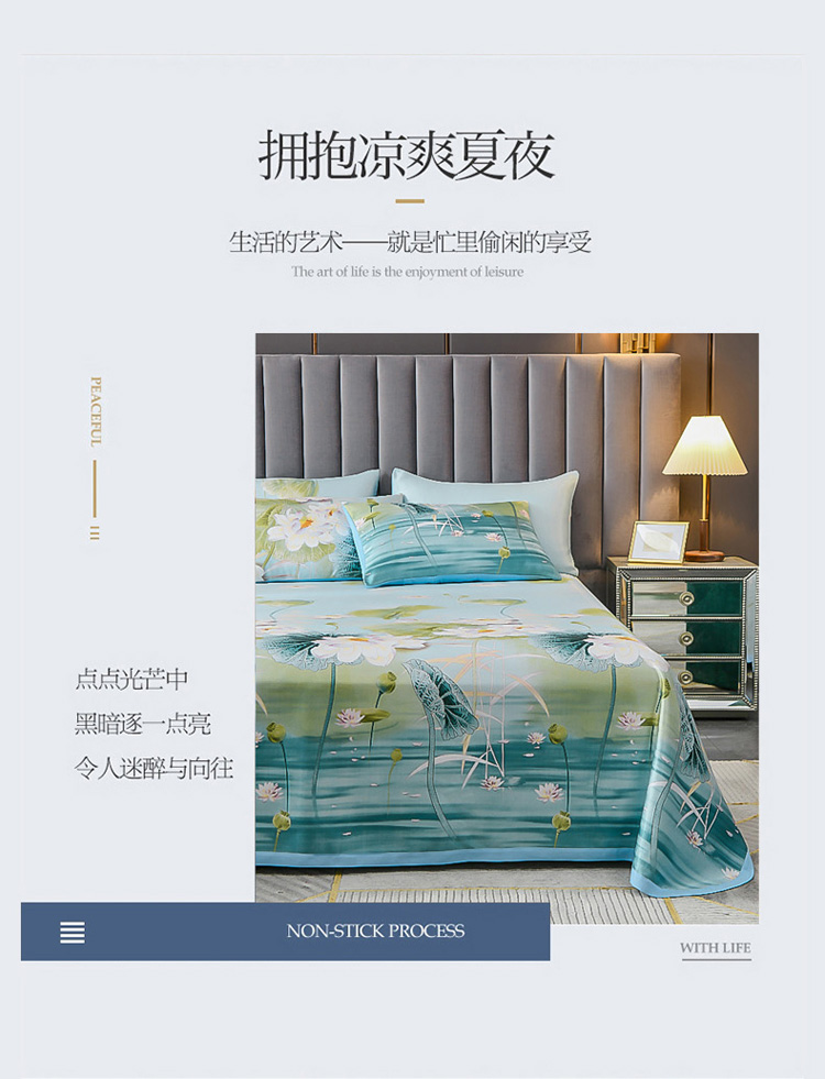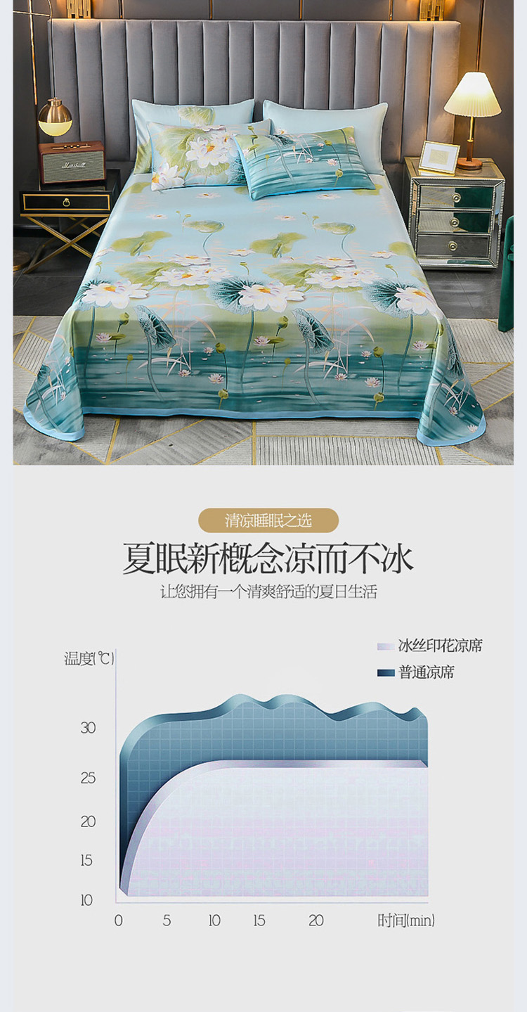 商品名称:迷仙巢2021新款印花冰丝凉席(床单款) 荷塘月色