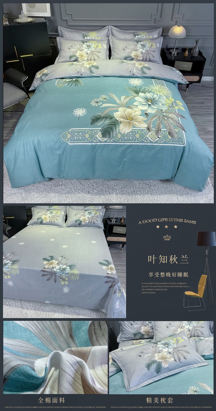 当前位置: 91家纺网 > 商品网购 > 床品套件 > 四件套 > 全棉活性四件套 > 金爱家 2021新款全棉活性花卉系列四件套 叶知秋兰