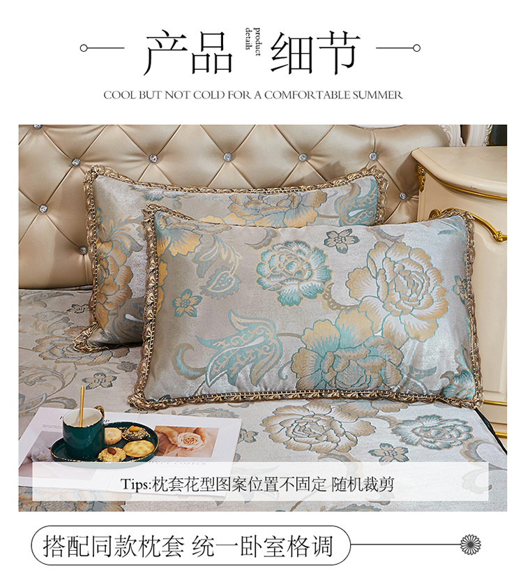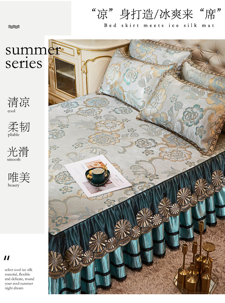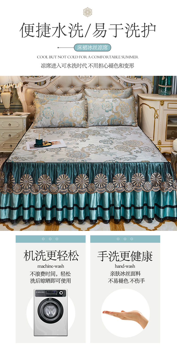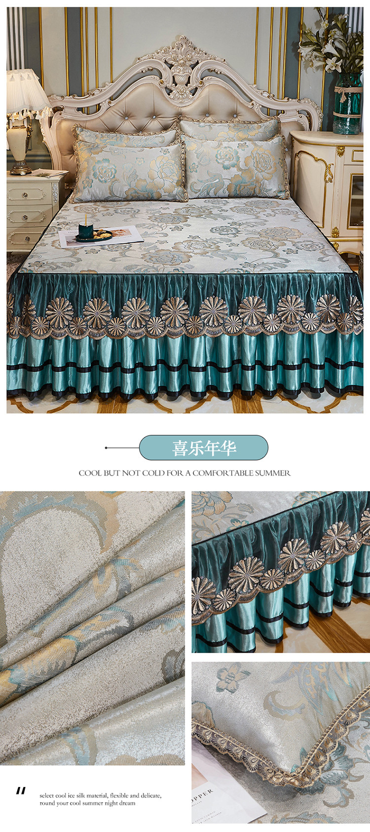 商品名称:网红馆 2025新款大提花冰丝凉席床裙款三件套 喜乐年华