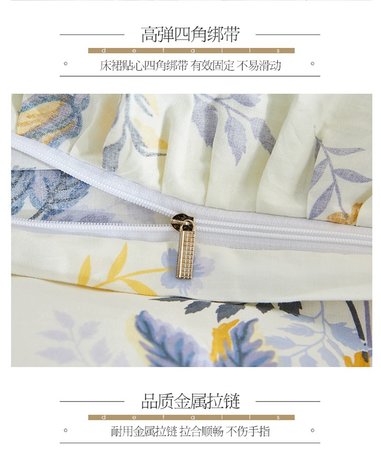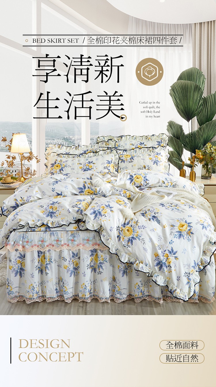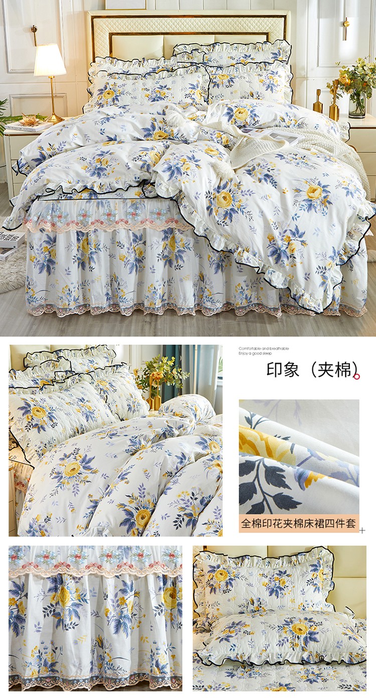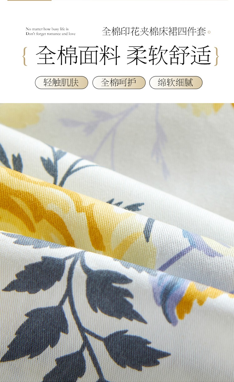 当前位置: 91家纺网 > 商品网购 > 床品套件 > 四件套 > 全棉普通四件套 > 宜凡 2021新款全棉印花夹棉床裙-床裙四件套 印象