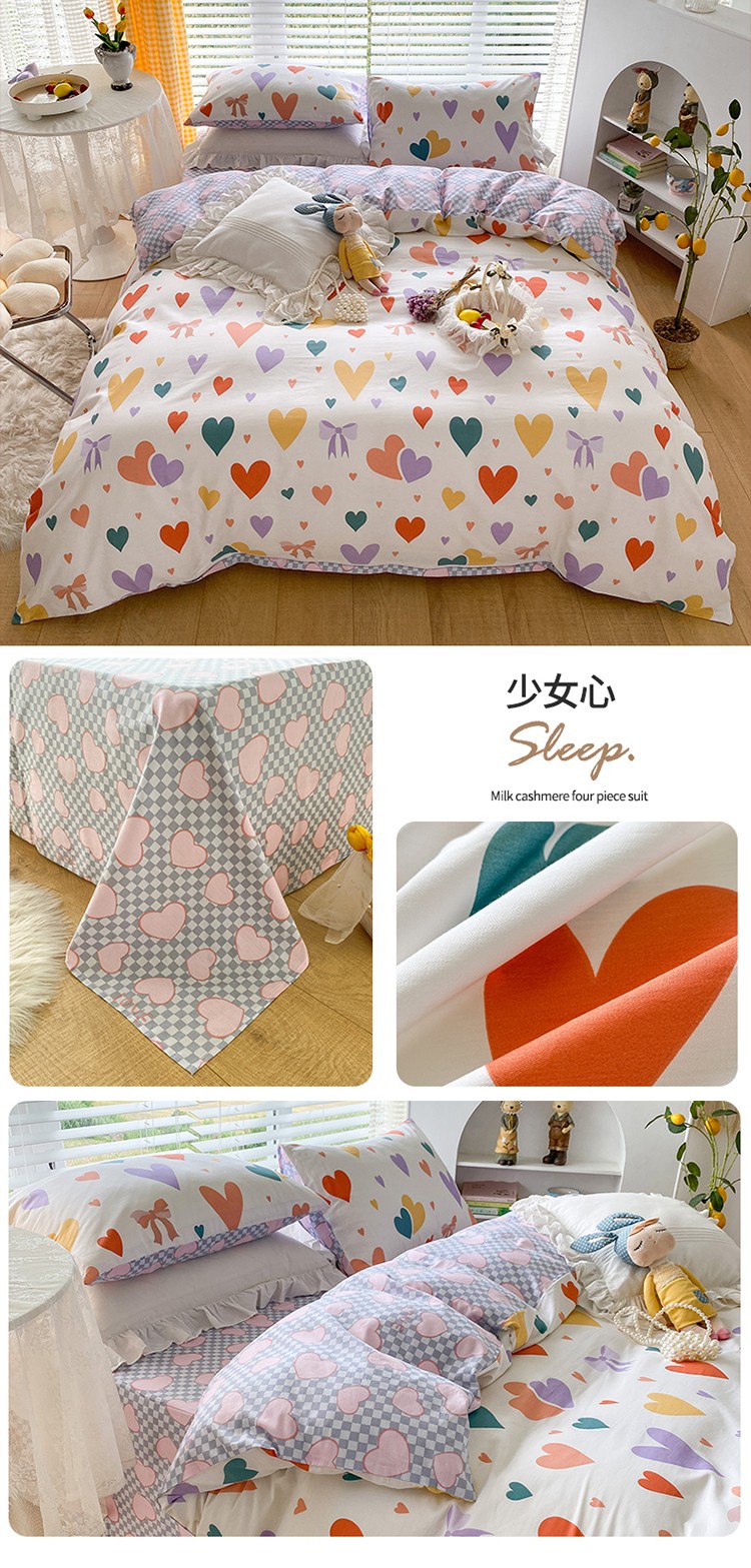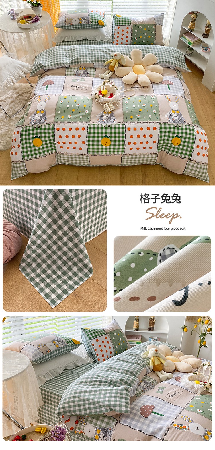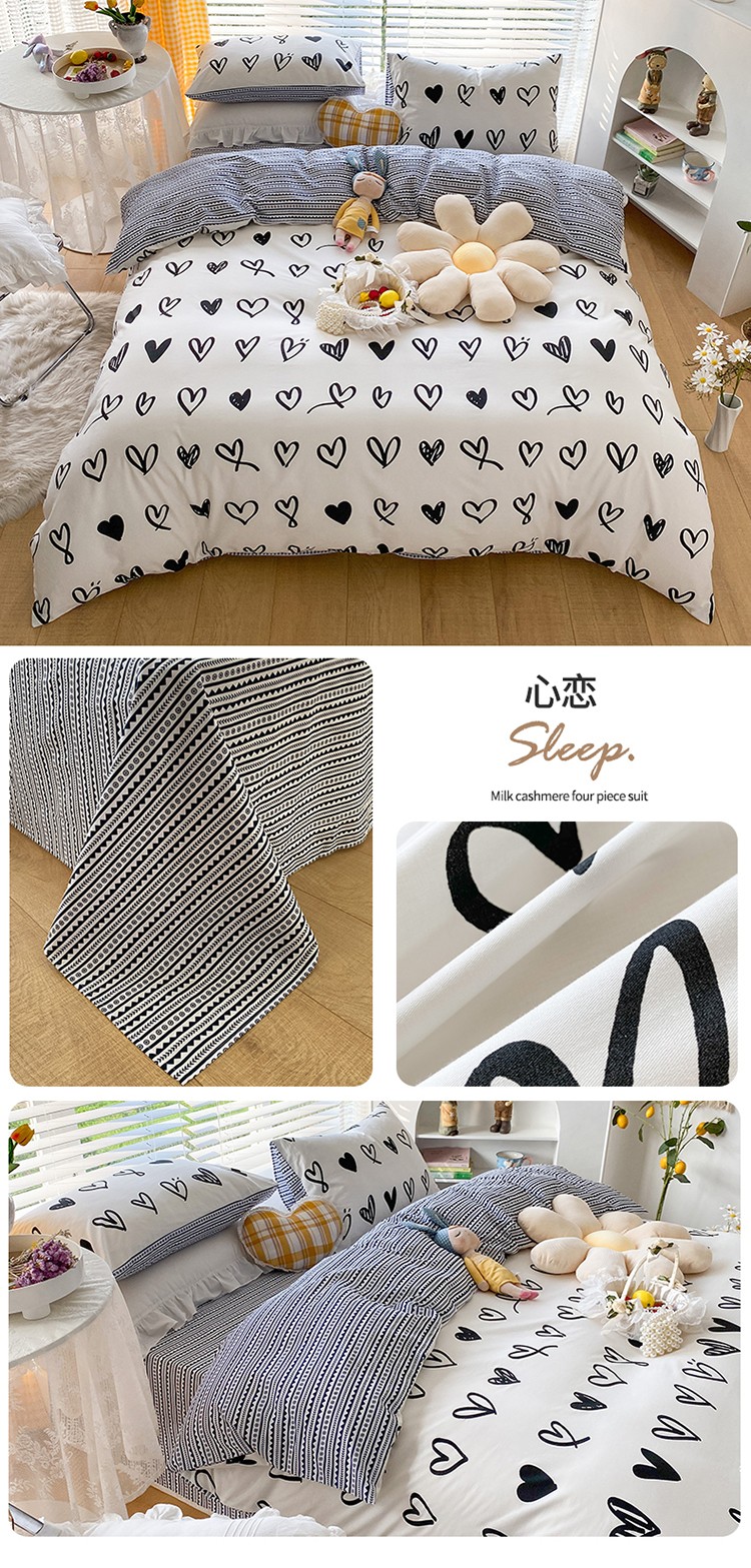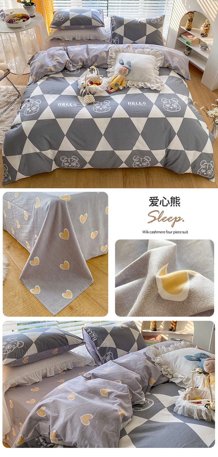 (总)2023新款40支纱全棉13070锁边工艺款四件套系列,格子爱心,嘉兰,咖条,朗尼,小兔兔,星星兔