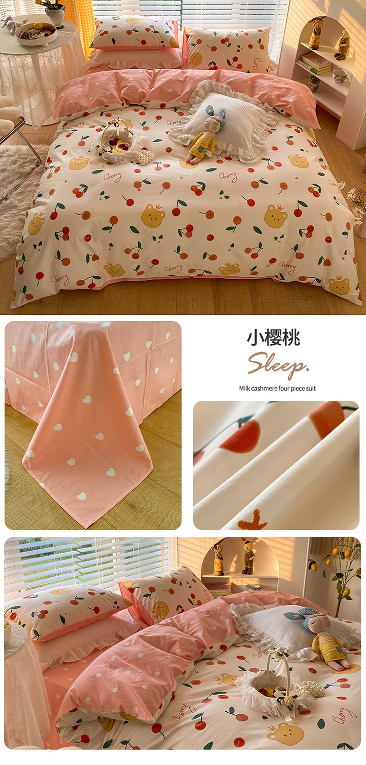 (总)珺柔家纺 2025新款全棉双层纱印花四件套,粉豹纹,焦糖小曲奇,礼物女孩,猫狗日记,奶油星空,线条苹果猫,小飞象,小狗的家,樱桃,樱桃西高地