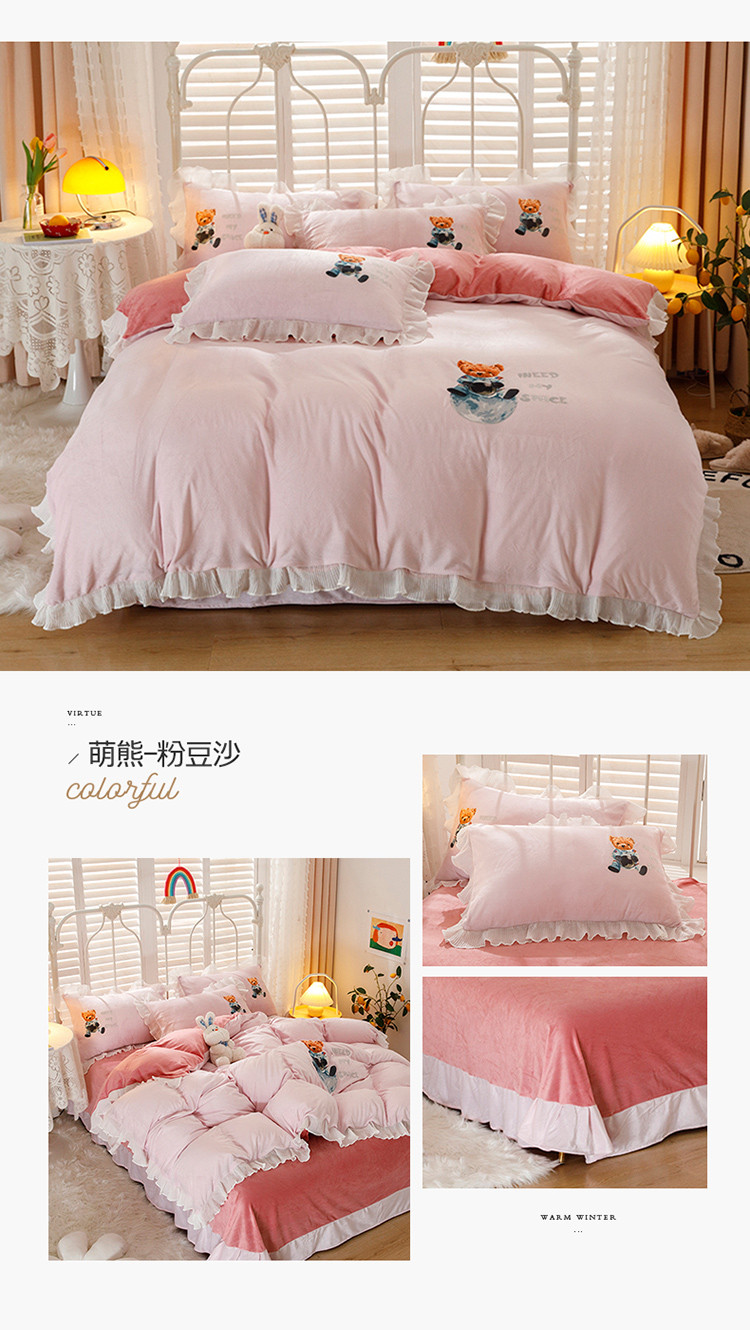 商品名称:(总)纽缦 2021新款韩版水晶绒床单四件套法莱水晶牛奶
