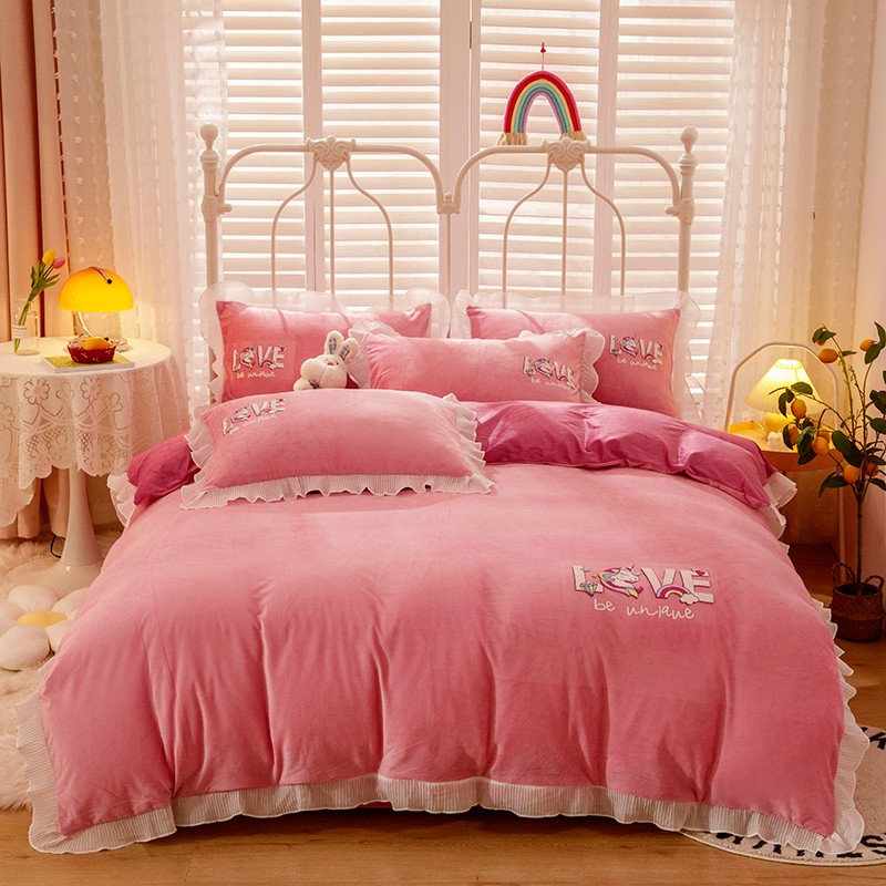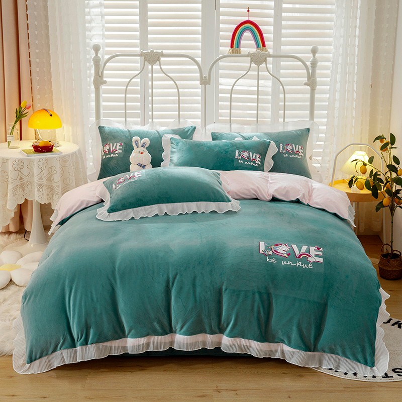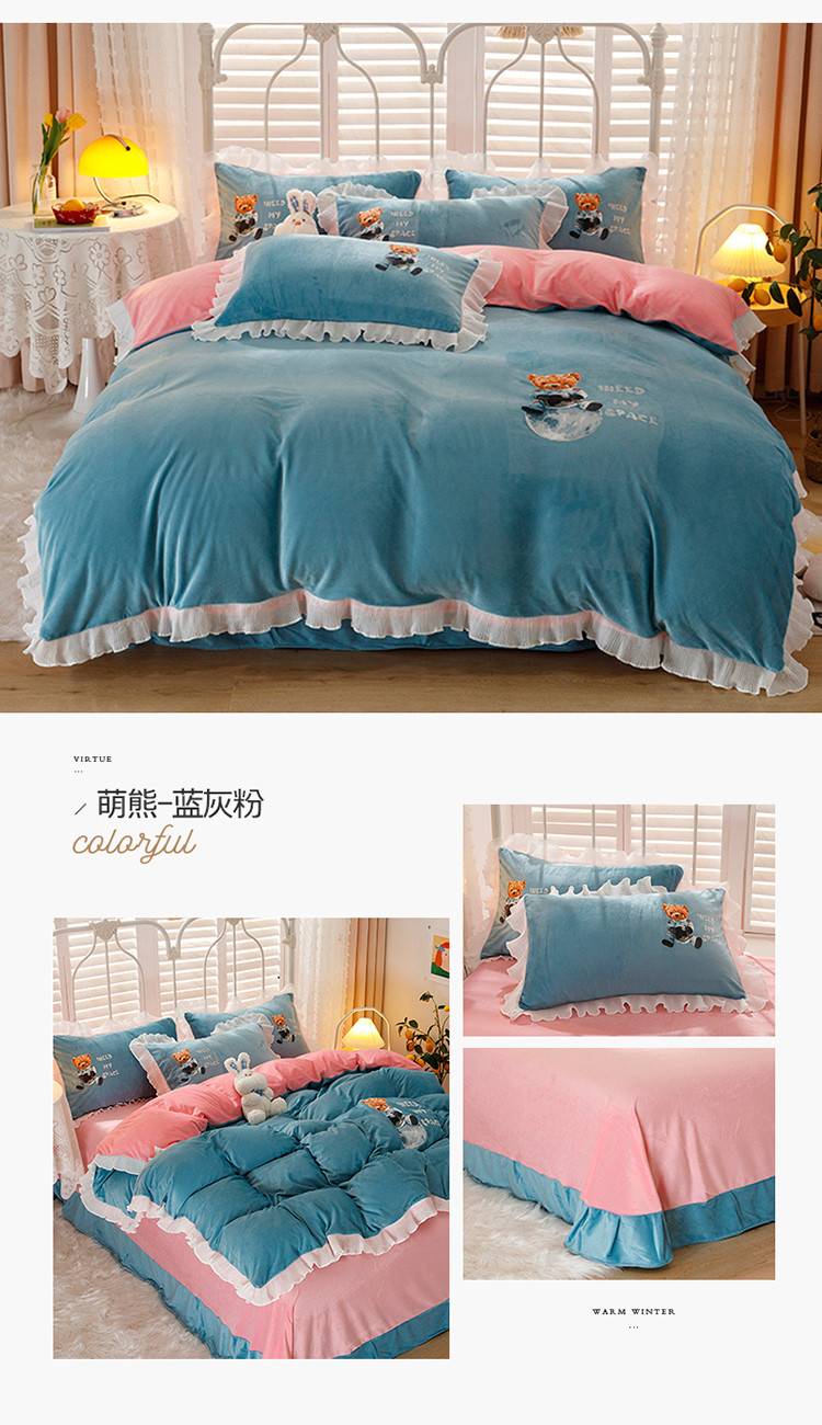 (总)纽缦 2021新款韩版水晶绒床单四件套法莱水晶牛奶