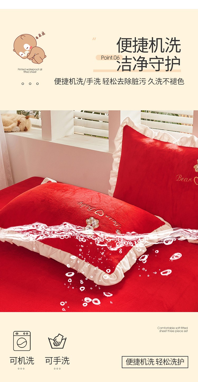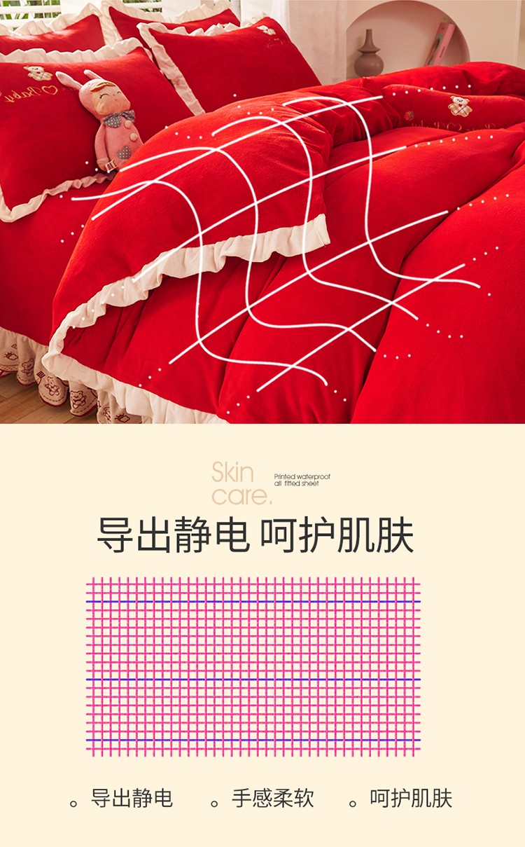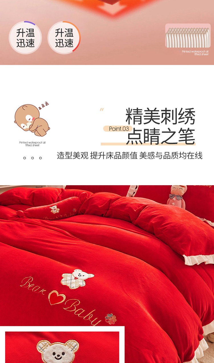商品名称:宜凡家纺 2021新款牛奶绒绣花熊床单四件套 可爱熊-大红