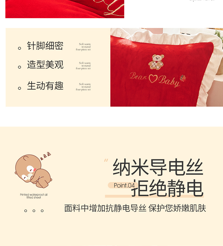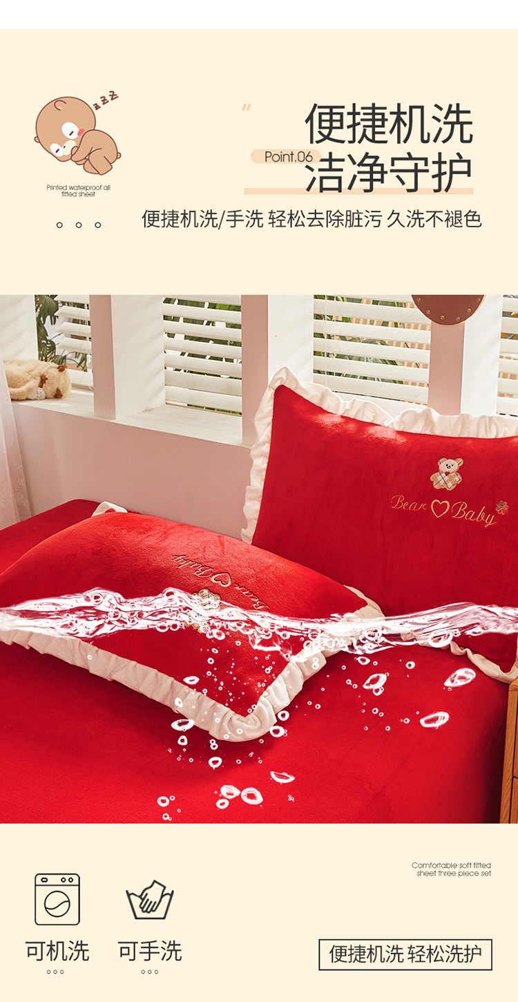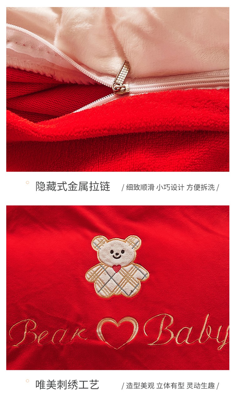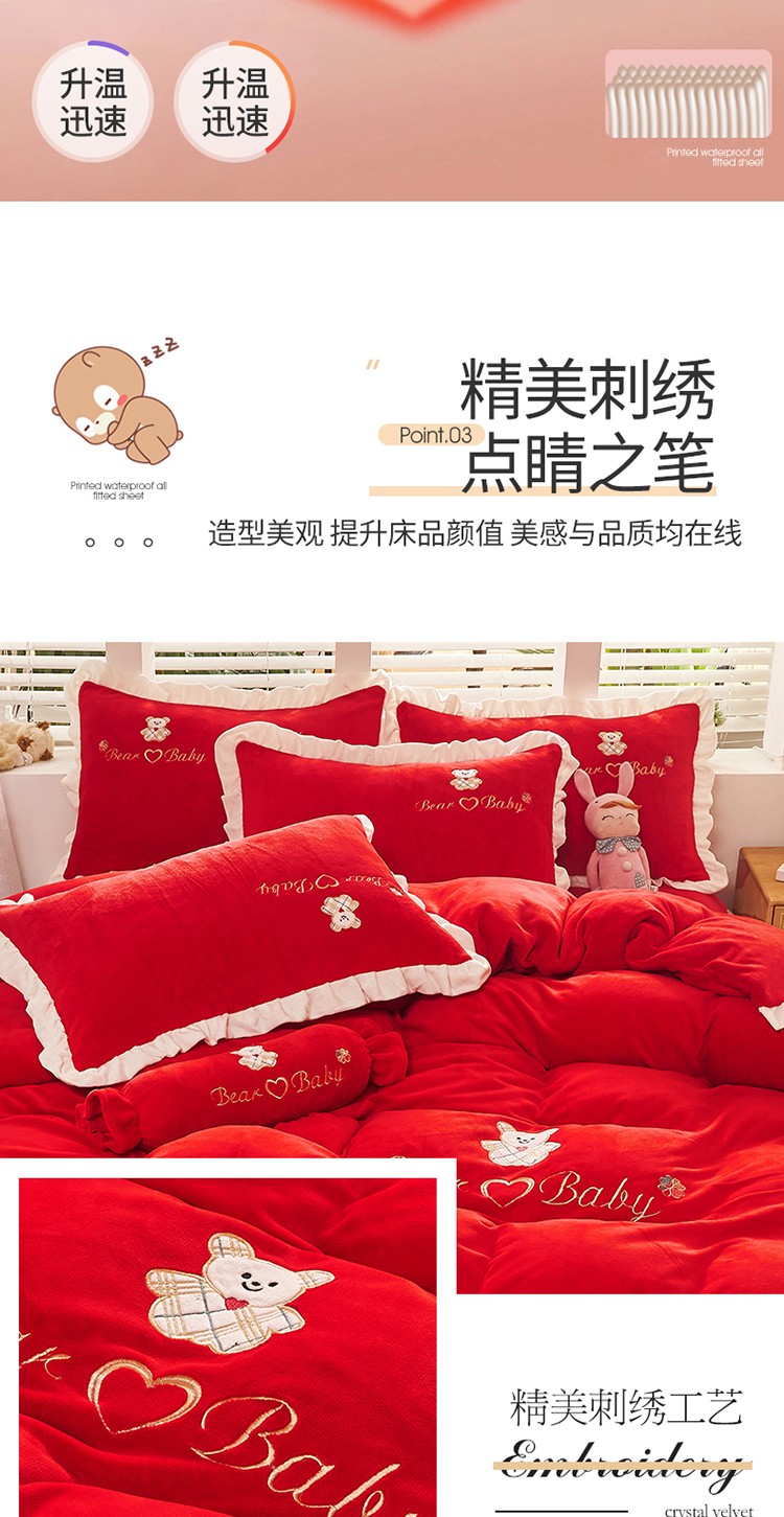 商品名称:宜凡家纺 2021新款牛奶绒绣花熊床裙四件套 可爱熊-大红