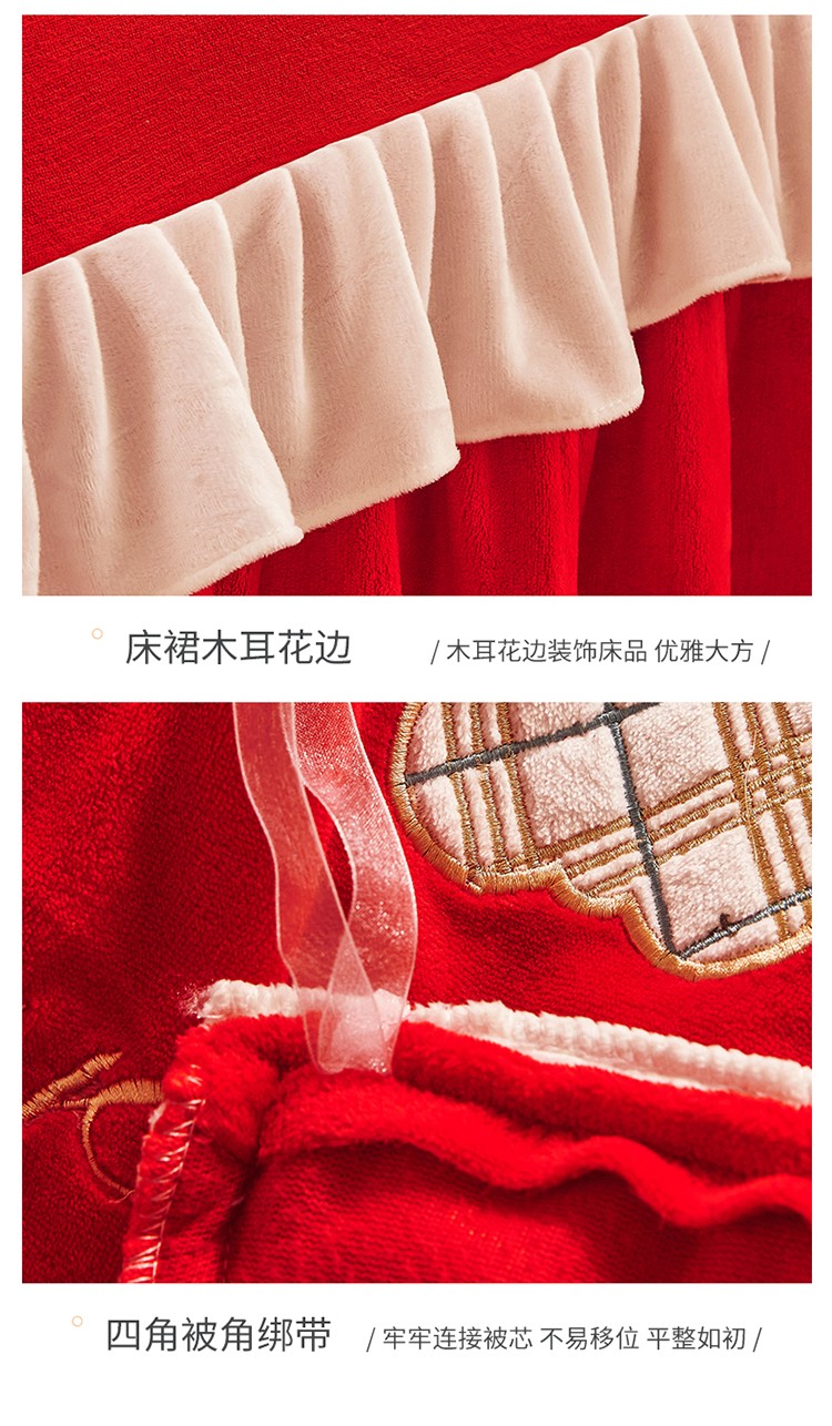 (总)宜凡家纺 2025新款婴儿绒压花全夹棉床裙四件套,韵雅-中国红,韵雅-黑天鹅