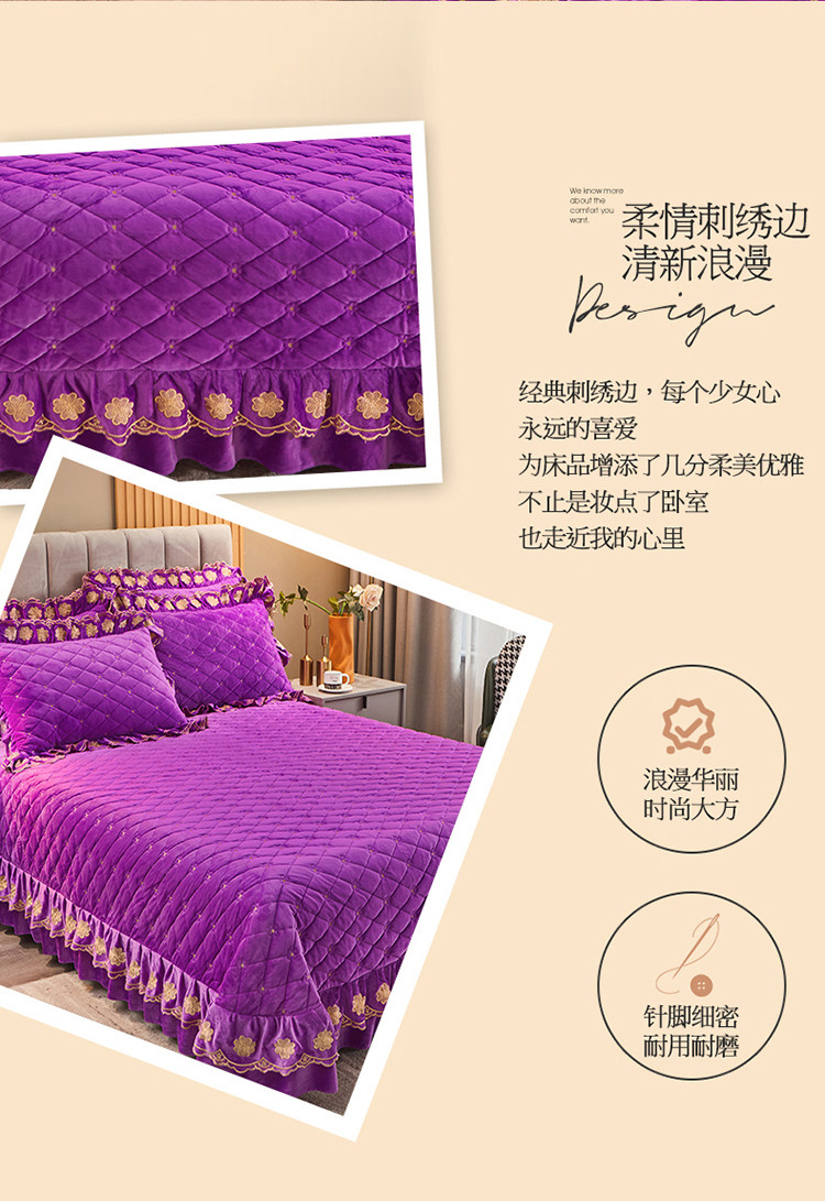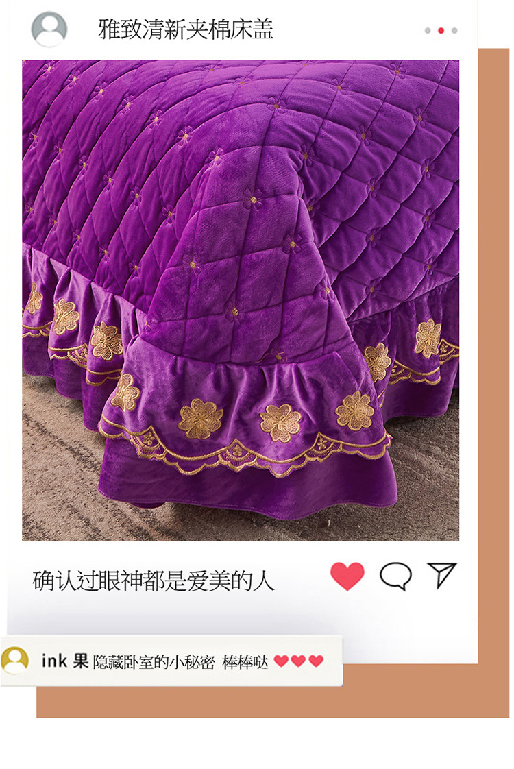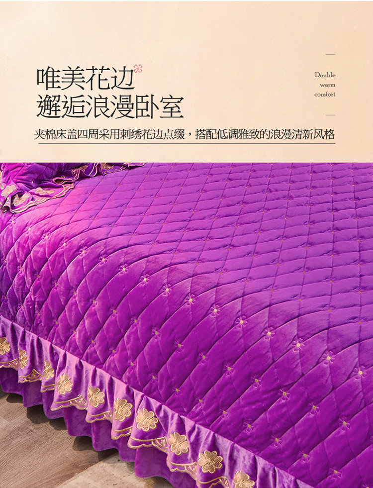 (总)恒爱 2022秋冬水晶绒翩翩花舞夹棉床裙四件套,大红色,豆沙红,橄榄绿,公主粉,桔色,咖啡色,孔雀绿,拉菲红,罗兰紫,玫红色,美人玉,米白色,米驼色,抹茶绿,浅灰色,紫色