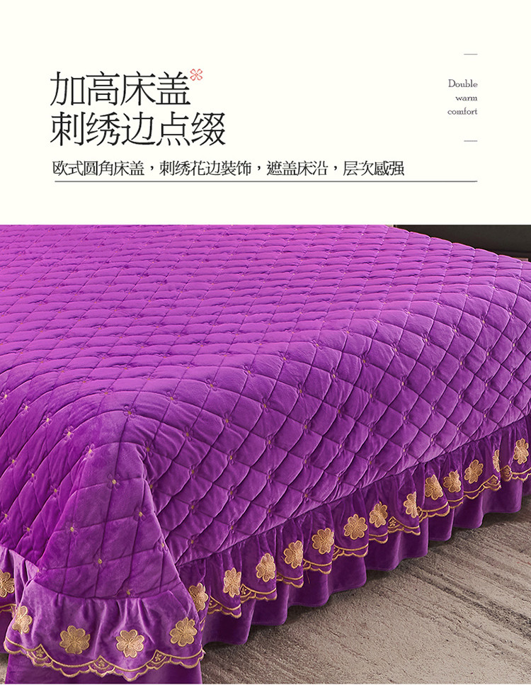 (总)恒爱 2022秋冬水晶绒翩翩花舞夹棉单床裙,大红色,豆沙红,橄榄绿,公主粉,桔色,咖啡色,孔雀绿,拉菲红,罗兰紫,玫红色,美人玉,米白色,米驼色,抹茶绿,浅灰色,紫色