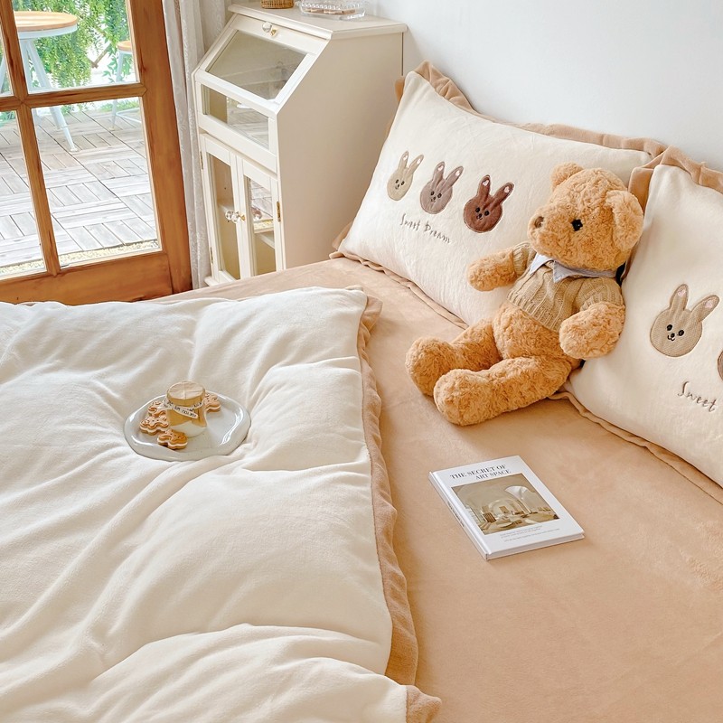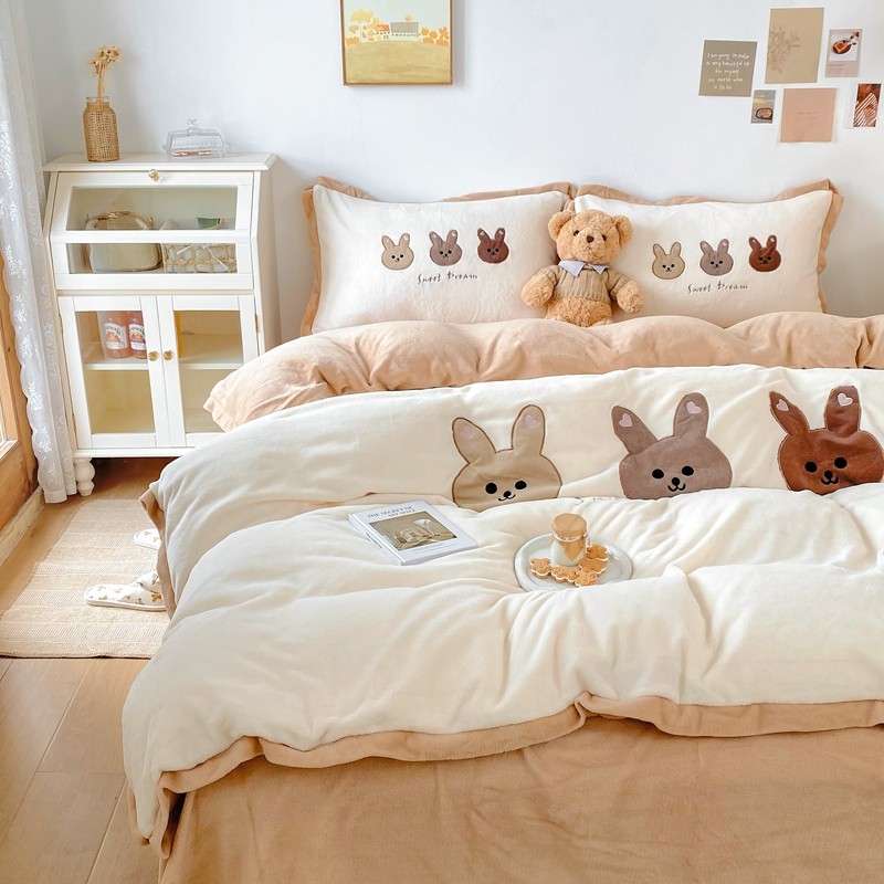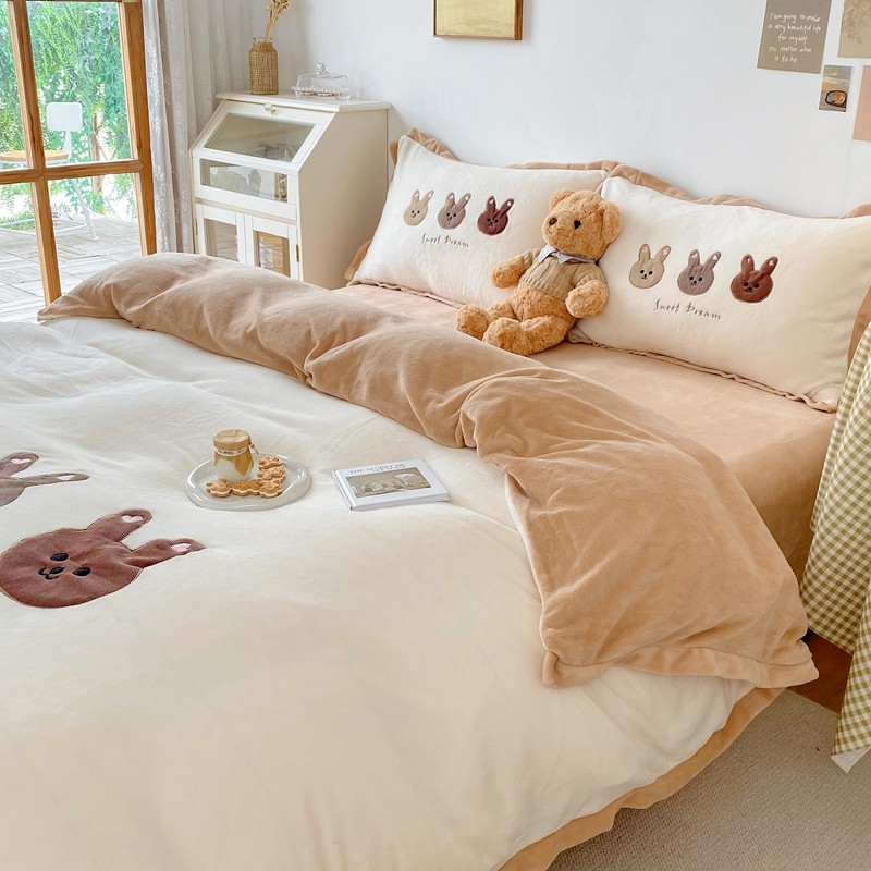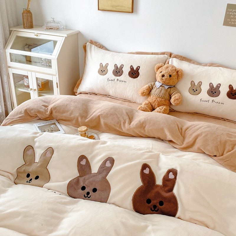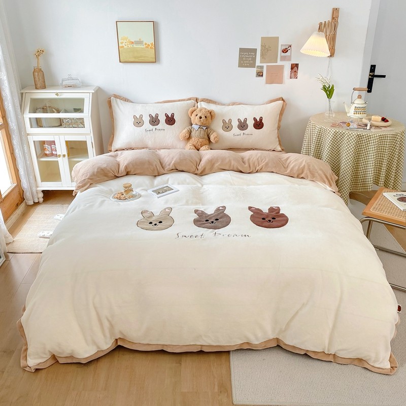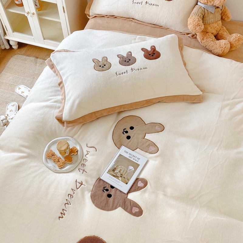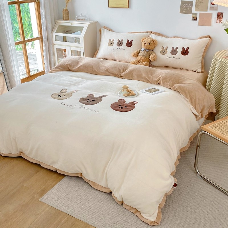 星期八2021新款三只熊牛奶绒四件套水晶法莱绒套件直播 三只兔