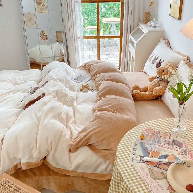 商品名称:星期八2021新款三只熊牛奶绒四件套水晶法莱绒套件直播 三只兔