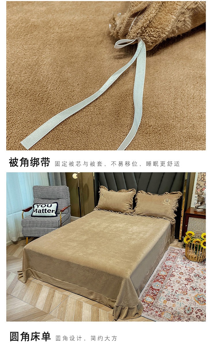 商品名称:忆生活 2021新款韩版纯色牛奶绒刺绣四件套 快乐熊-咖
