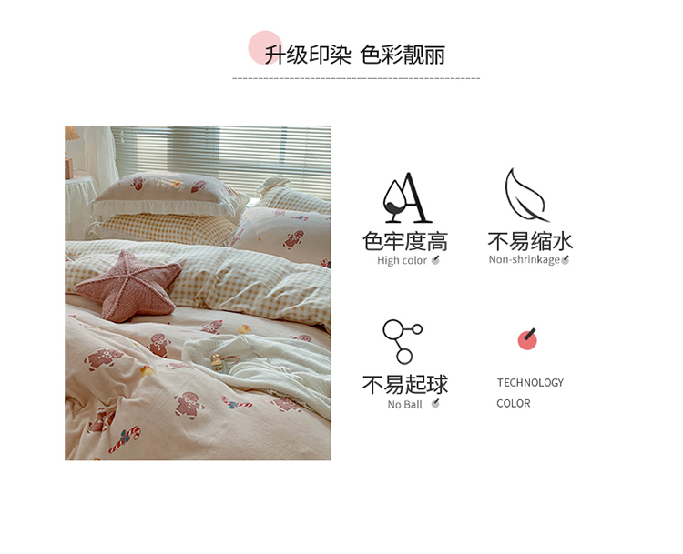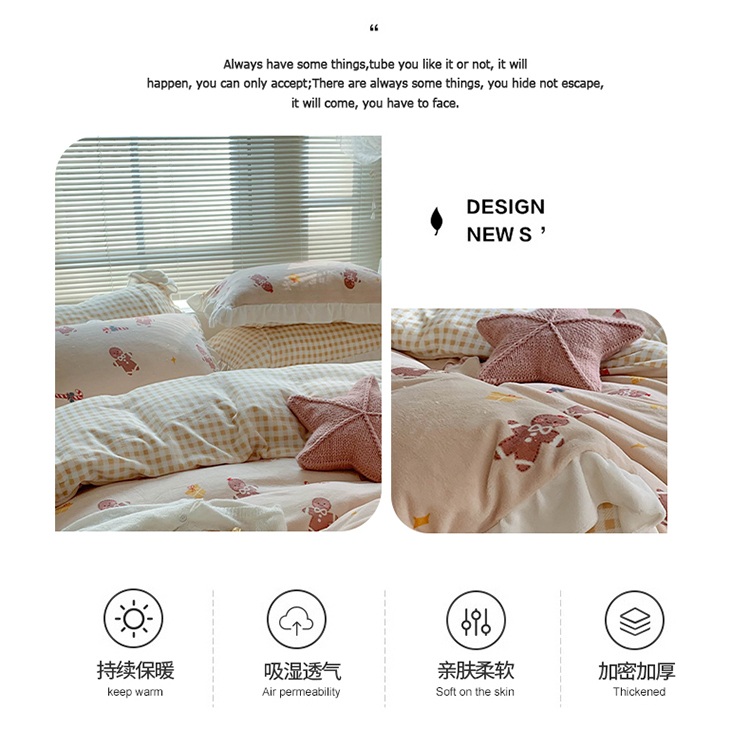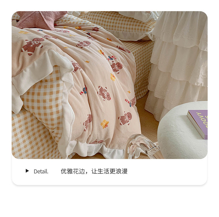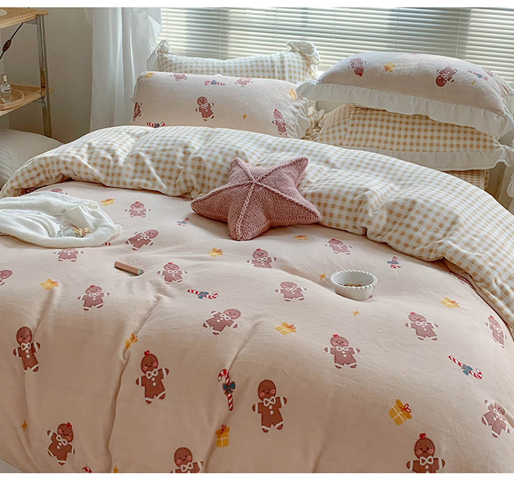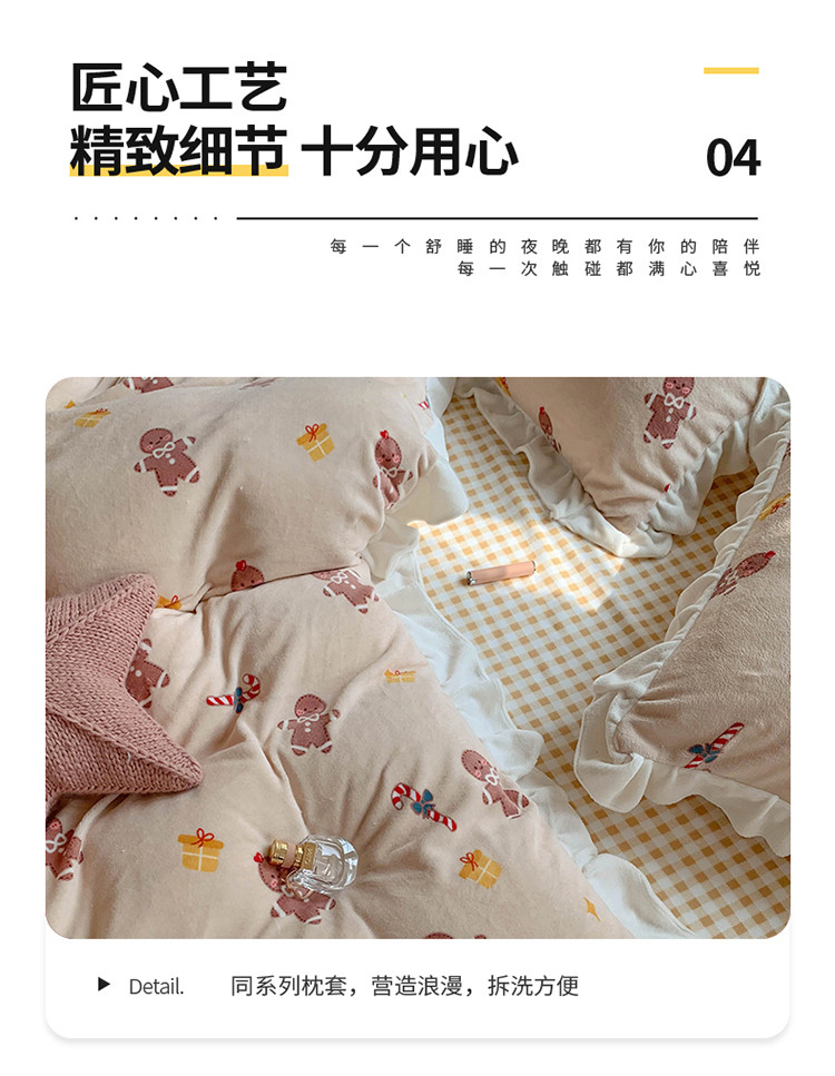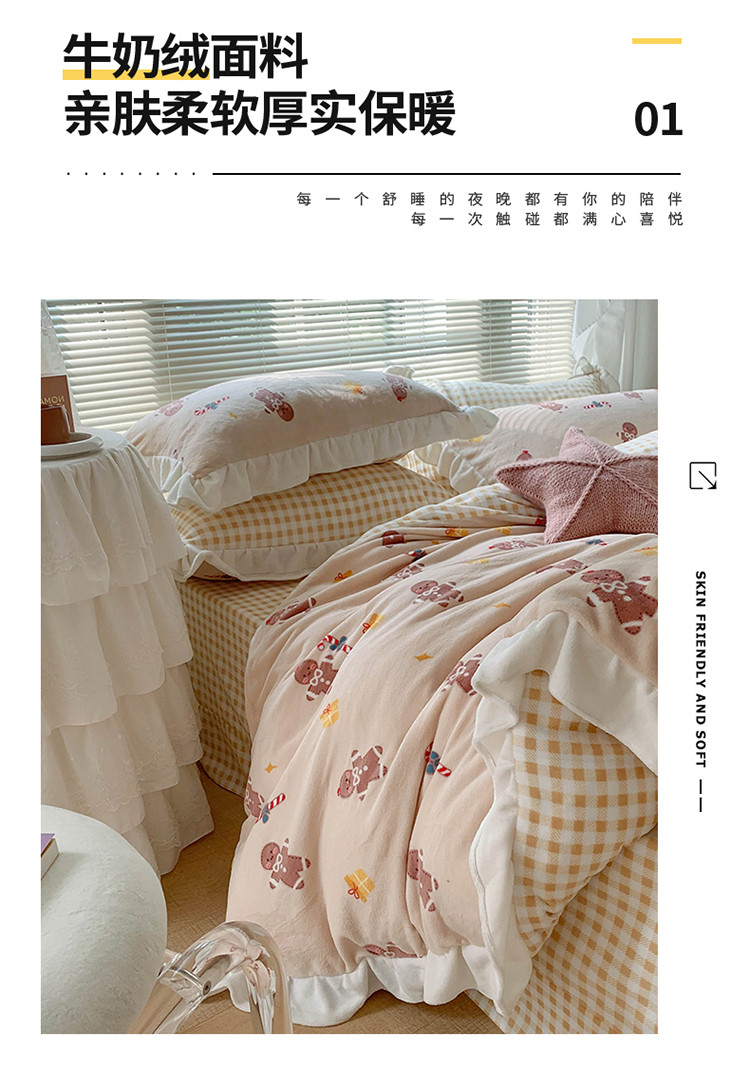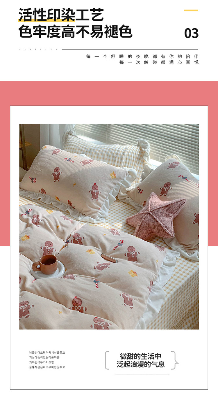 眠屿家纺2021新款韩版ins牛奶绒花边款四件套 姜饼人
