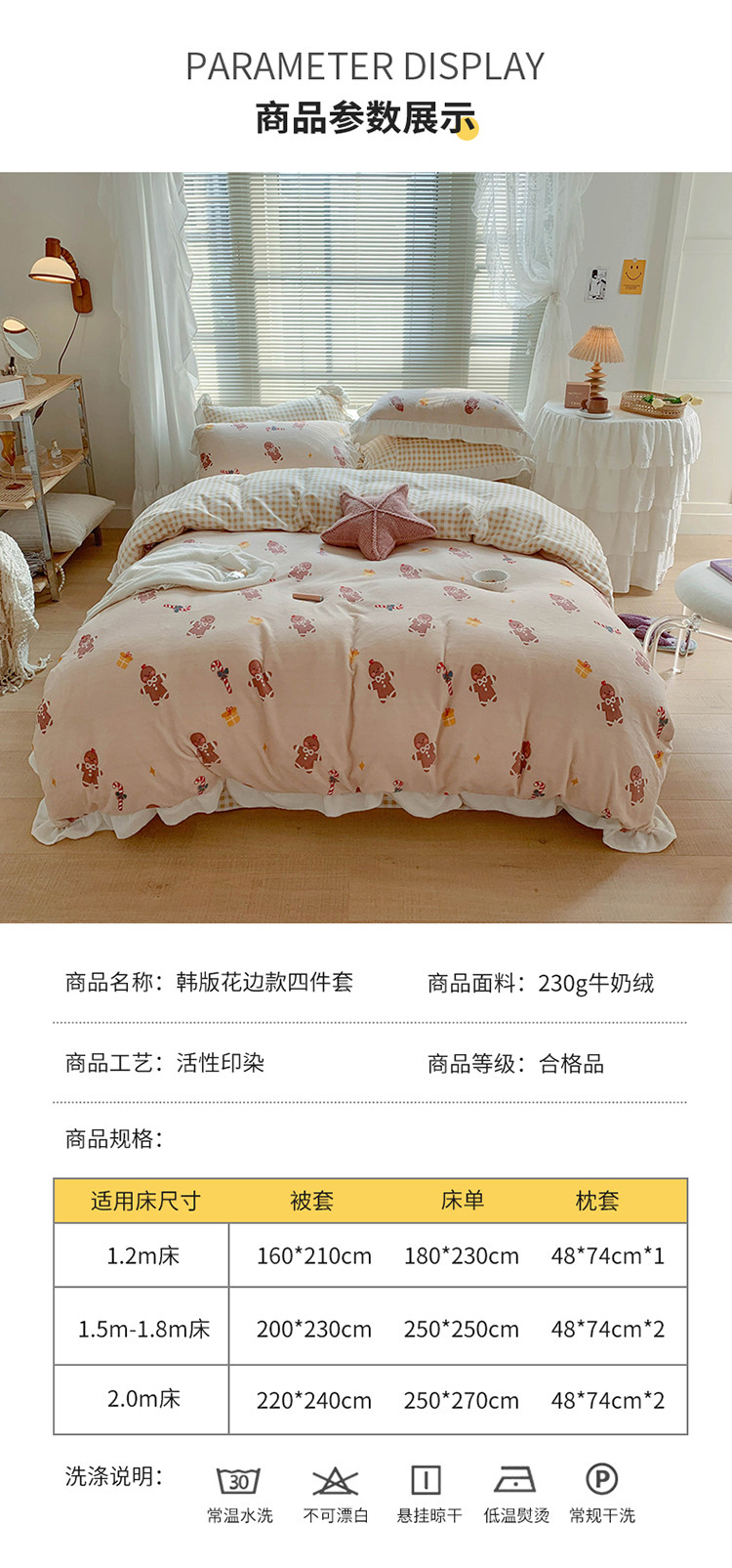 商品名称:眠屿家纺2021新款韩版ins牛奶绒花边款四件套 姜饼人