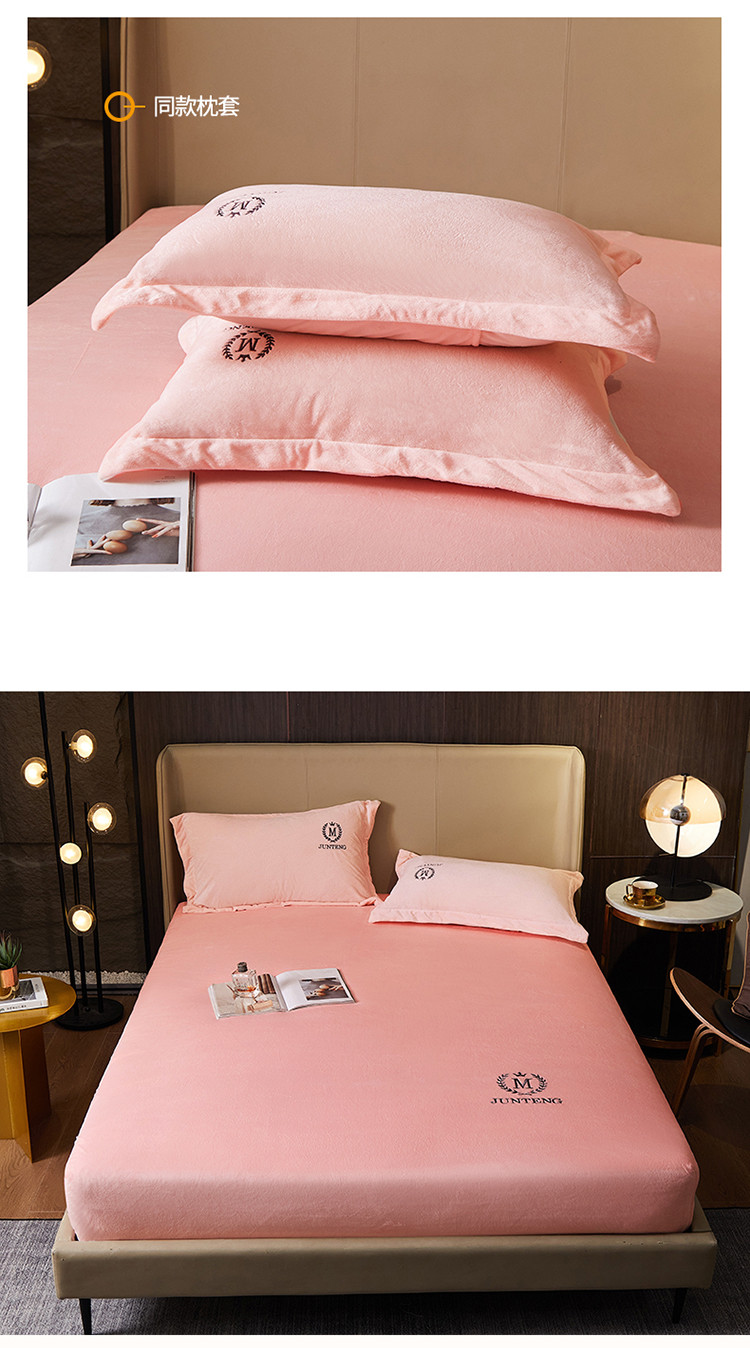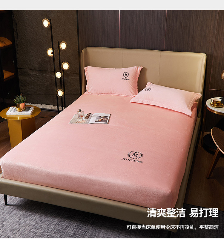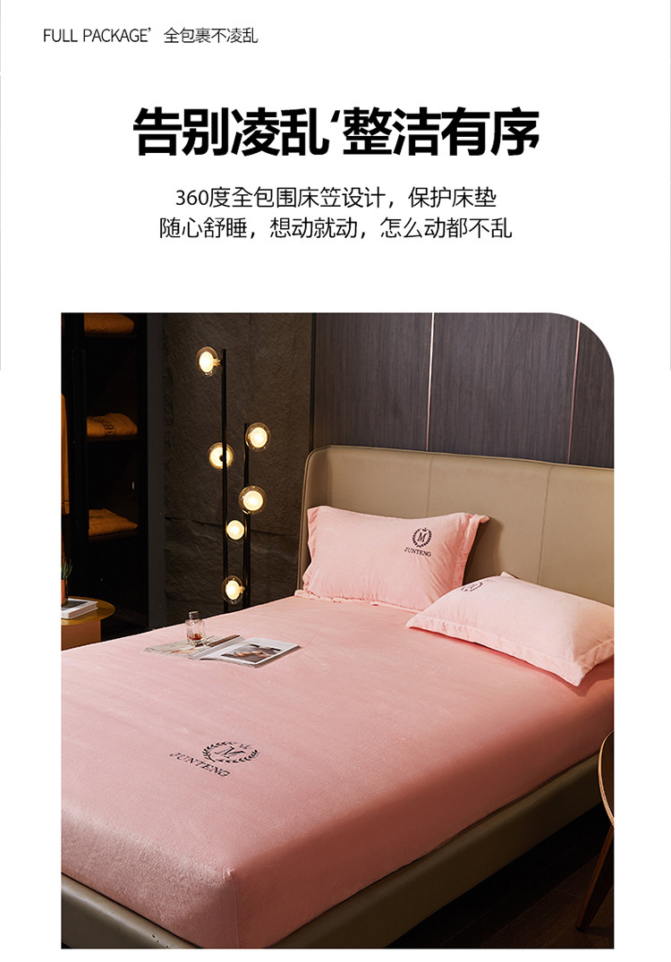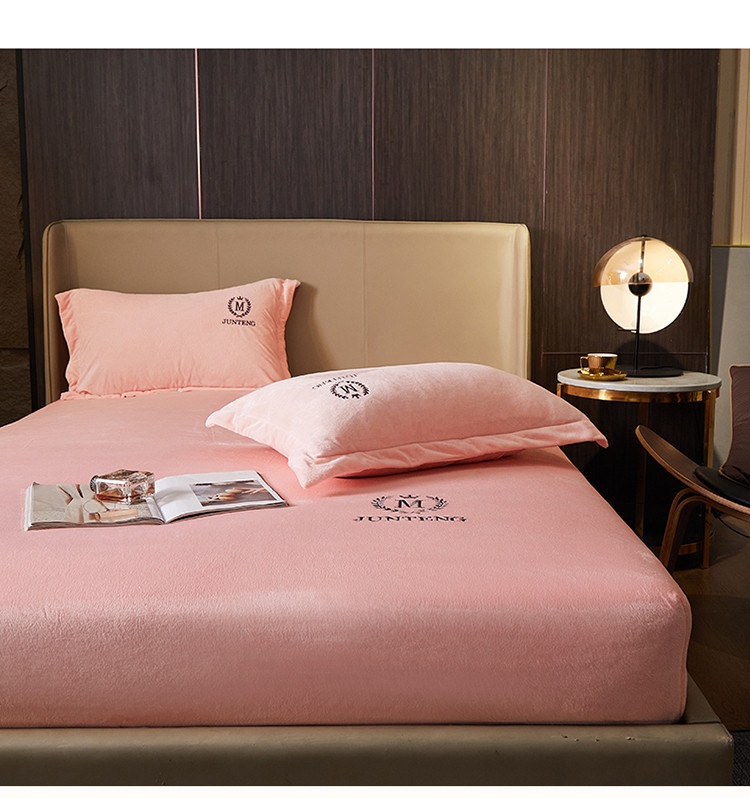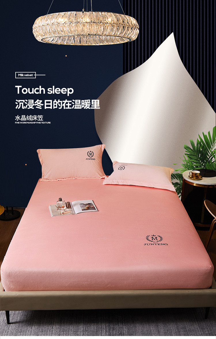 骏腾 2022新款酒店轻奢刺绣水晶绒宝宝绒单床笠 玉色