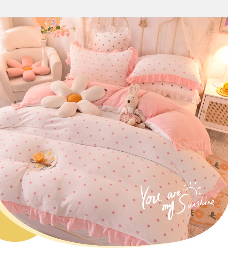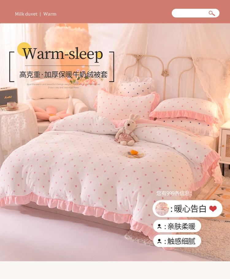 欧冠家纺 2021新款保暖牛奶绒单被套 粉-爱心