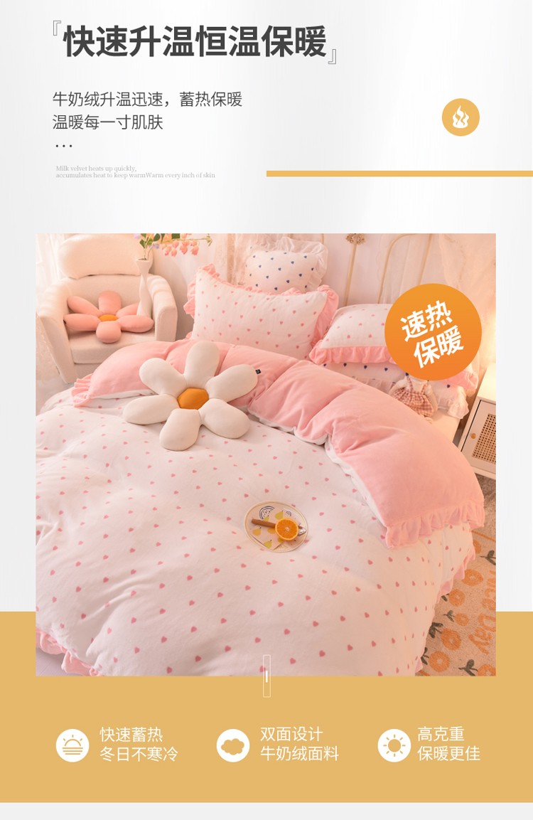 商品名称:欧冠家纺 2021新款保暖牛奶绒单被套 粉-爱心
