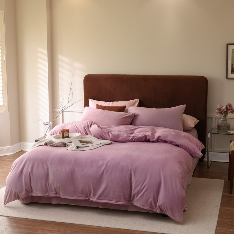 (总)寐眠 2025新款A类立体雕花牛奶绒四件套-系列一,粉暖舒然,花绒雅梦,暖咖轻奢,浅紫暖奢