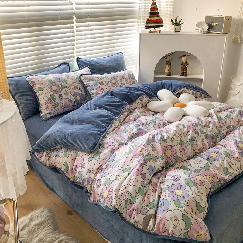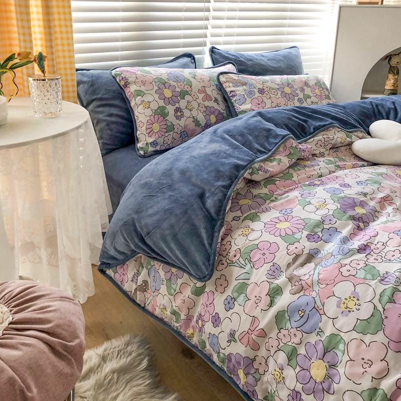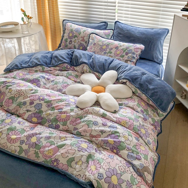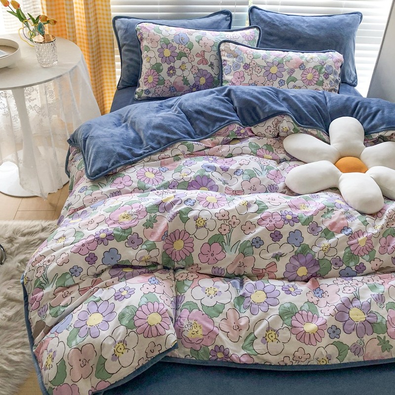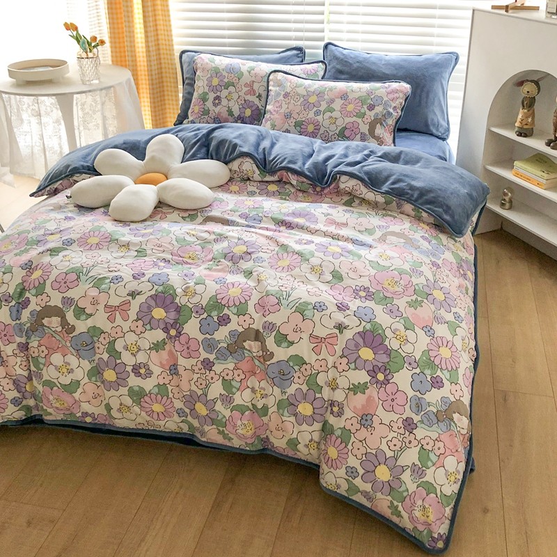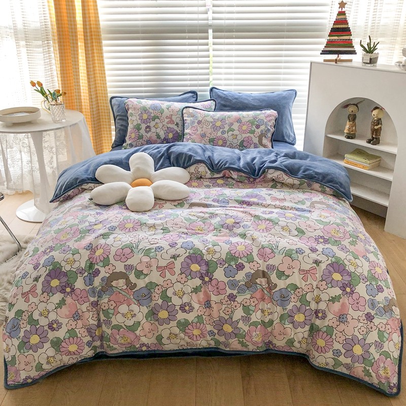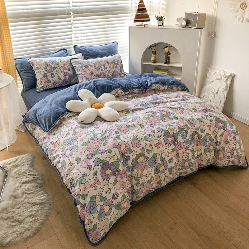 商品名称:珺柔 新款A版全棉13372印花B版牛奶绒四件套 醉蝶花