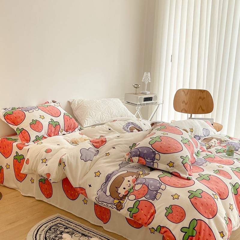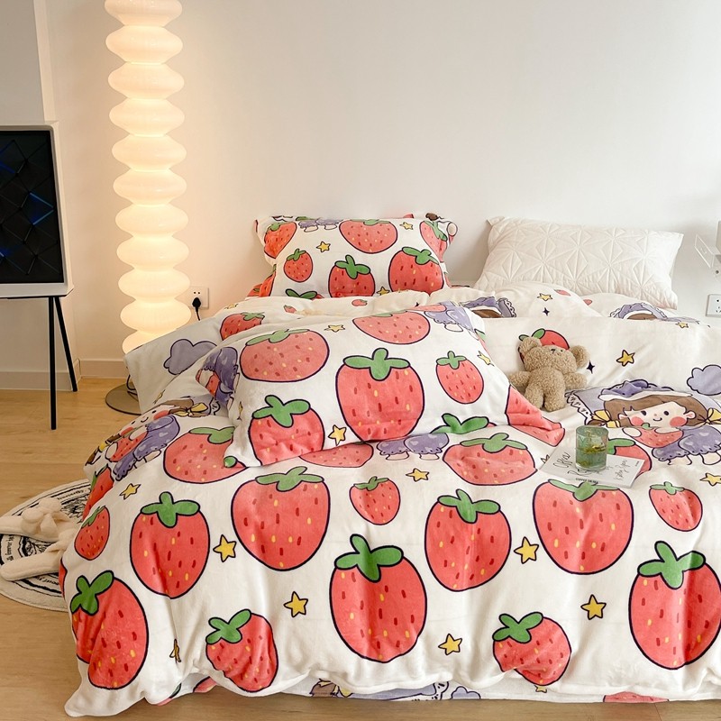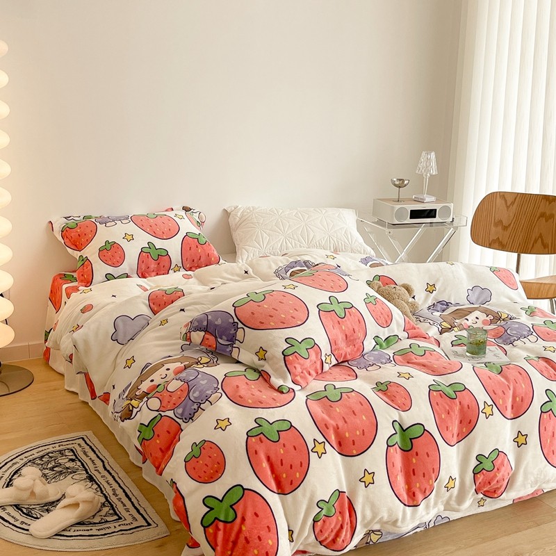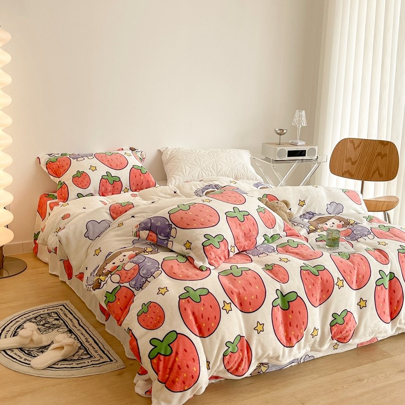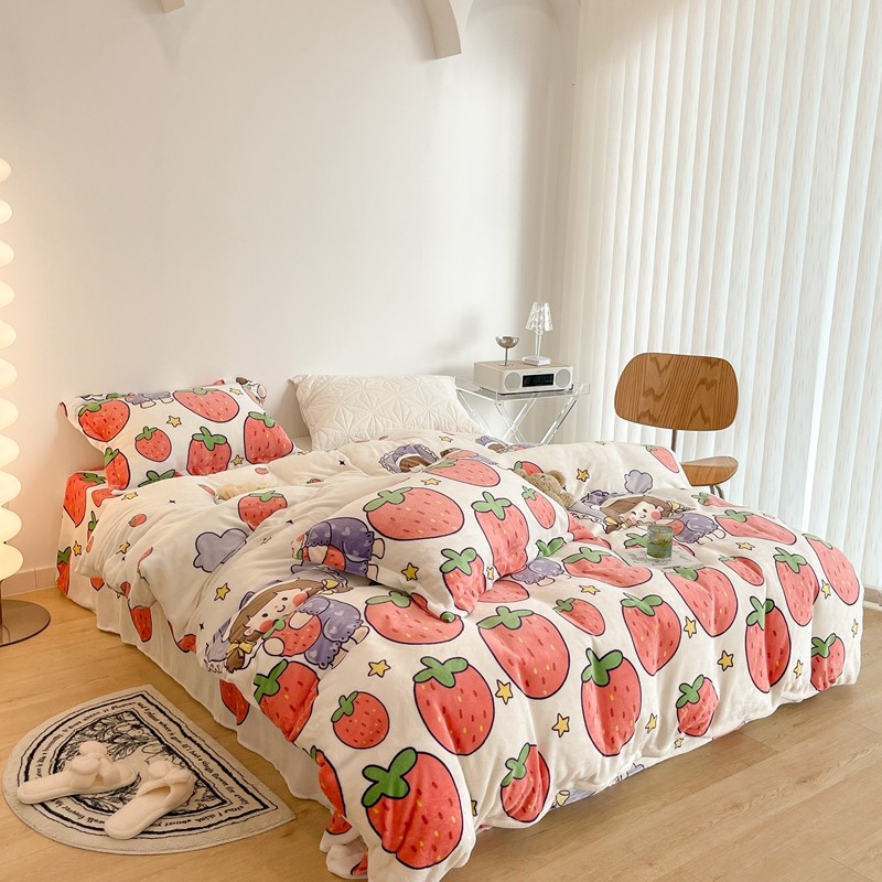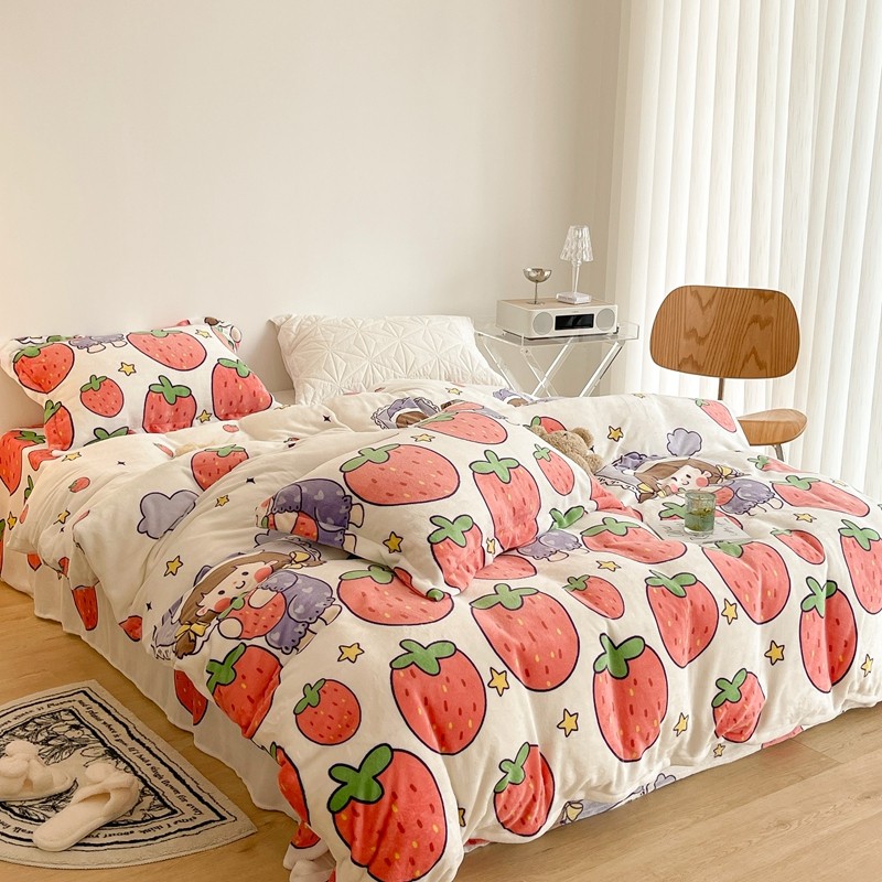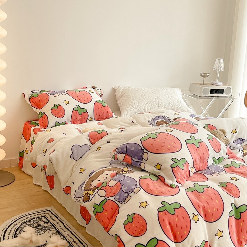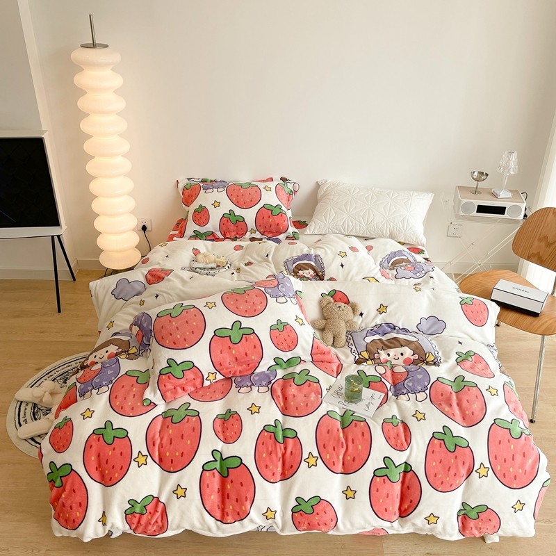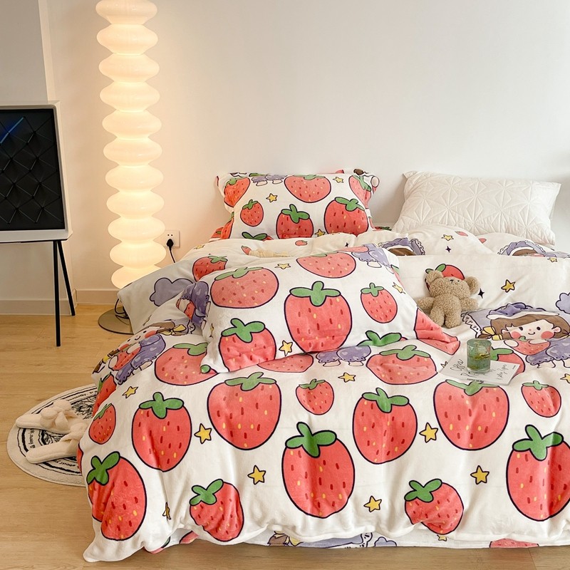 昔可家纺 2021新款牛奶绒四件套-二批 草莓女孩