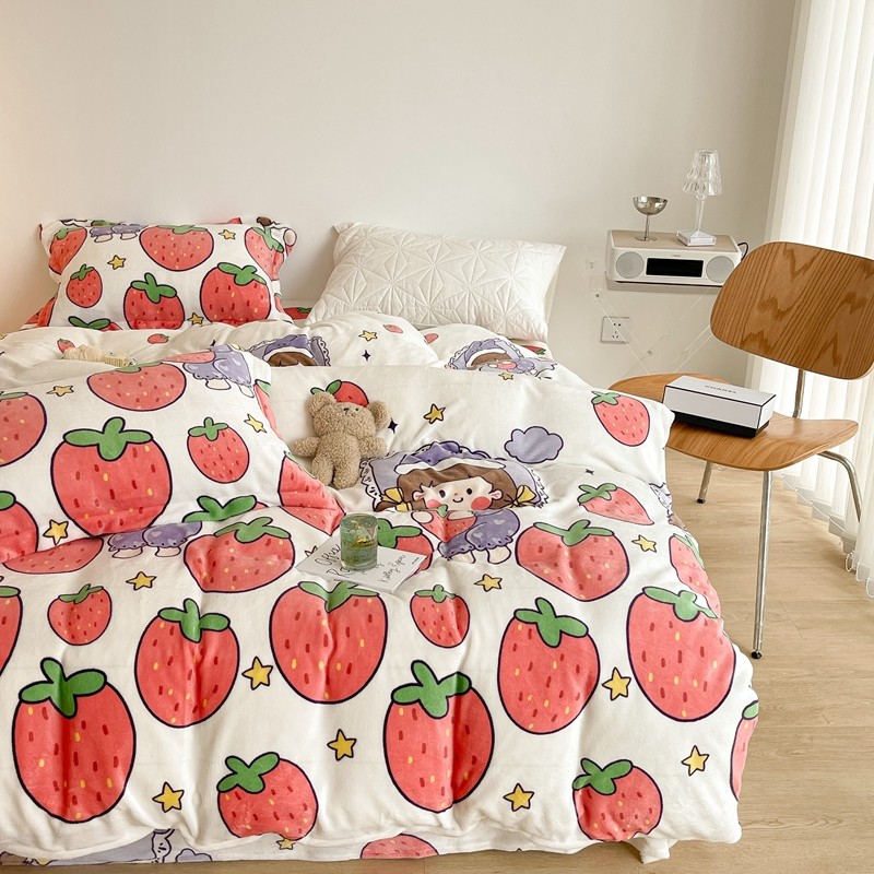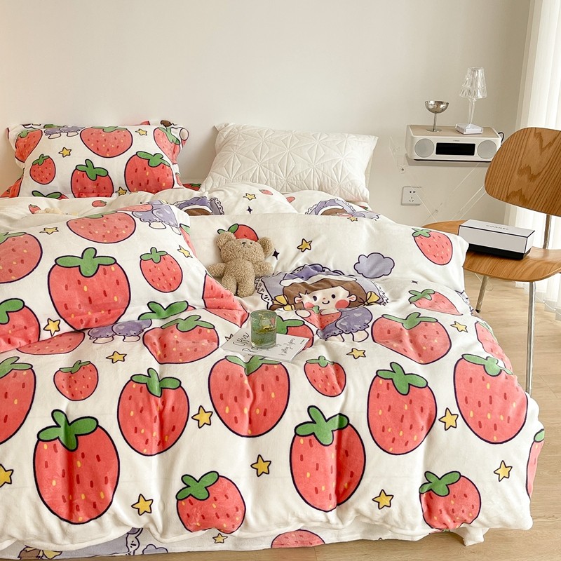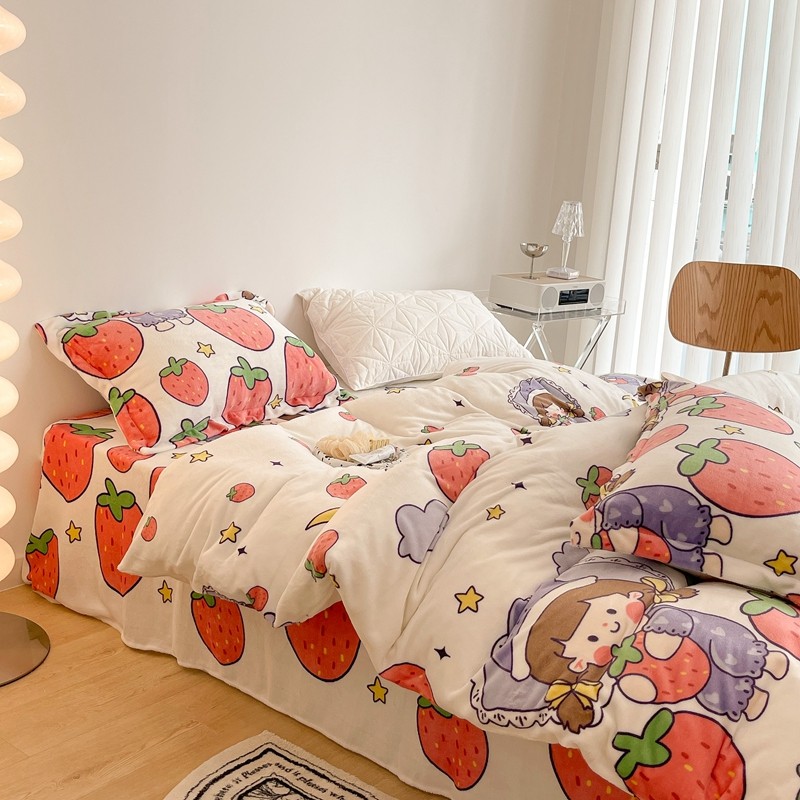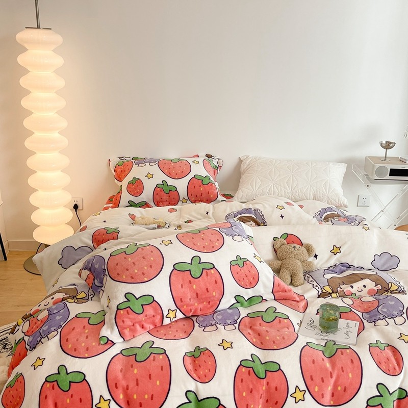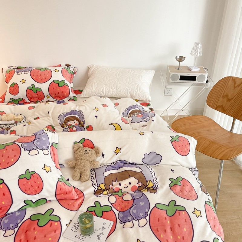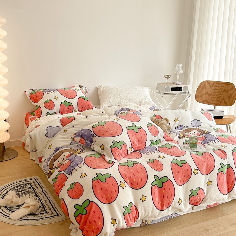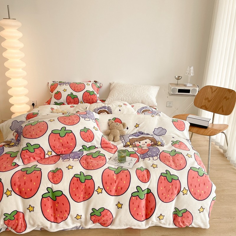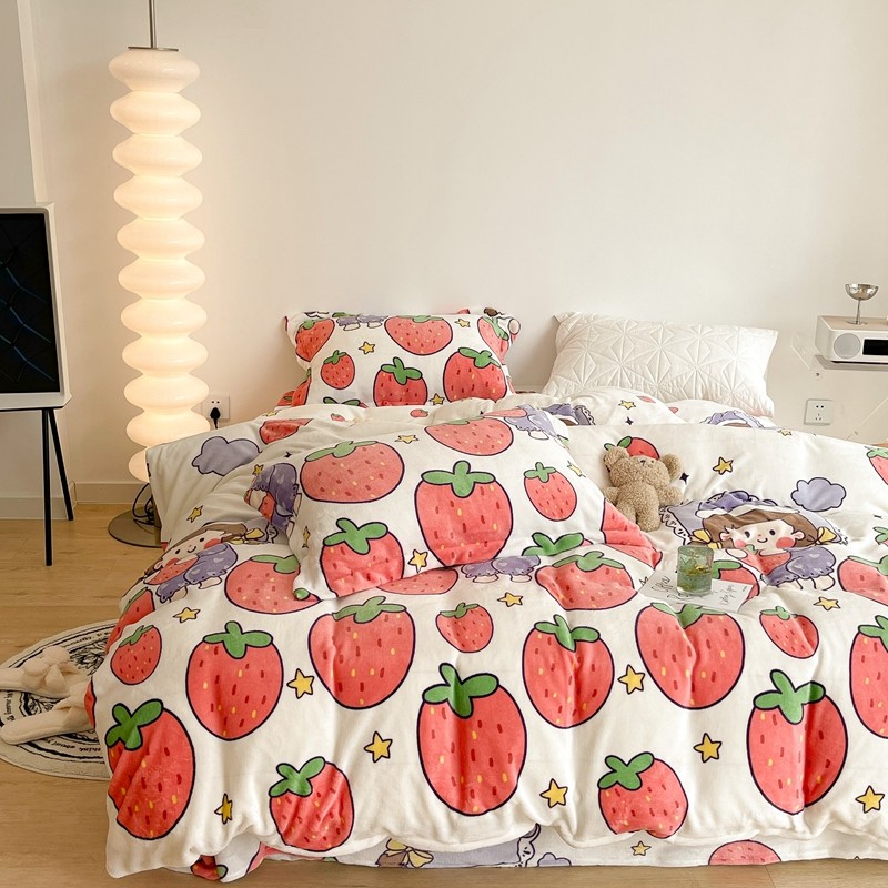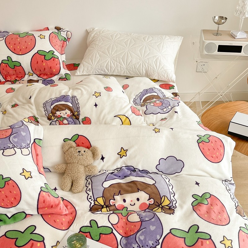 昔可家纺 2021新款牛奶绒四件套-二批 草莓女孩