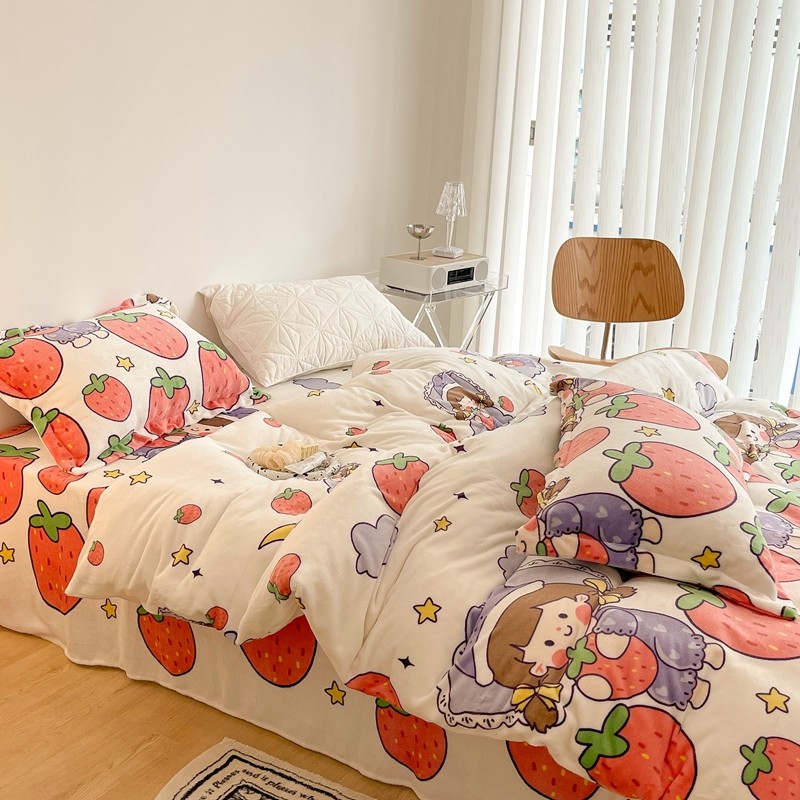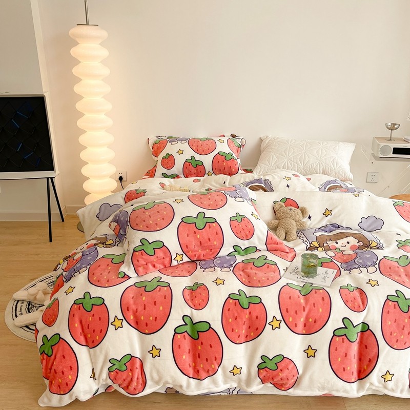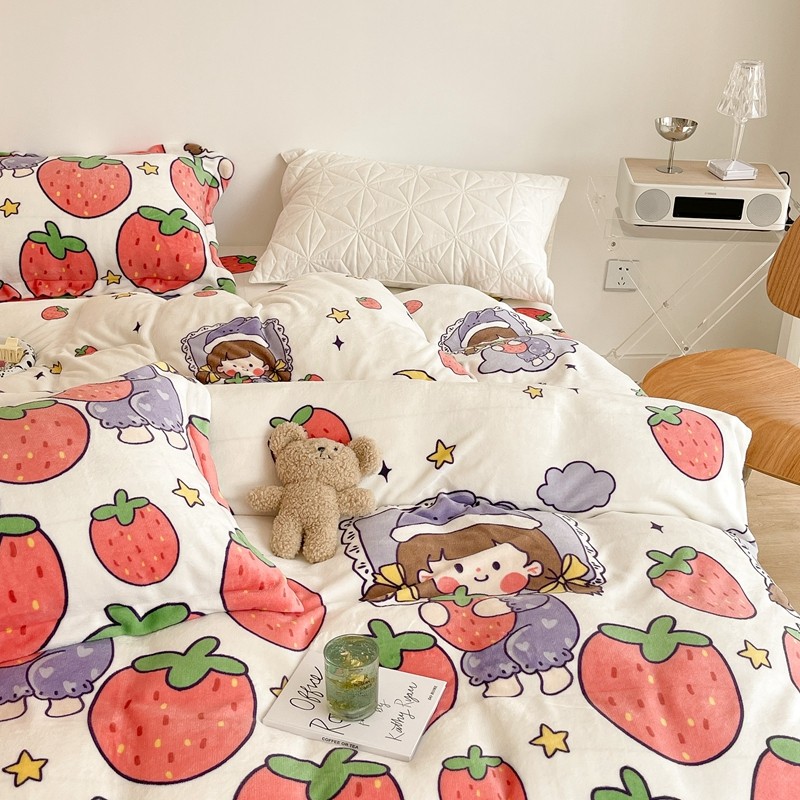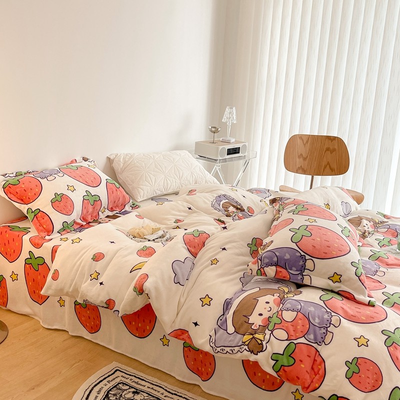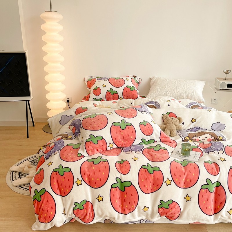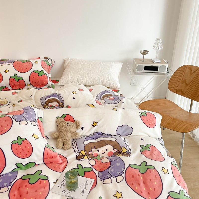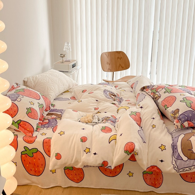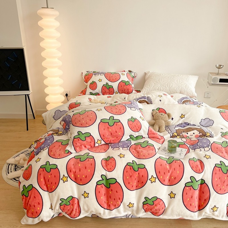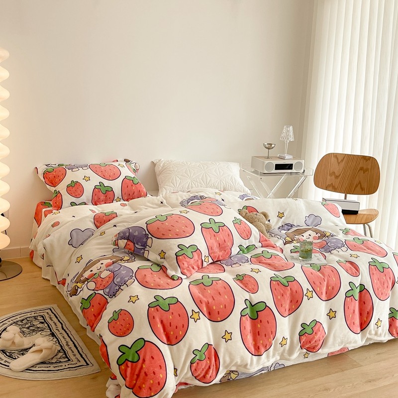 昔可家纺 2021新款牛奶绒四件套-二批 草莓女孩