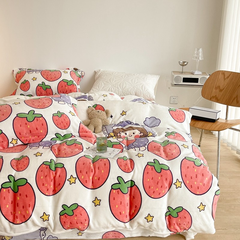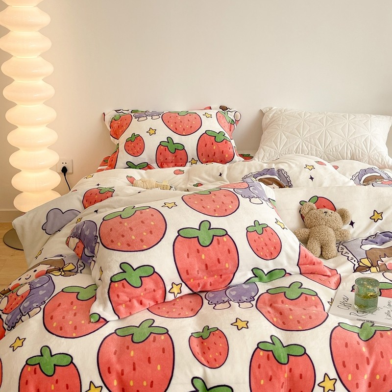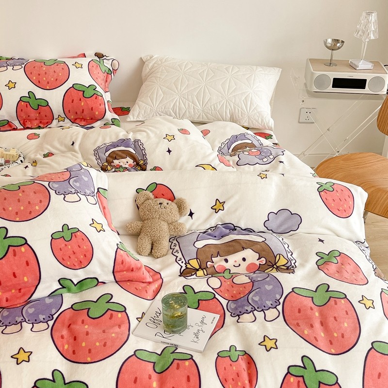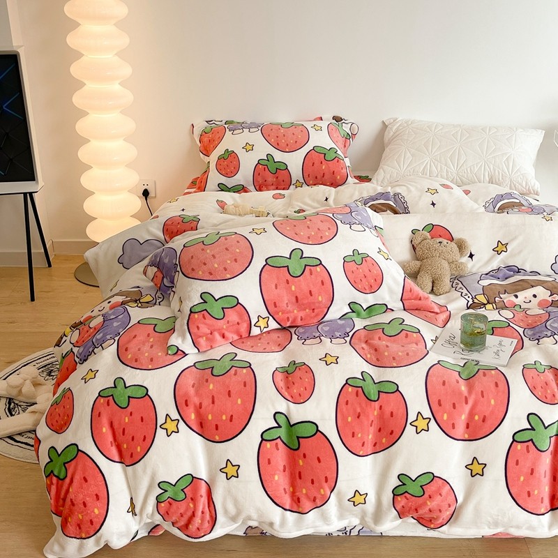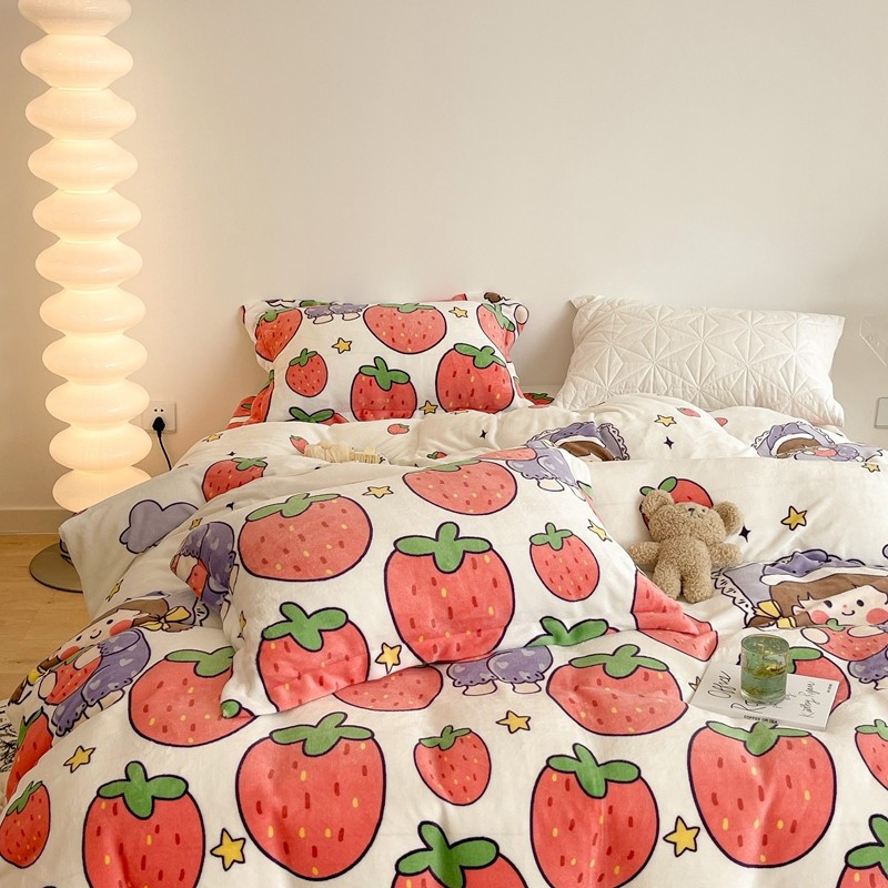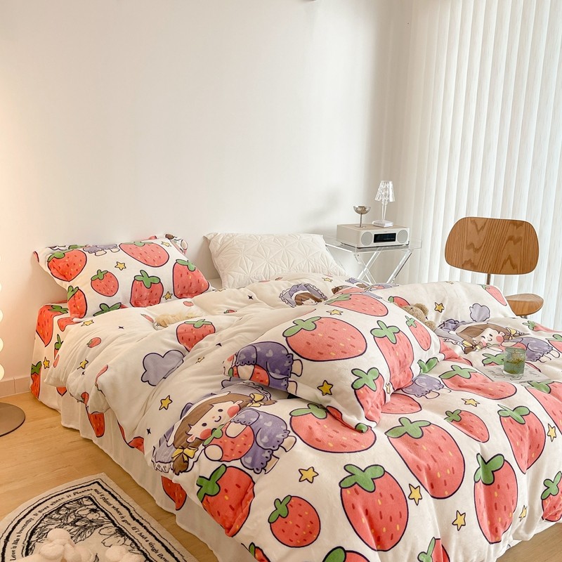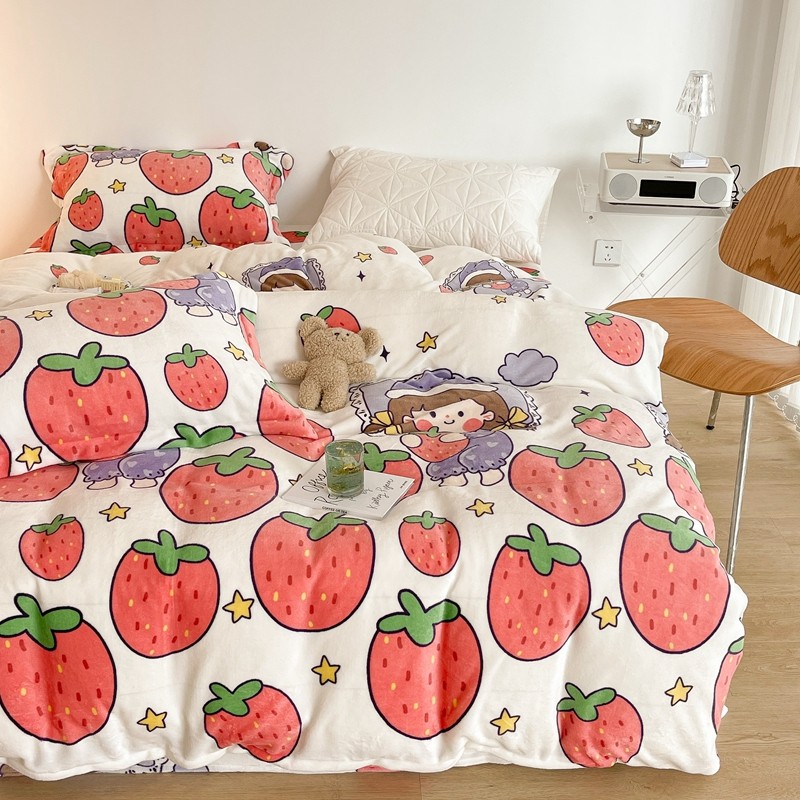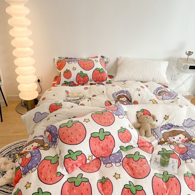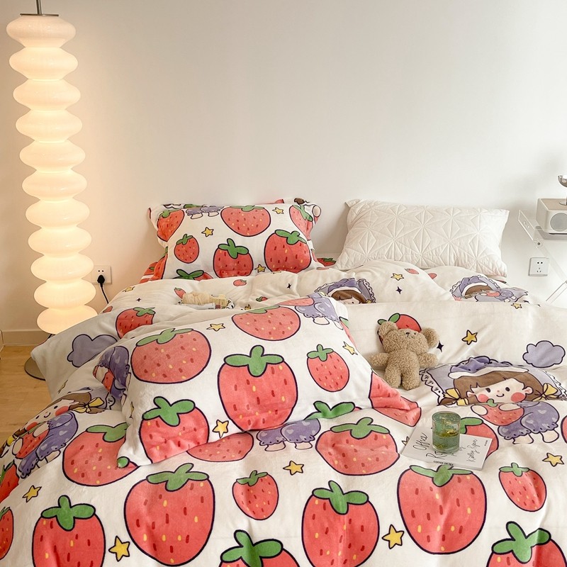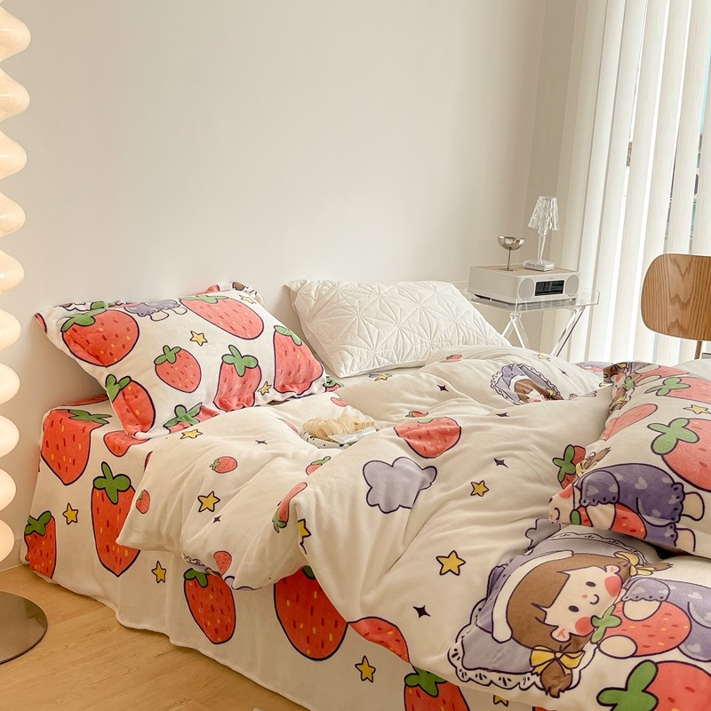 昔可家纺 2021新款牛奶绒四件套-二批 草莓女孩