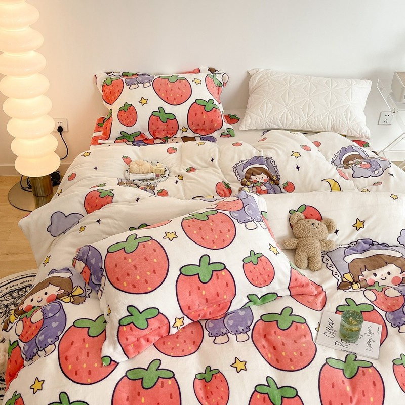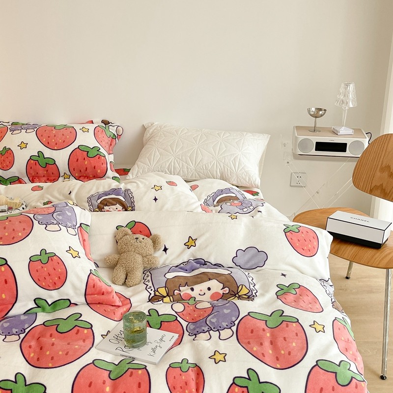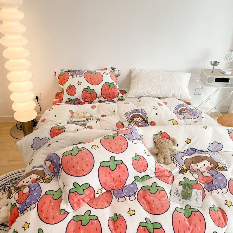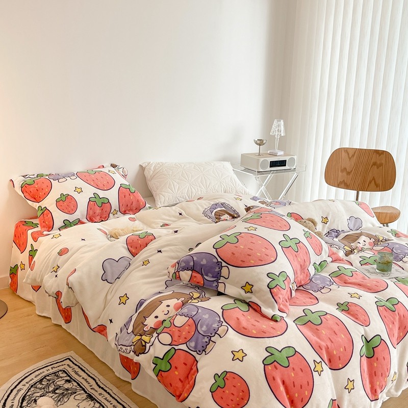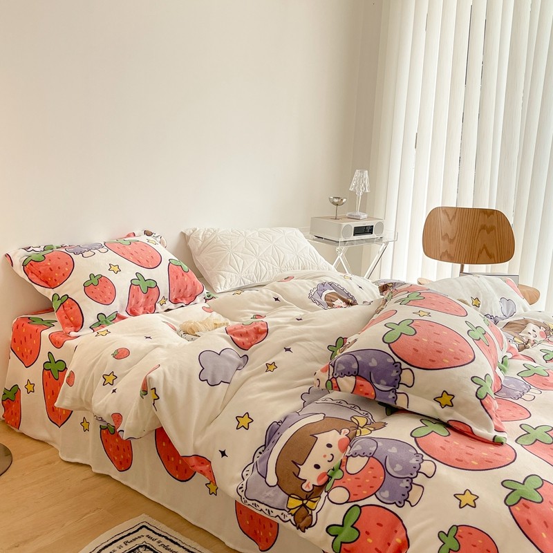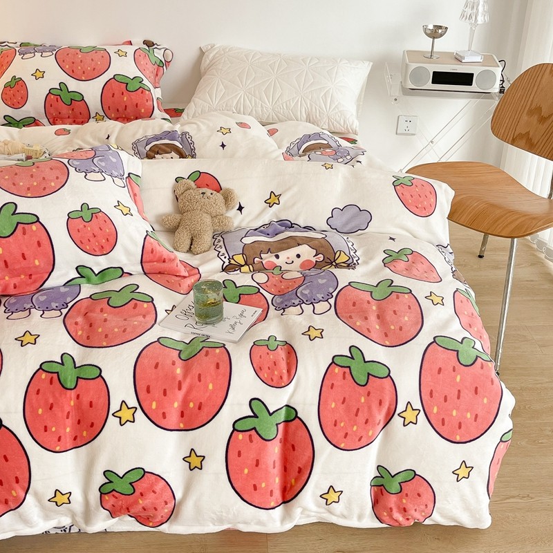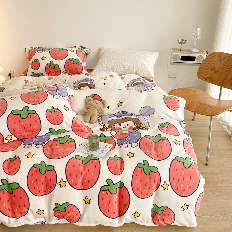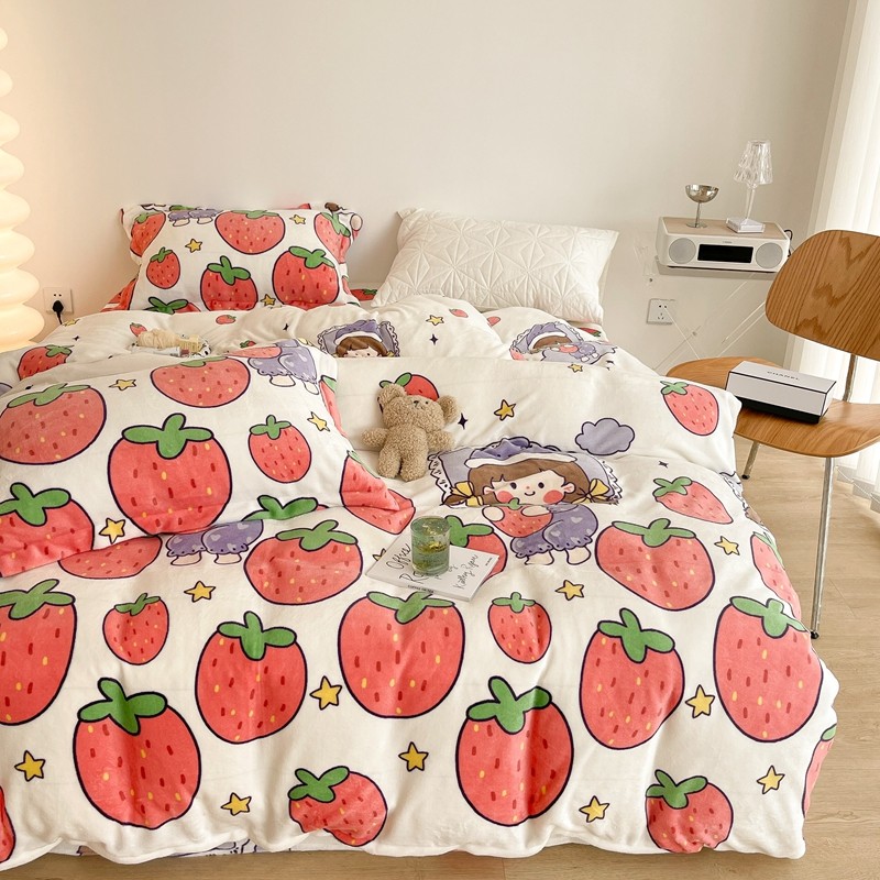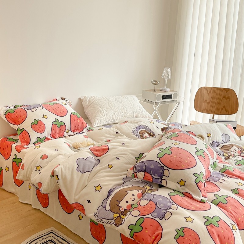 昔可家纺 2021新款牛奶绒四件套-二批 草莓女孩