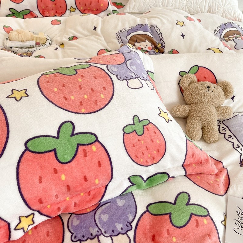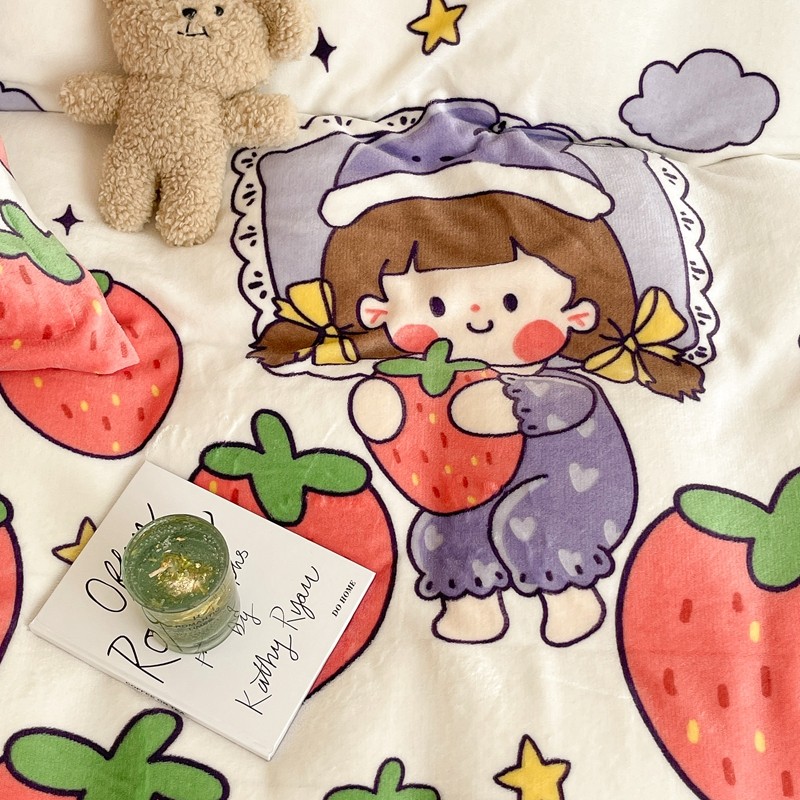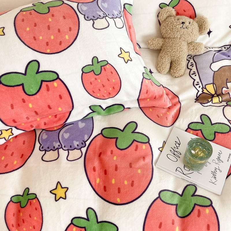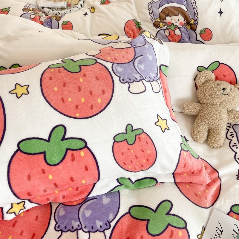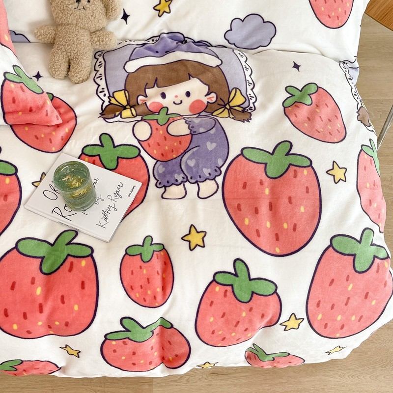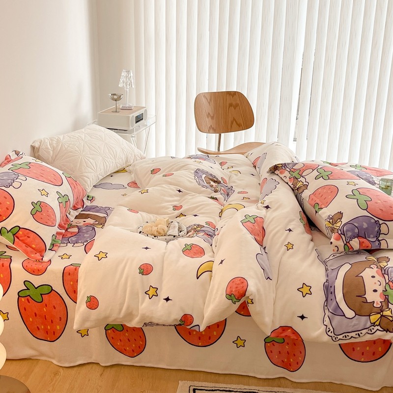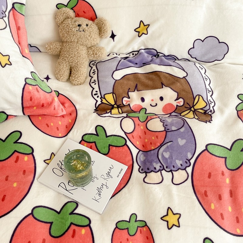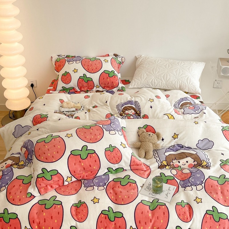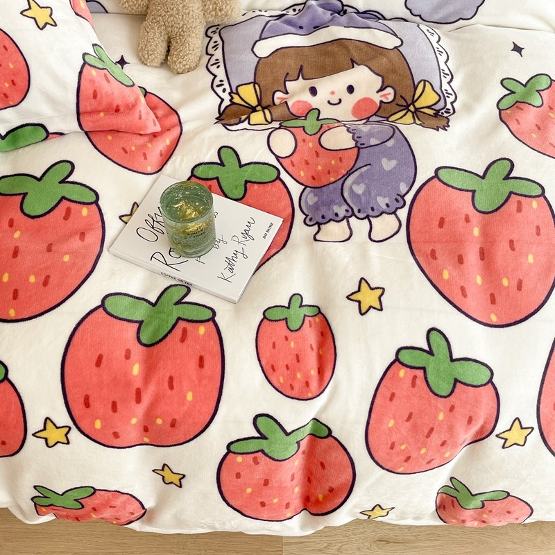 昔可家纺 2021新款牛奶绒四件套-二批 草莓女孩