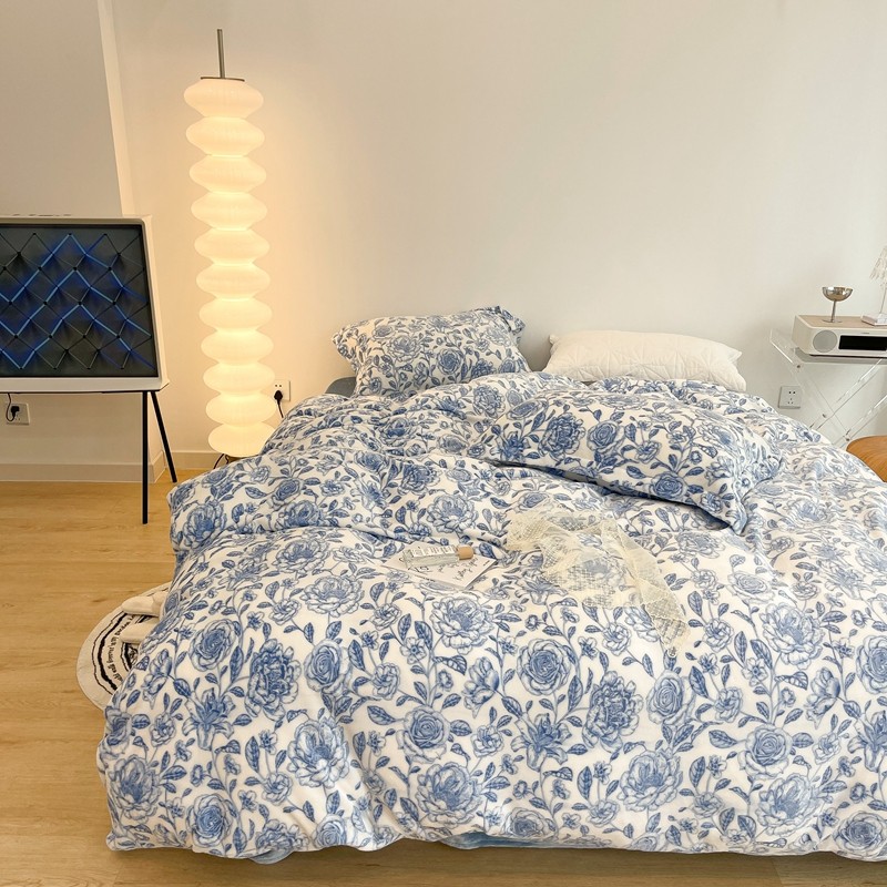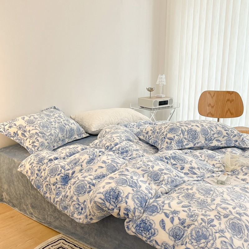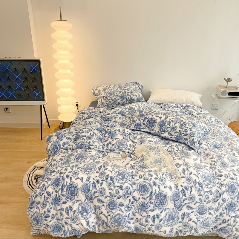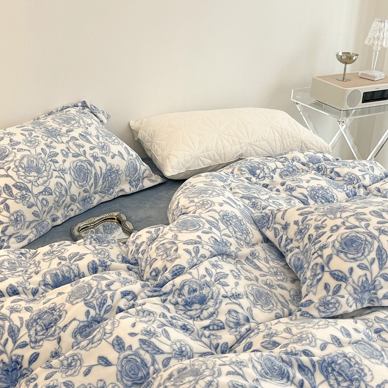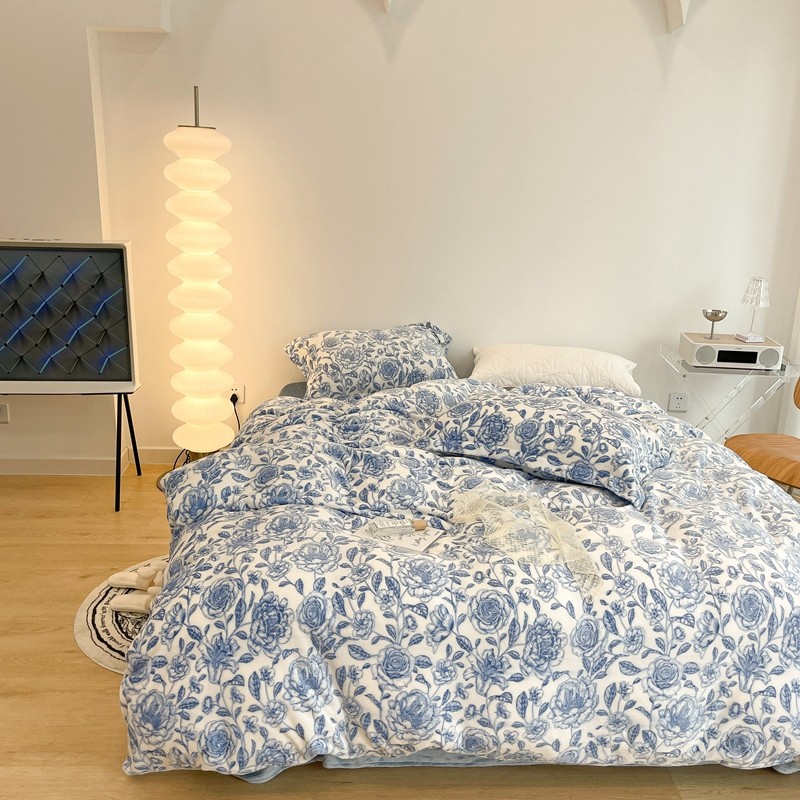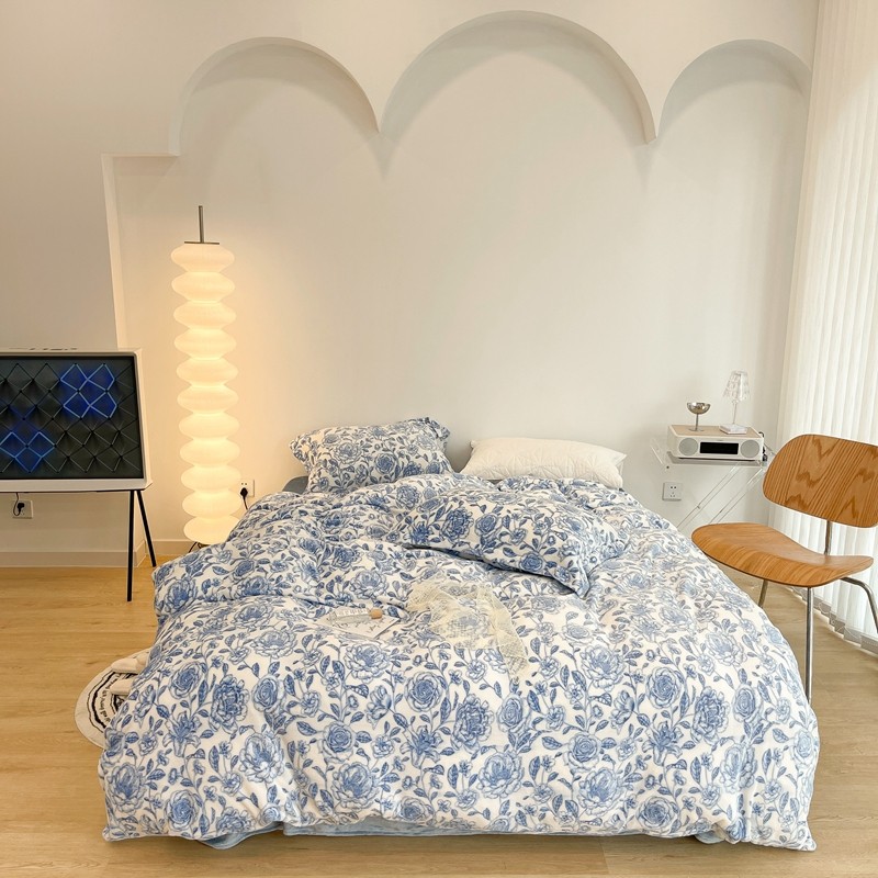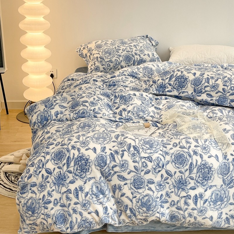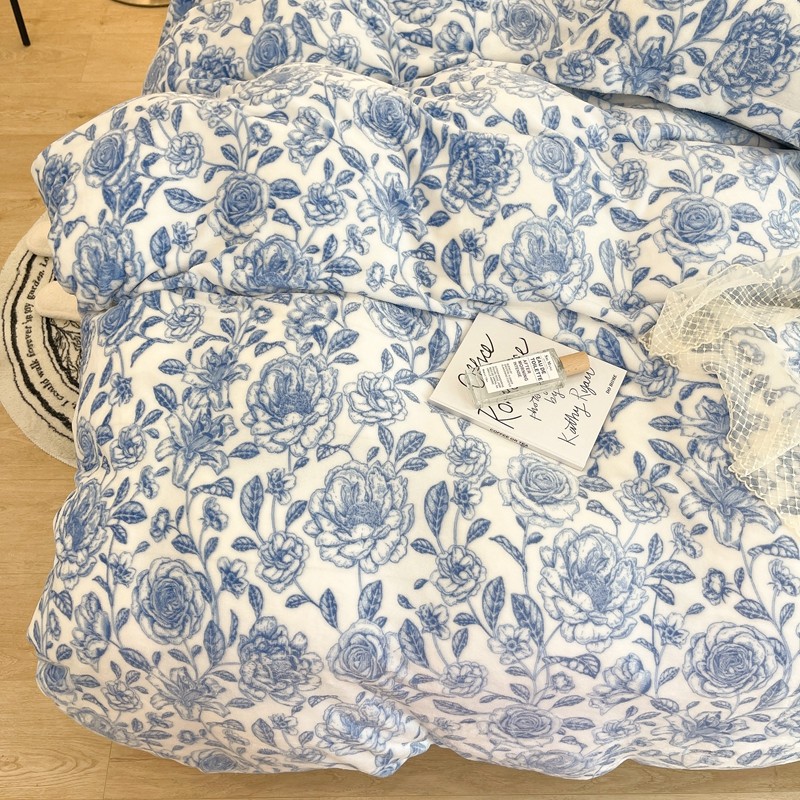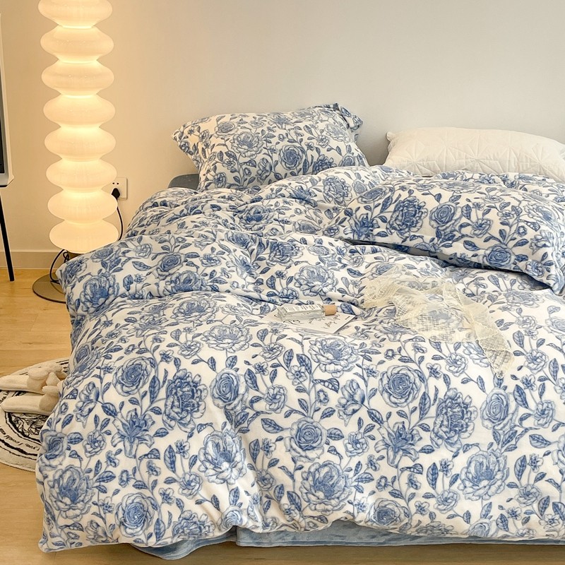 昔可家纺 2021新款牛奶绒四件套-二批 手绘山茶蓝