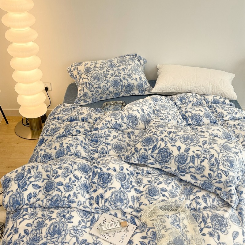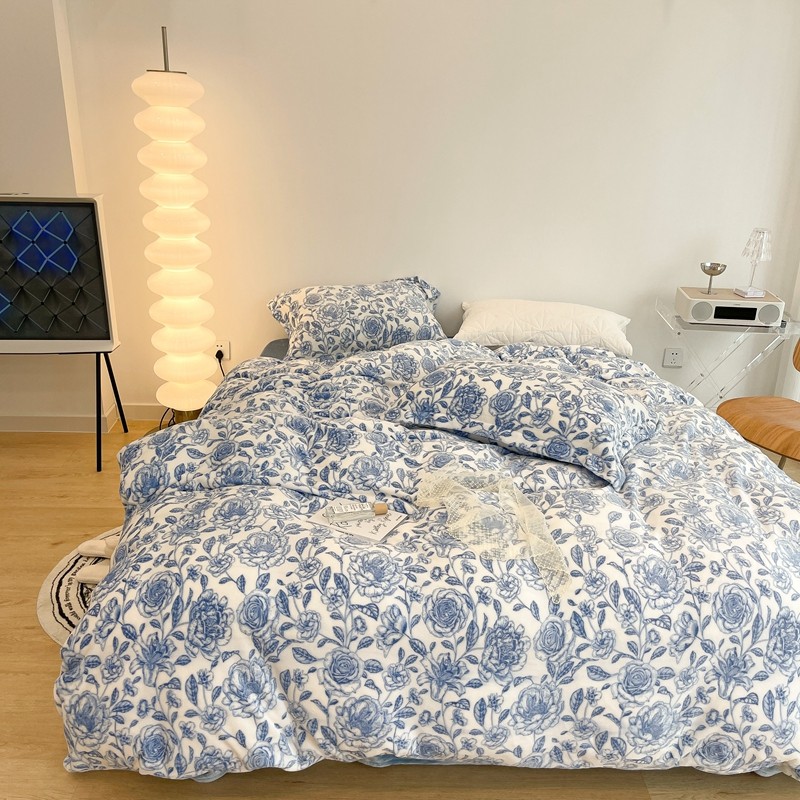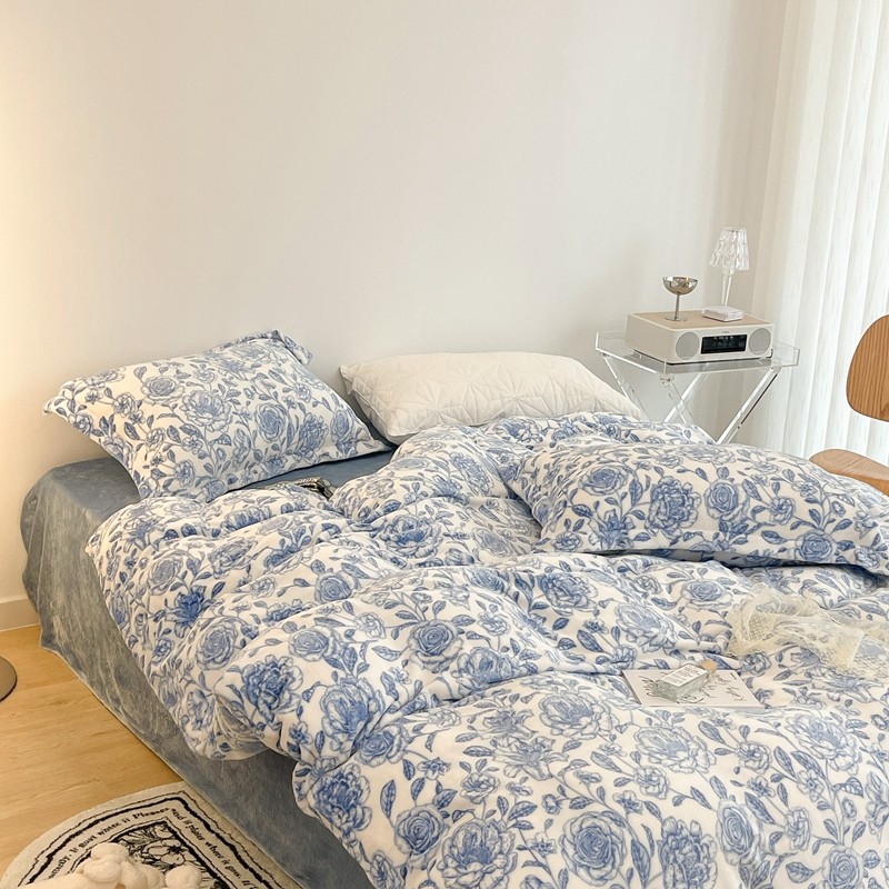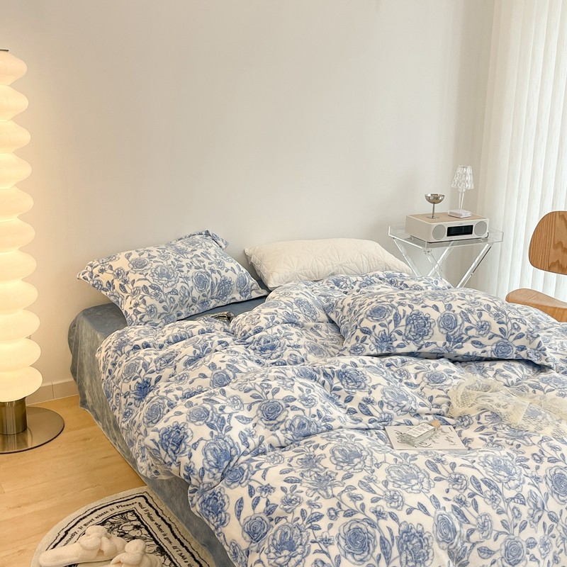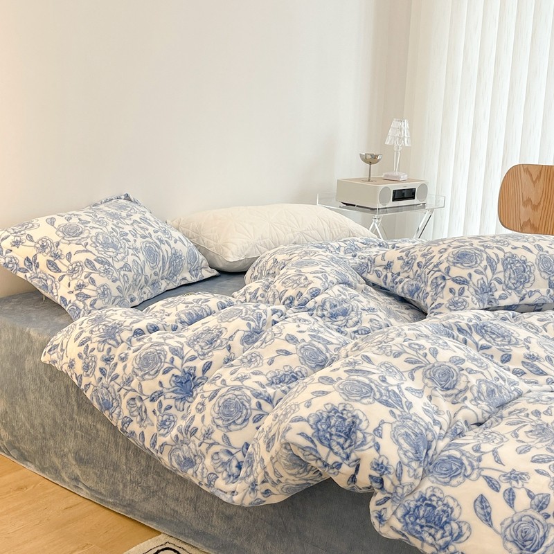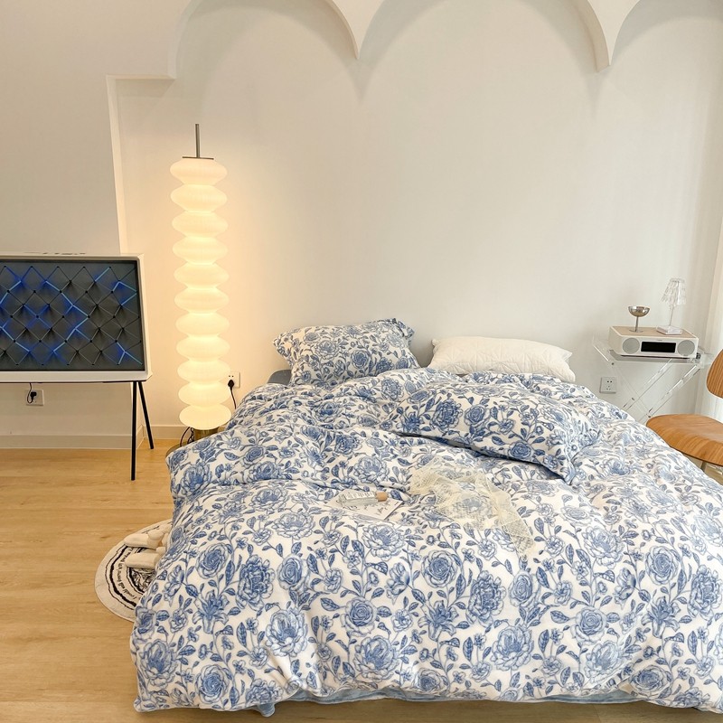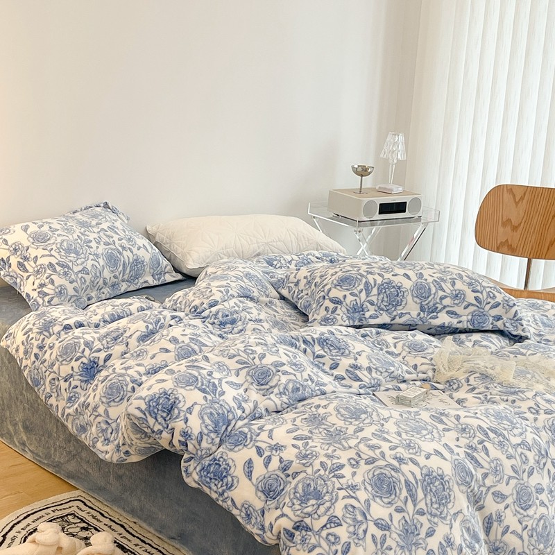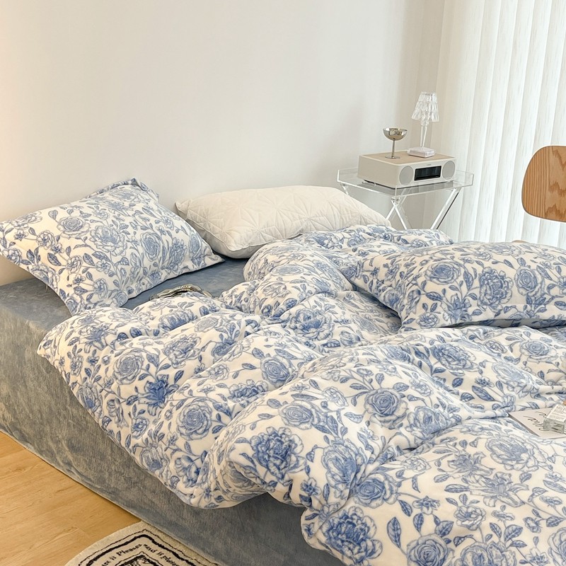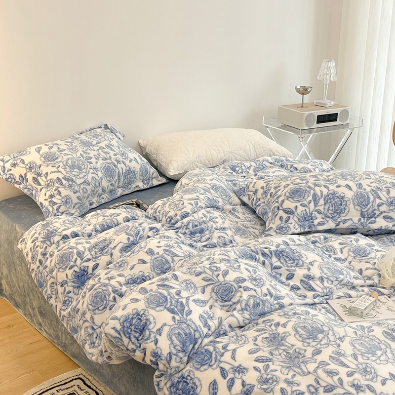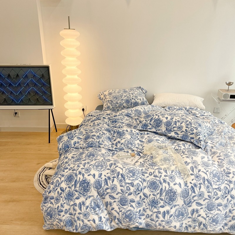 昔可家纺 2021新款牛奶绒四件套-二批 手绘山茶蓝