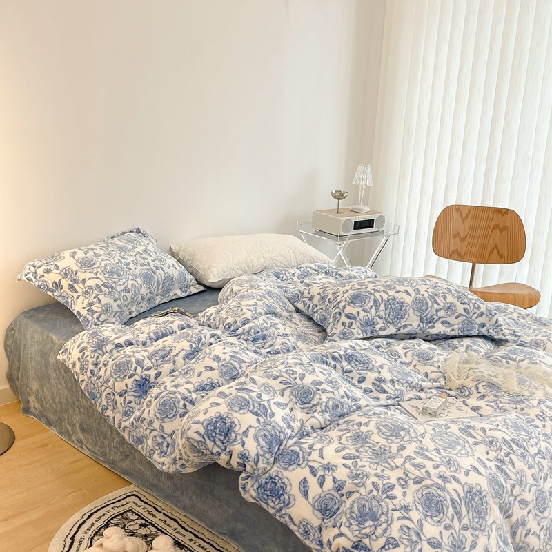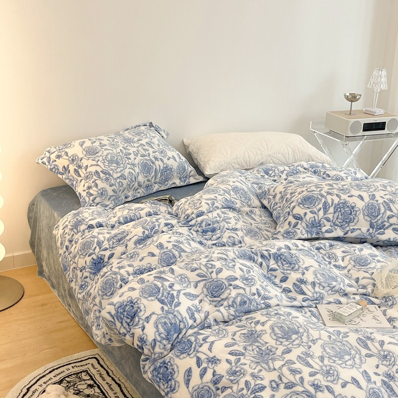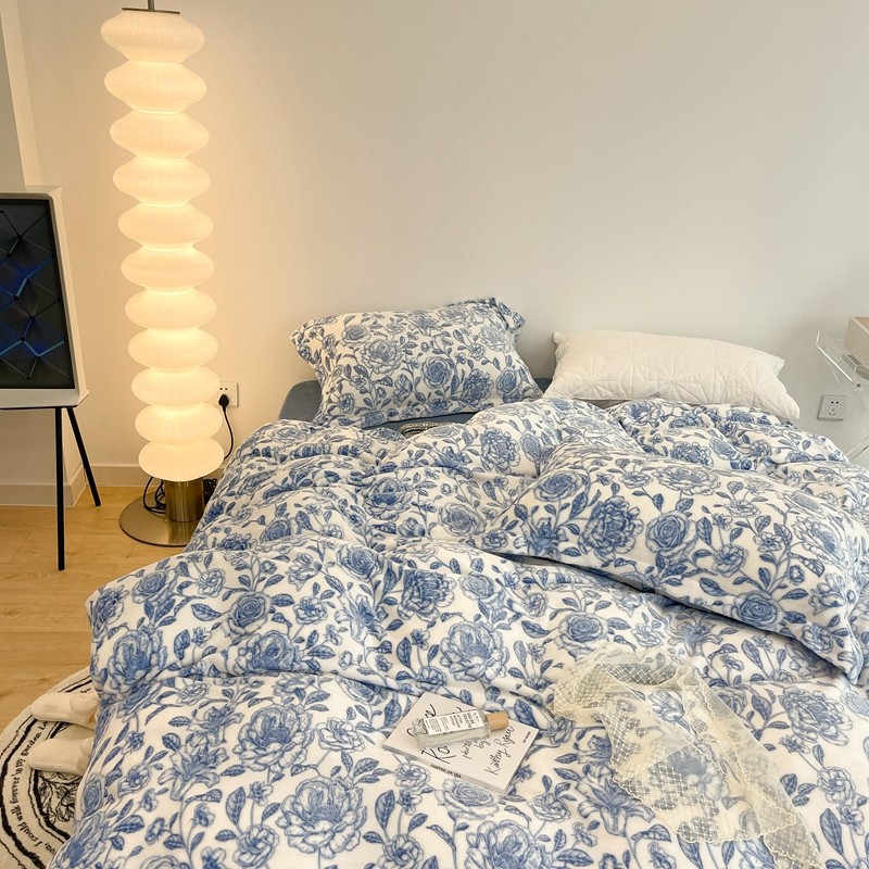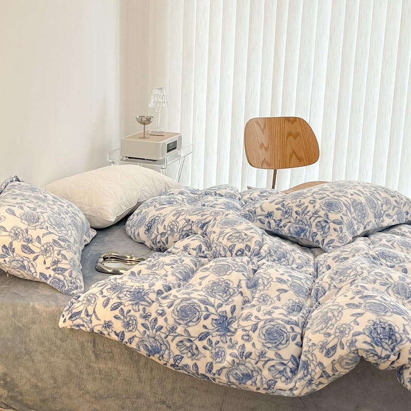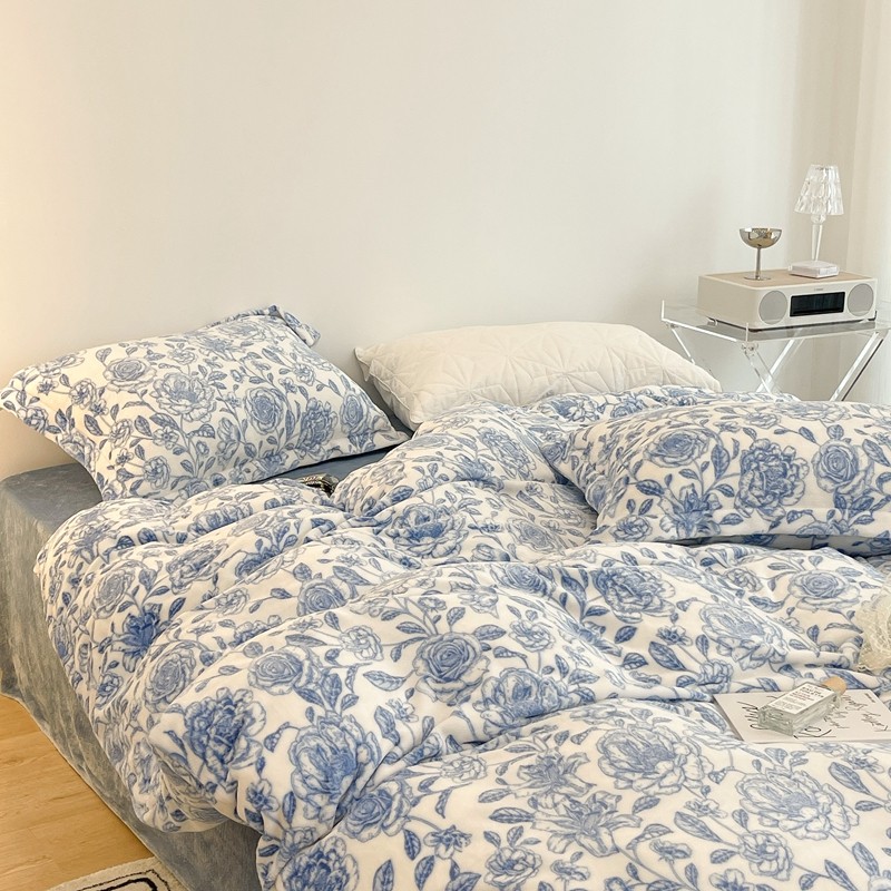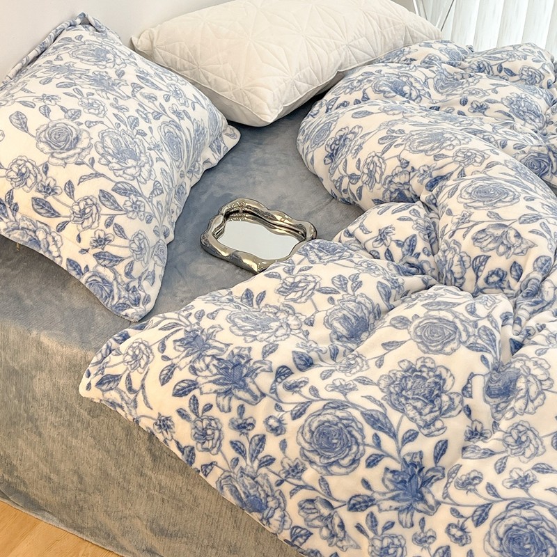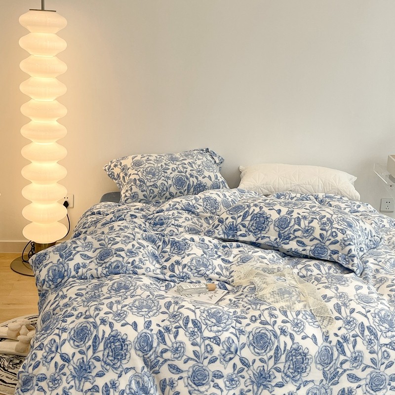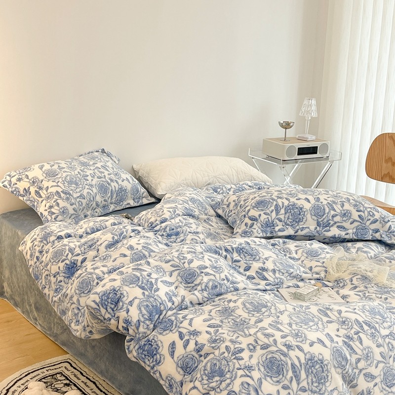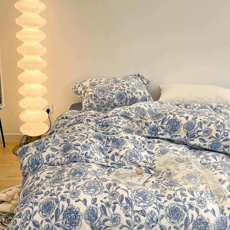 昔可家纺 2021新款牛奶绒四件套-二批 手绘山茶蓝