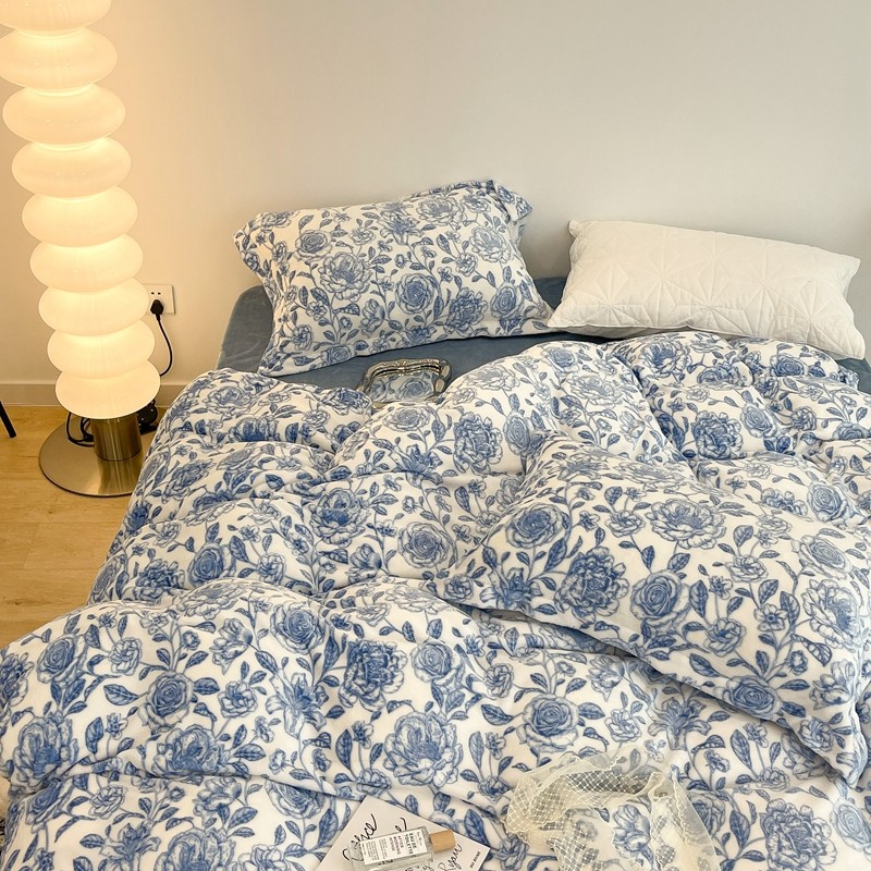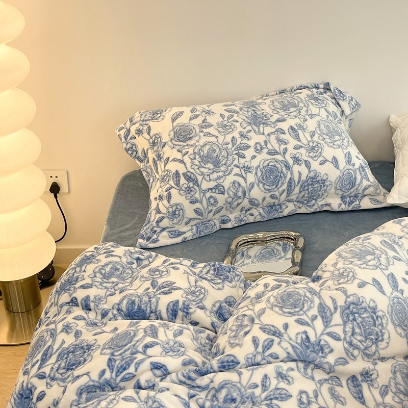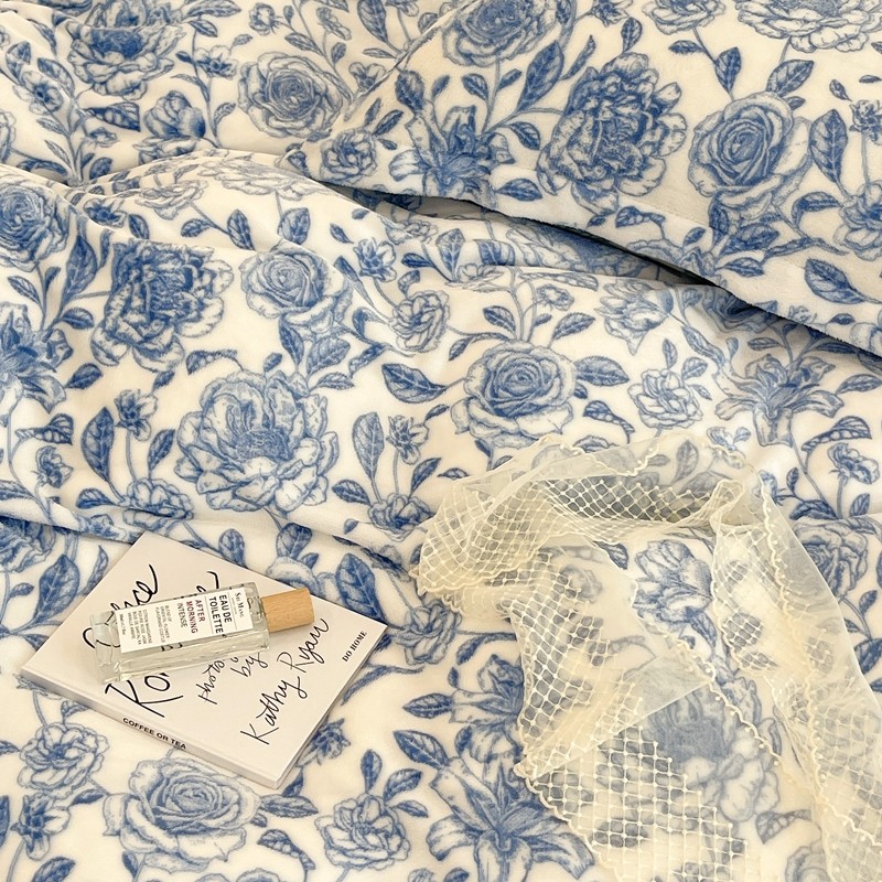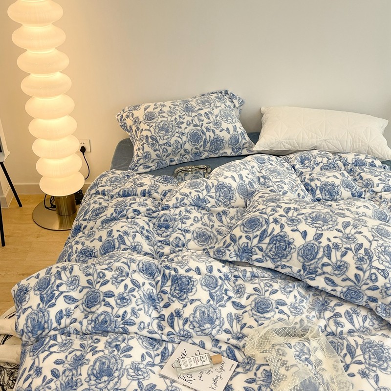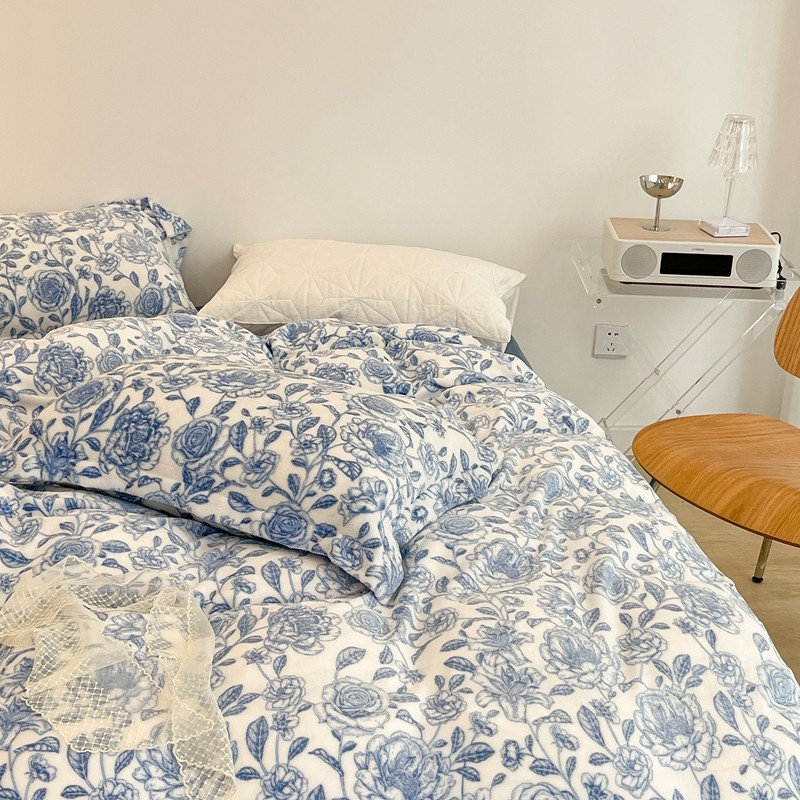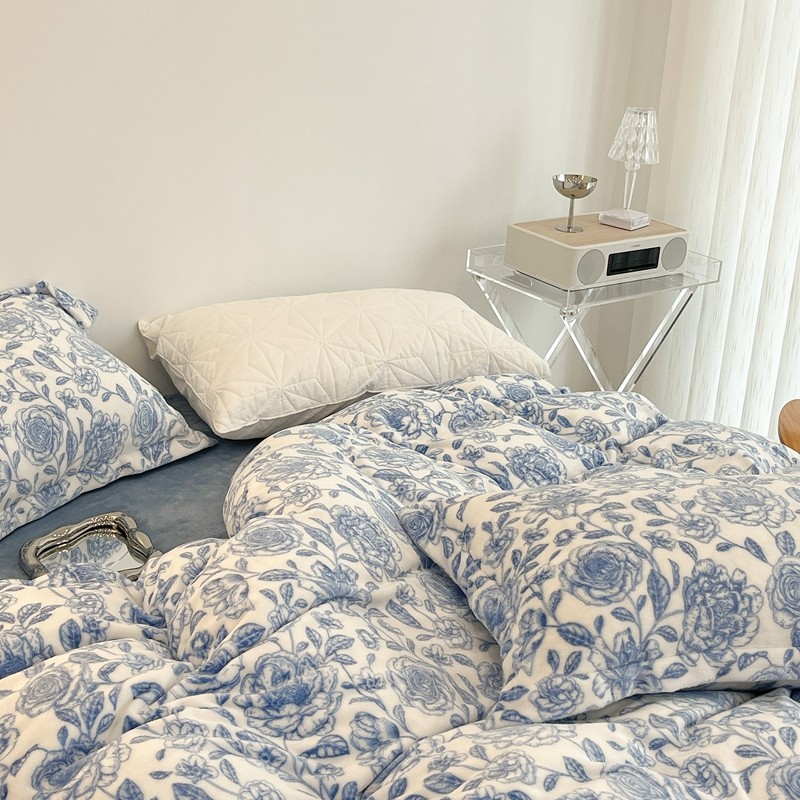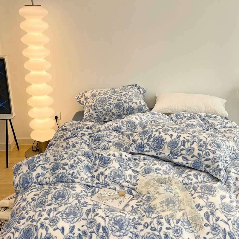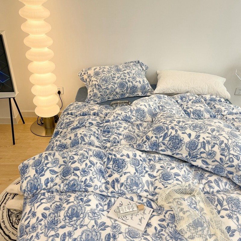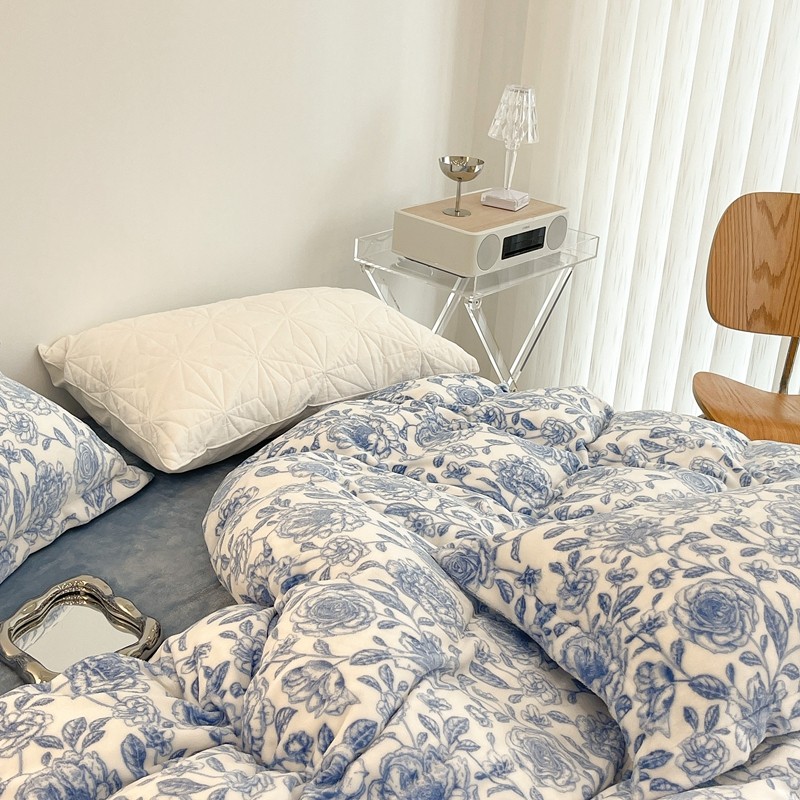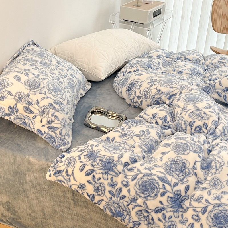 昔可家纺 2021新款牛奶绒四件套-二批 手绘山茶蓝