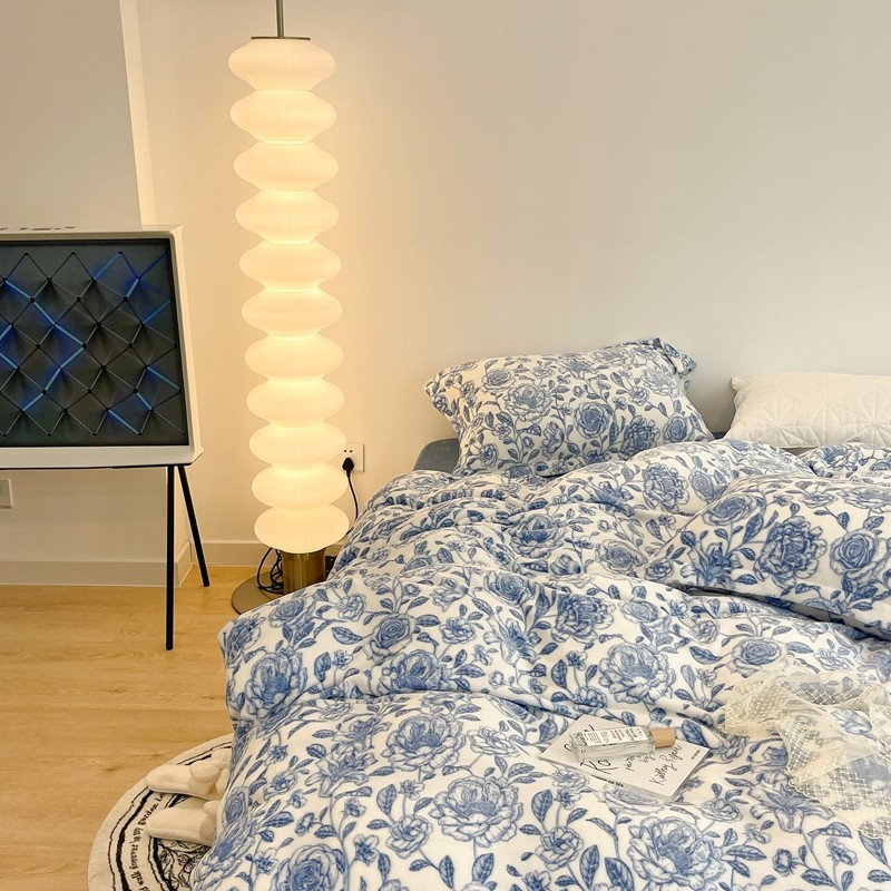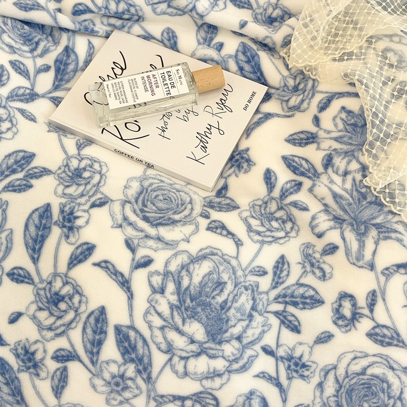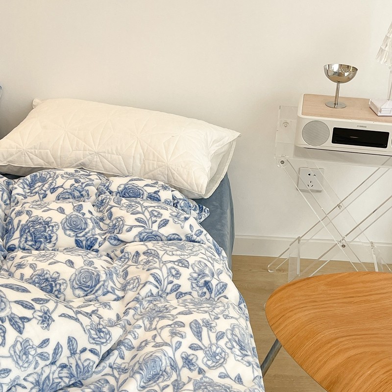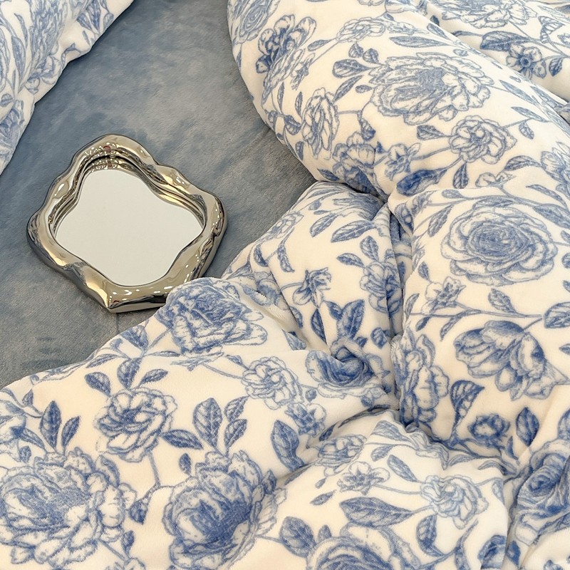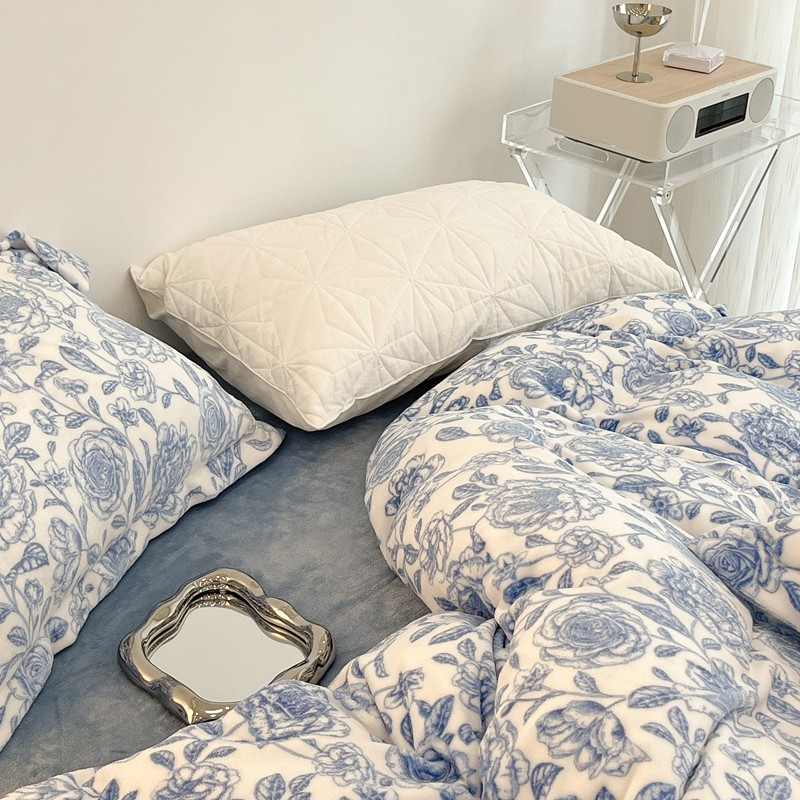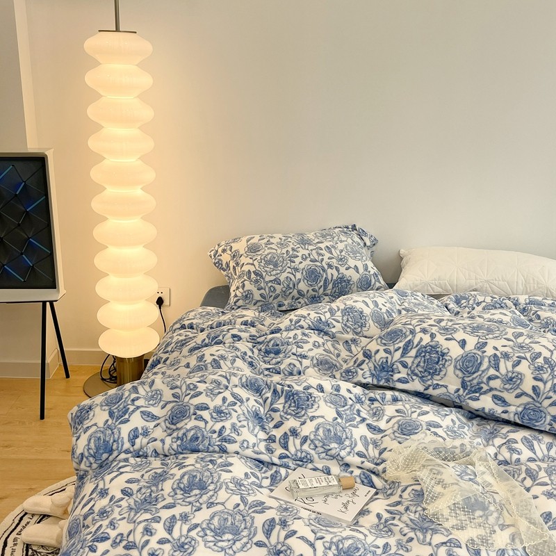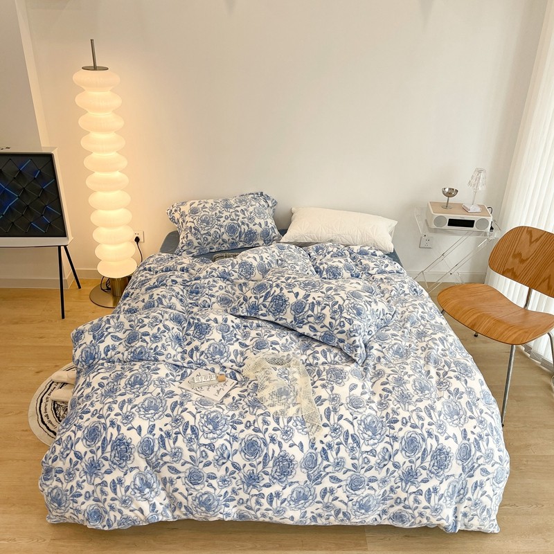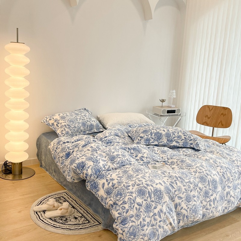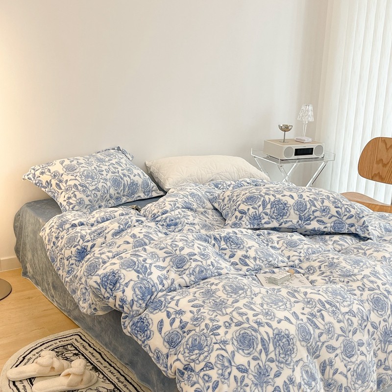 昔可家纺 2021新款牛奶绒四件套-二批 手绘山茶蓝
