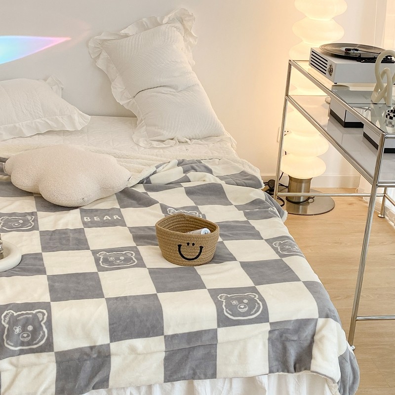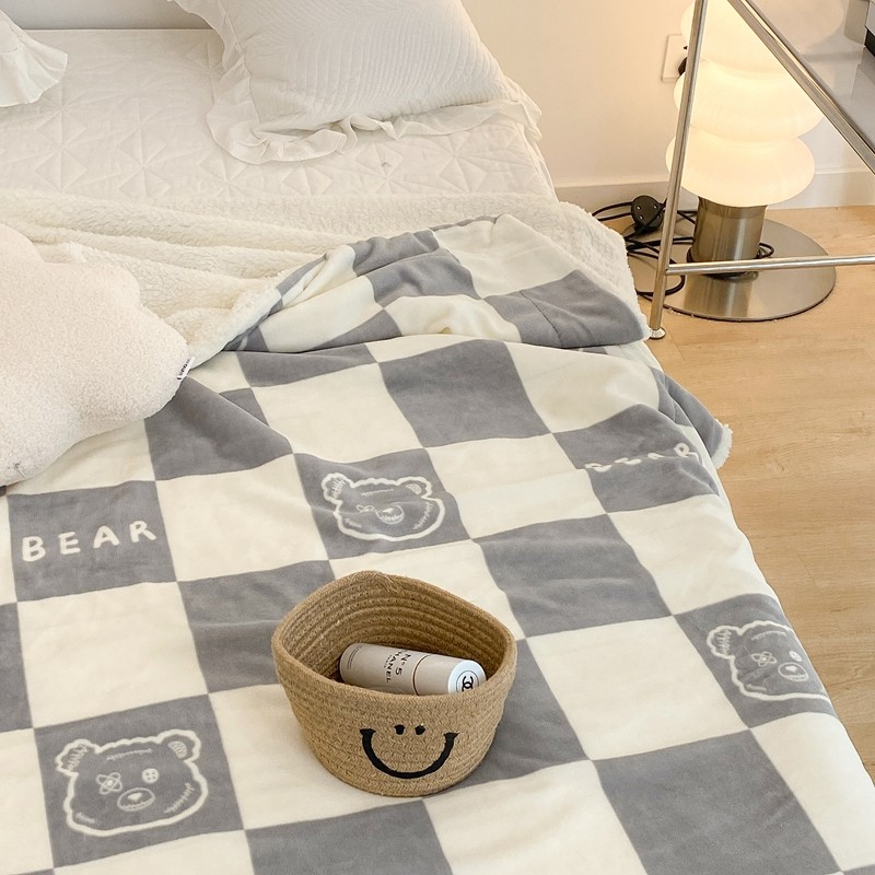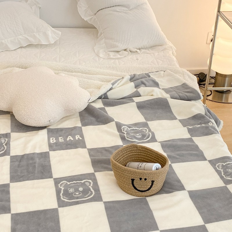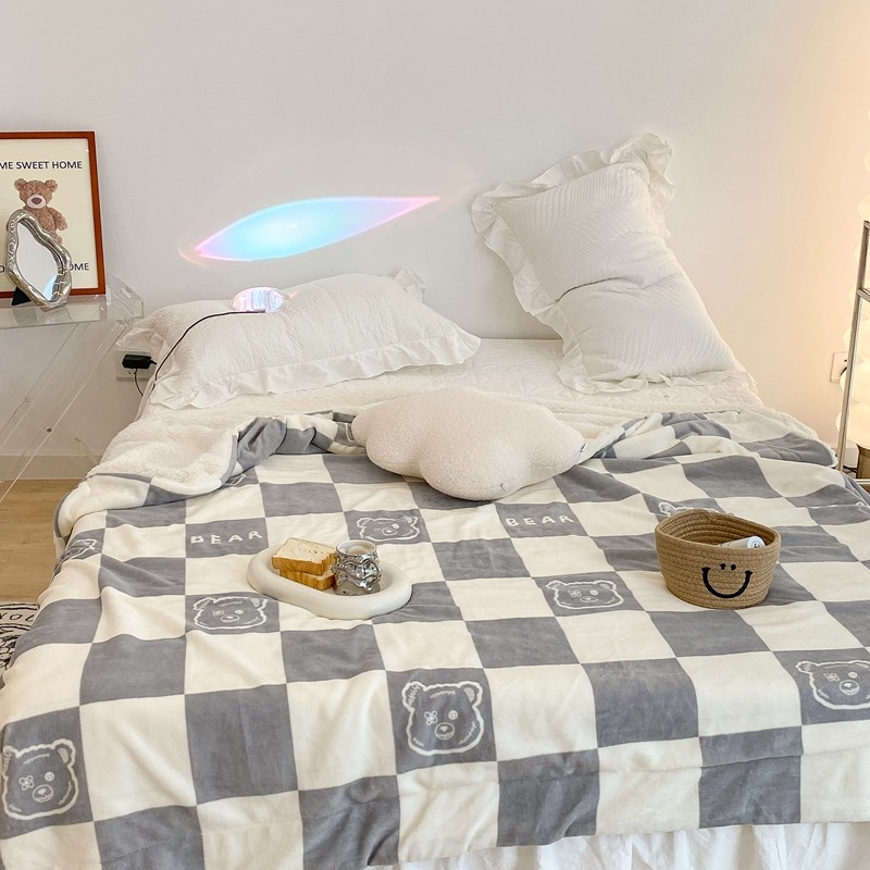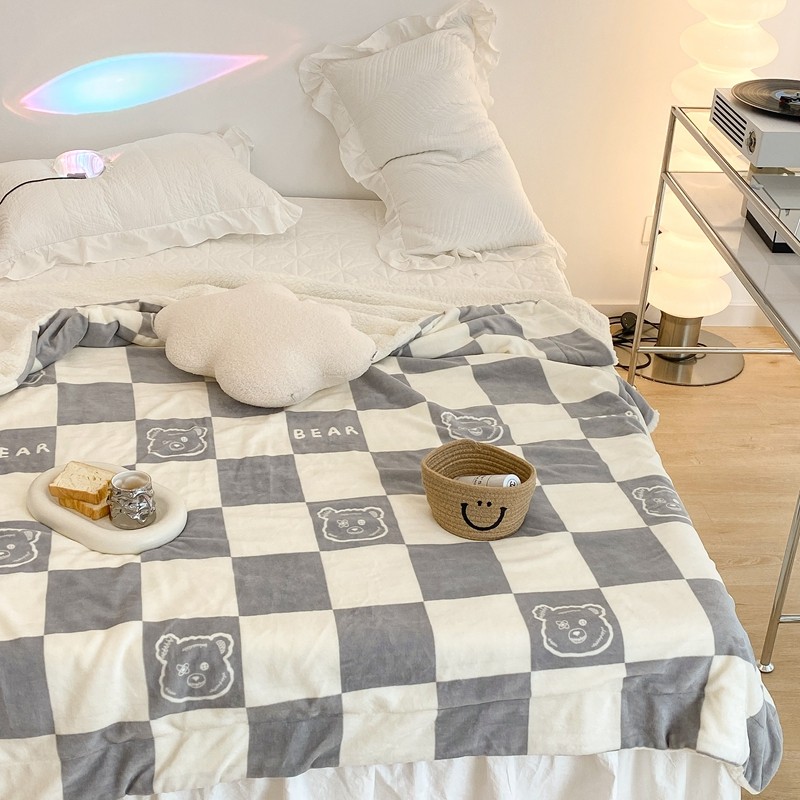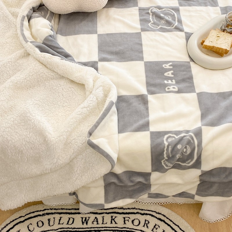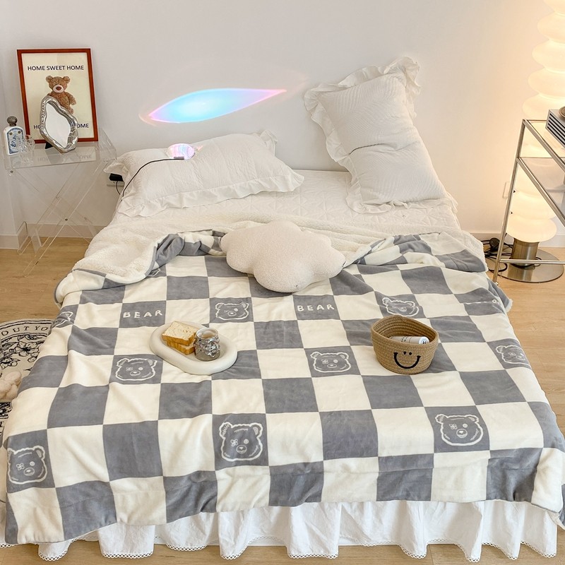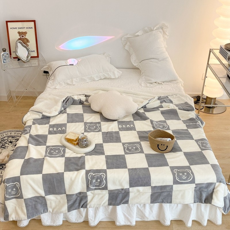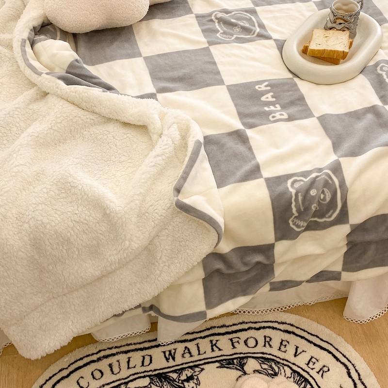 商品名称:昔可家纺 2021新款牛奶羊羔绒印花毯 灰格熊