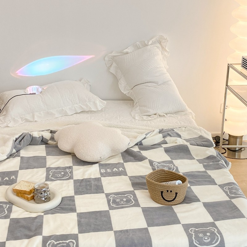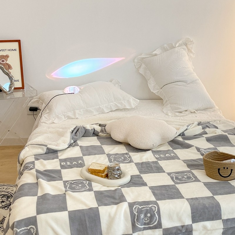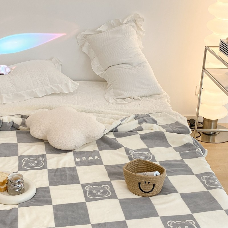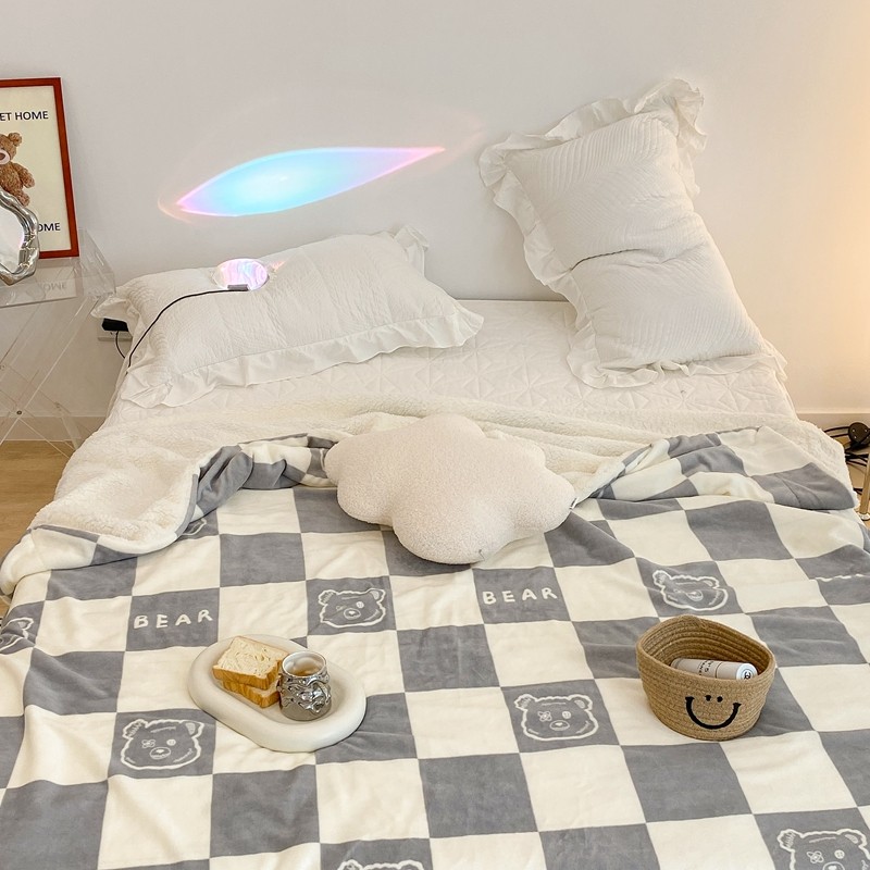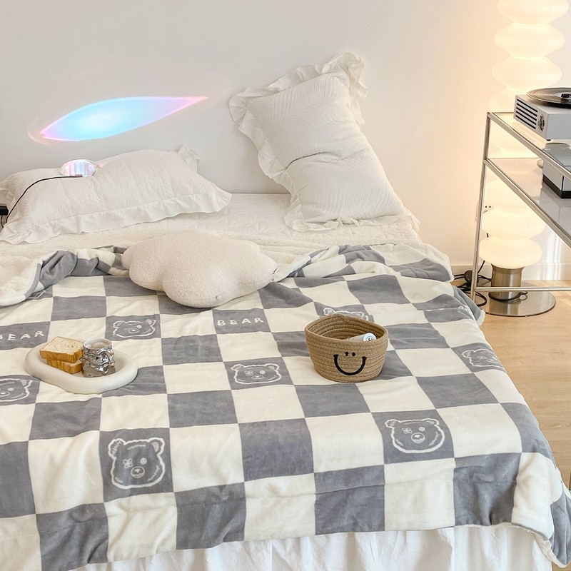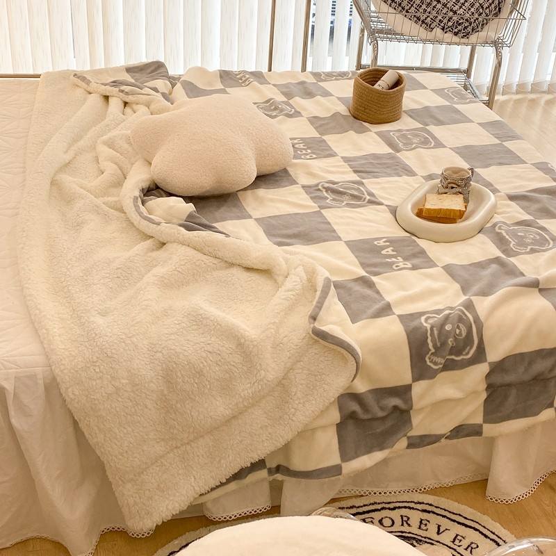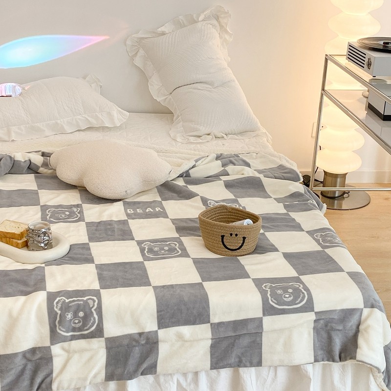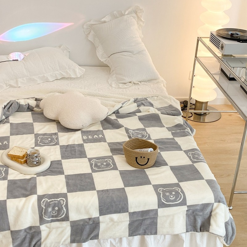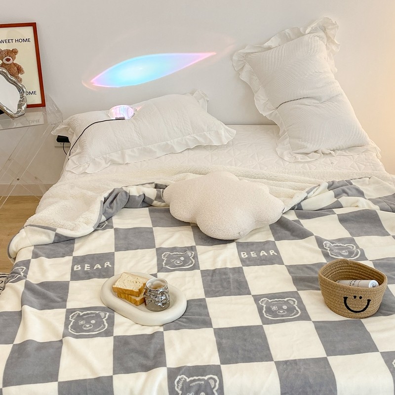 商品名称:昔可家纺 2021新款牛奶羊羔绒印花毯 灰格熊