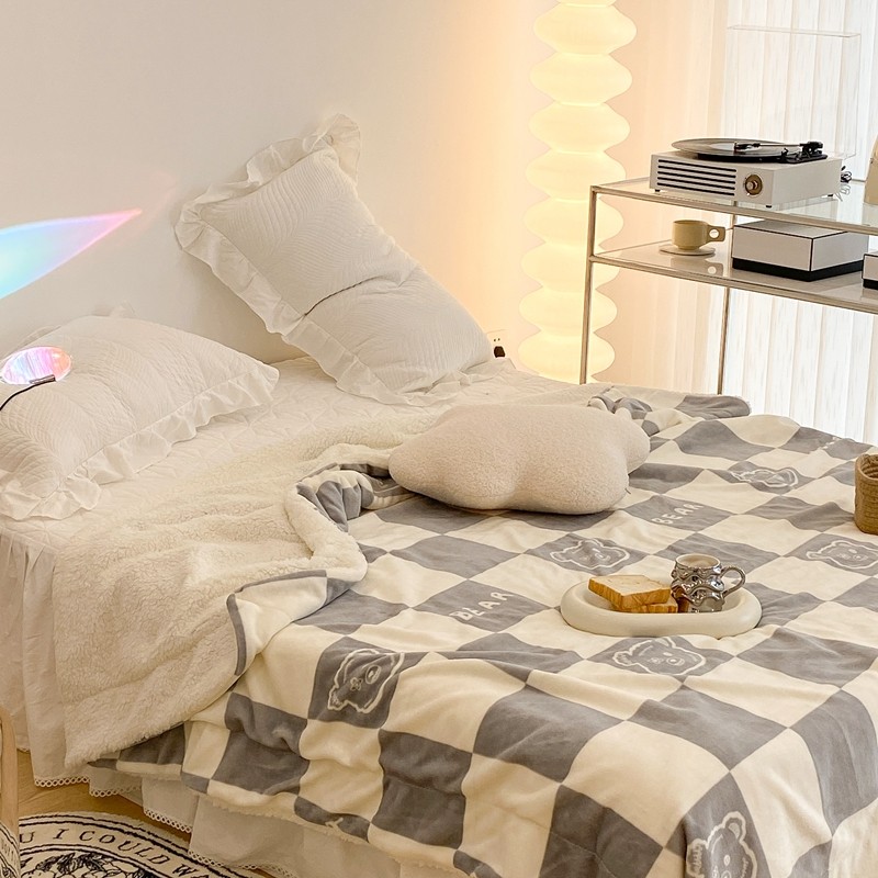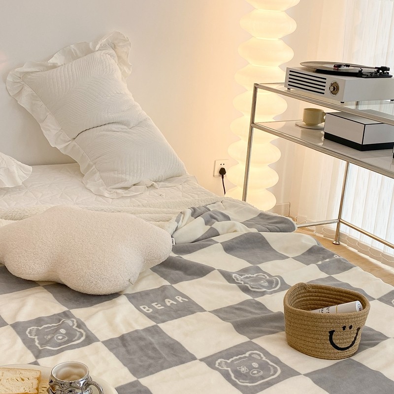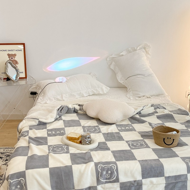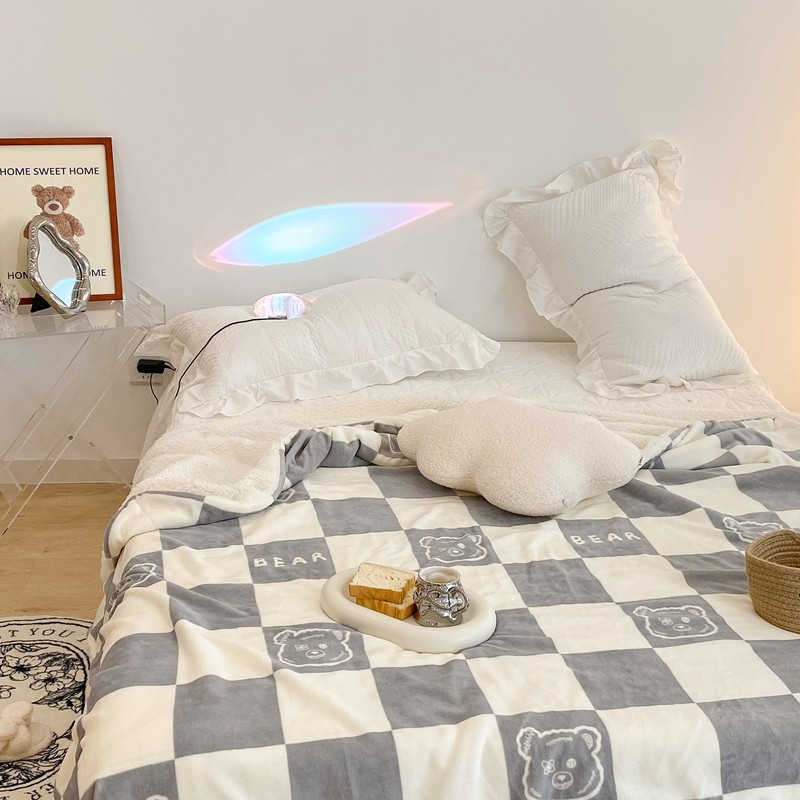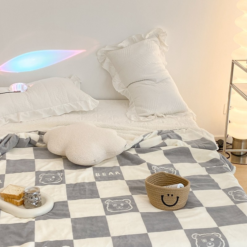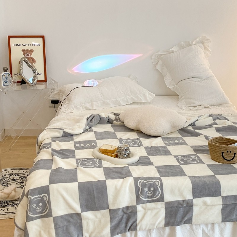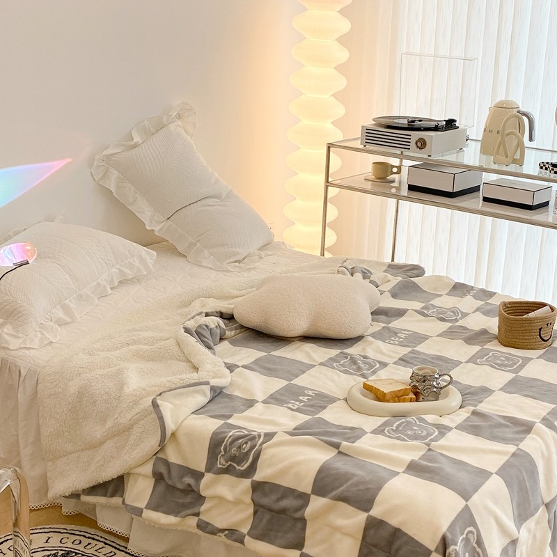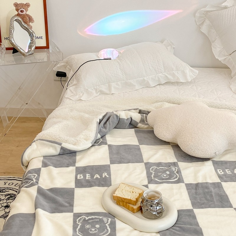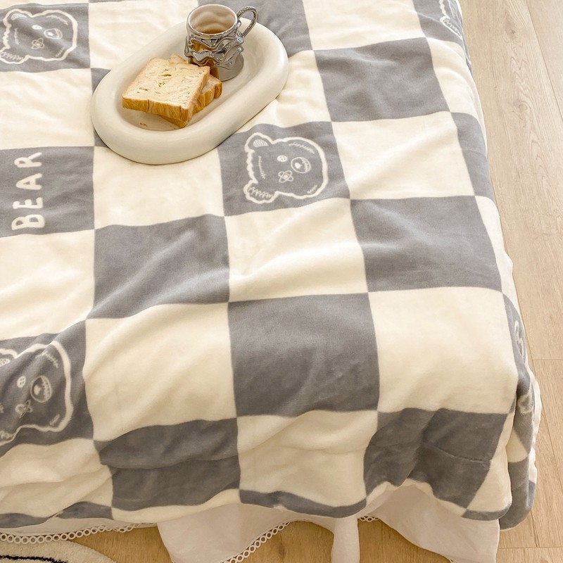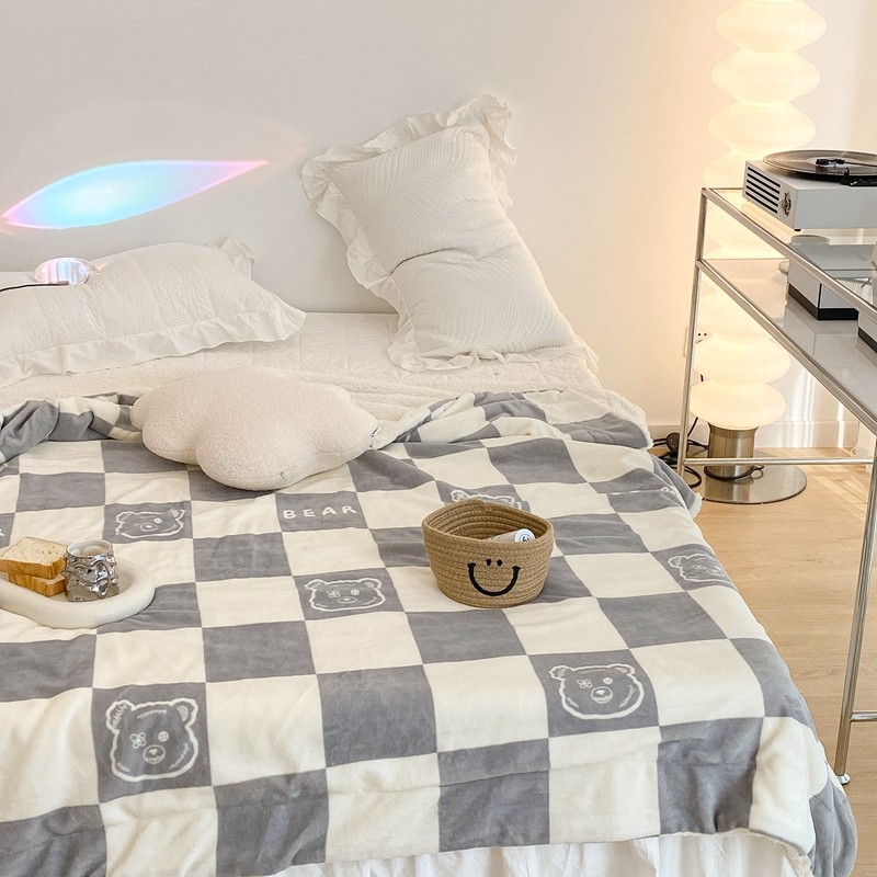 商品名称:昔可家纺 2021新款牛奶羊羔绒印花毯 灰格熊