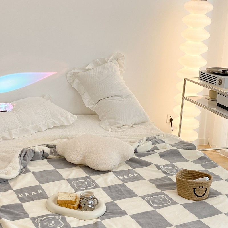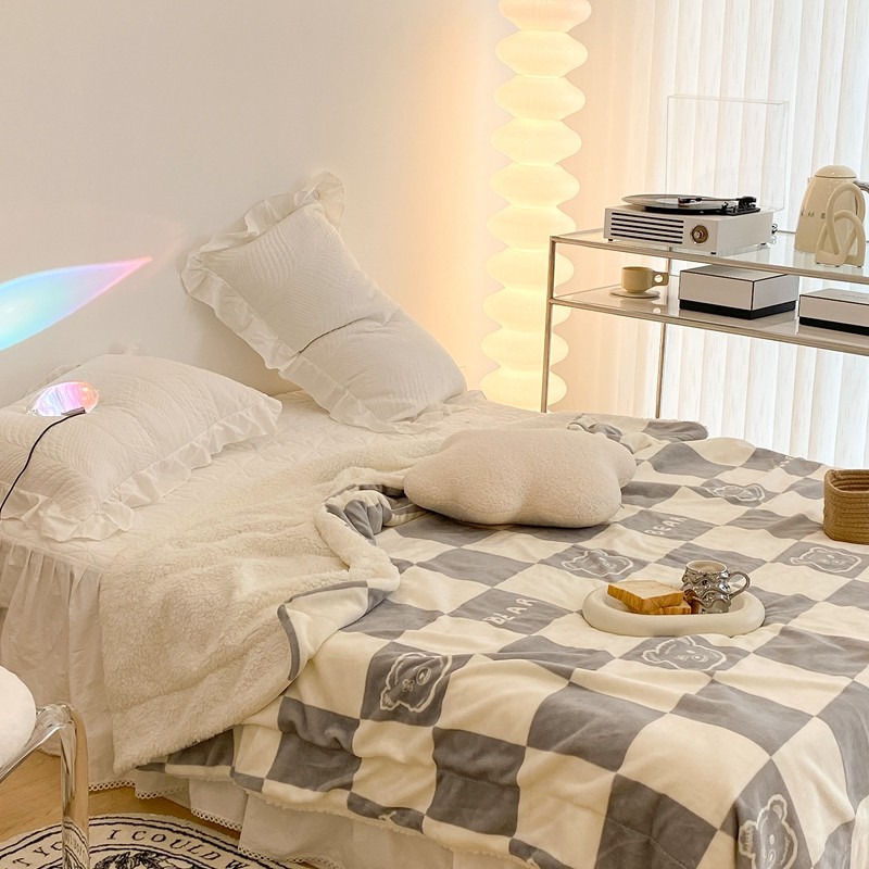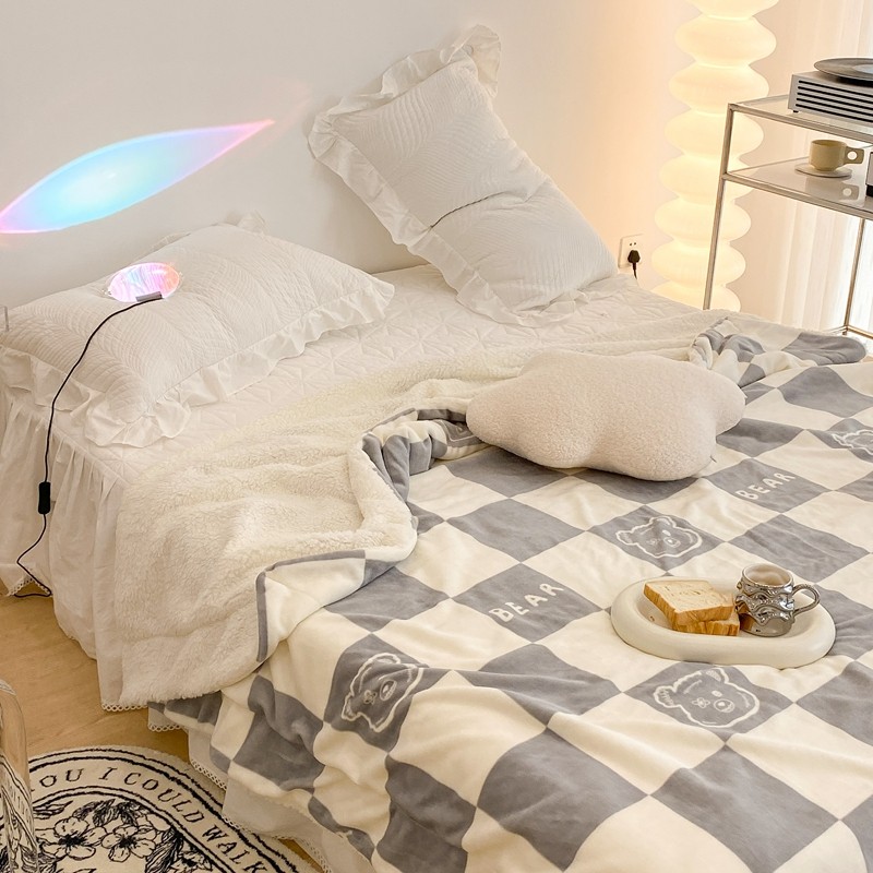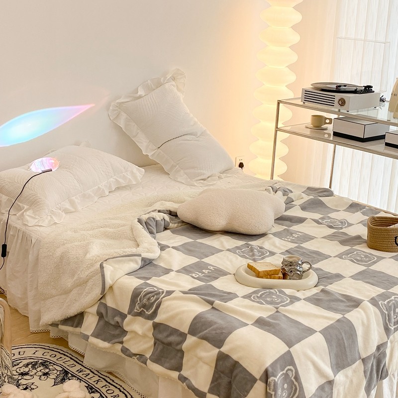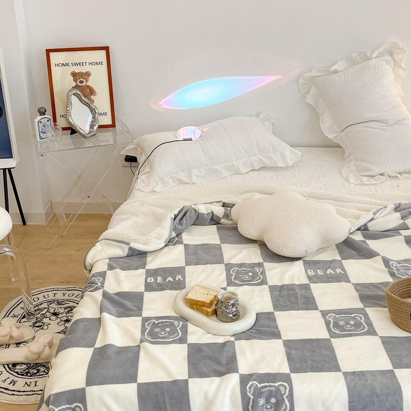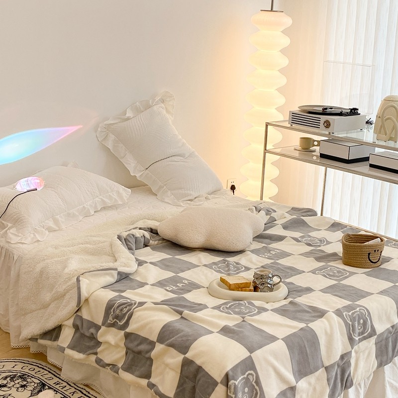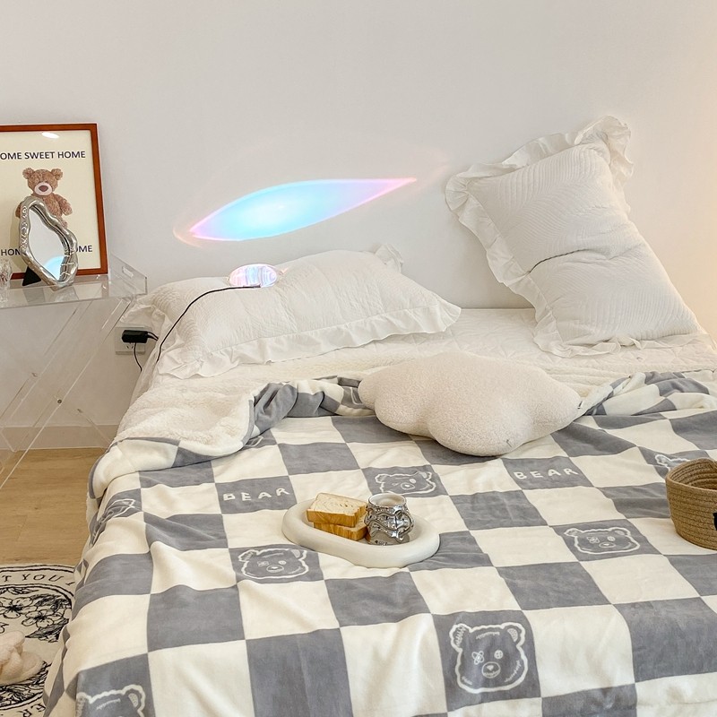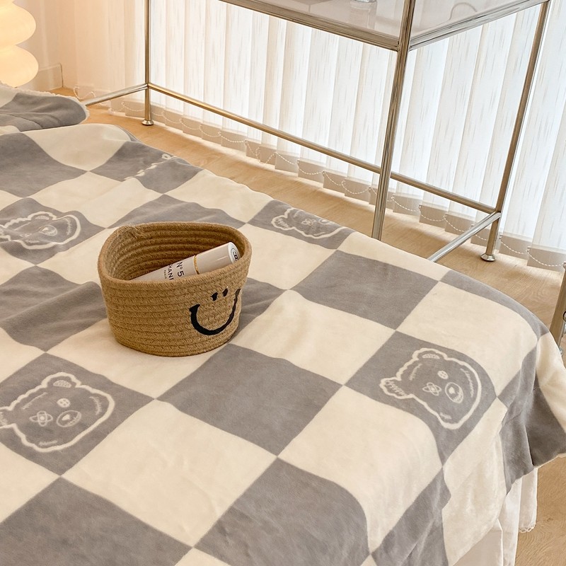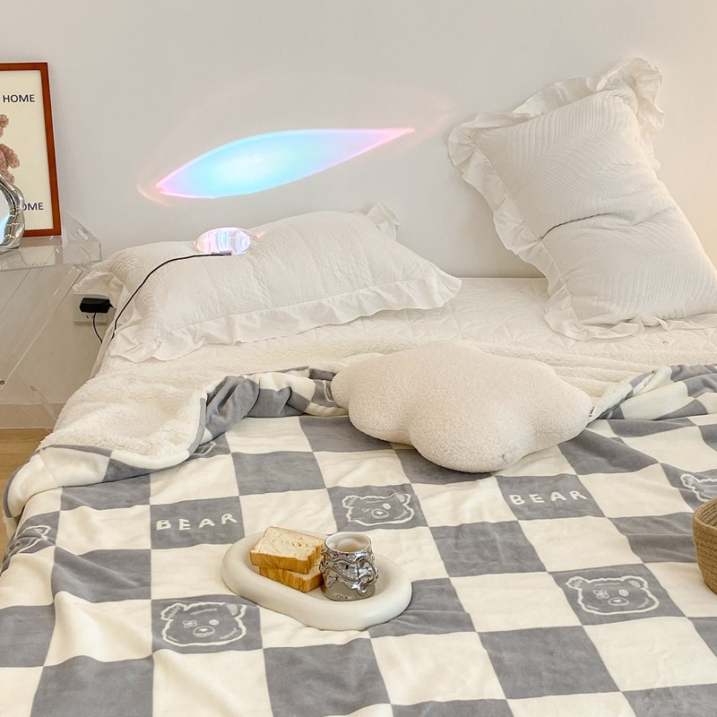 商品名称:昔可家纺 2021新款牛奶羊羔绒印花毯 灰格熊
