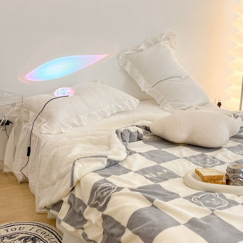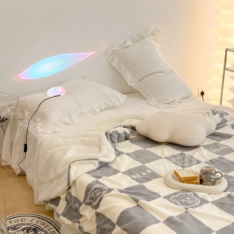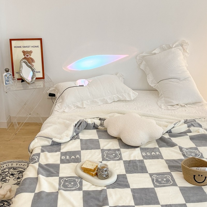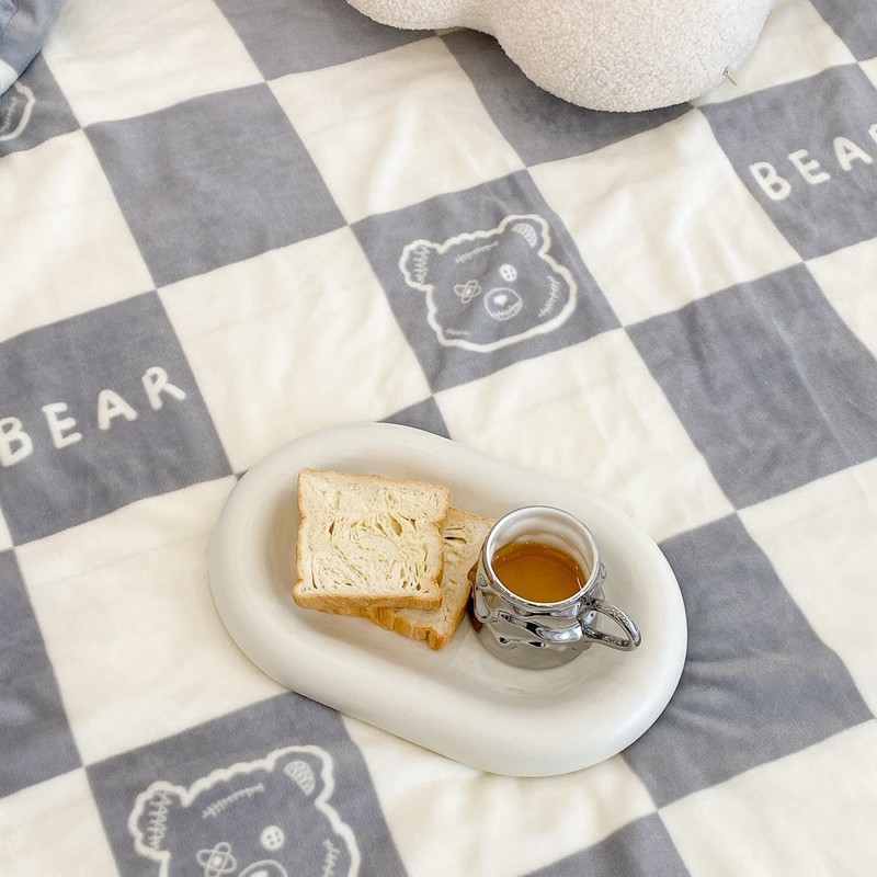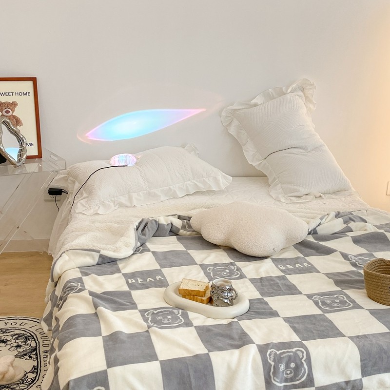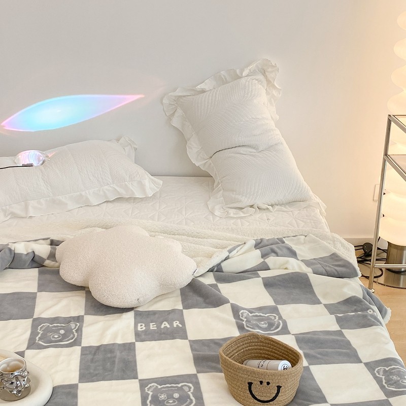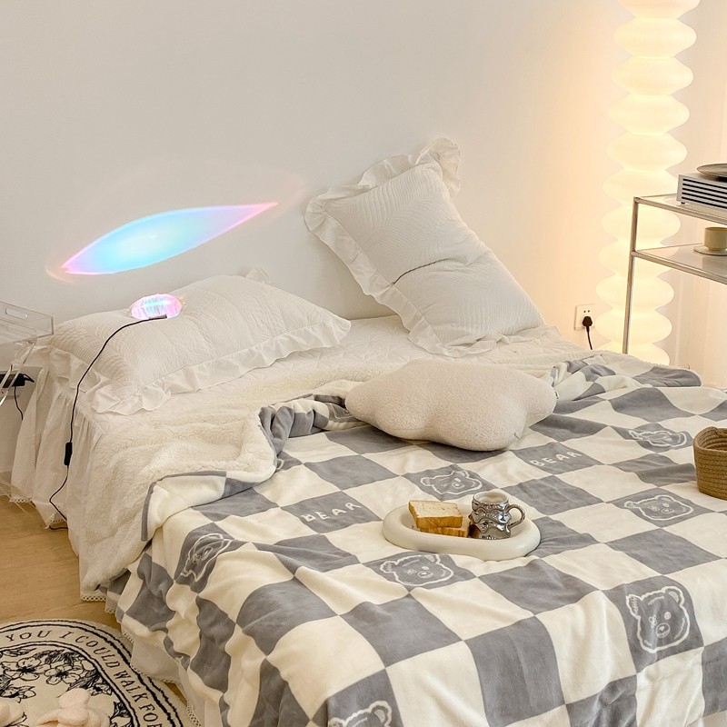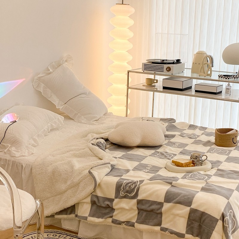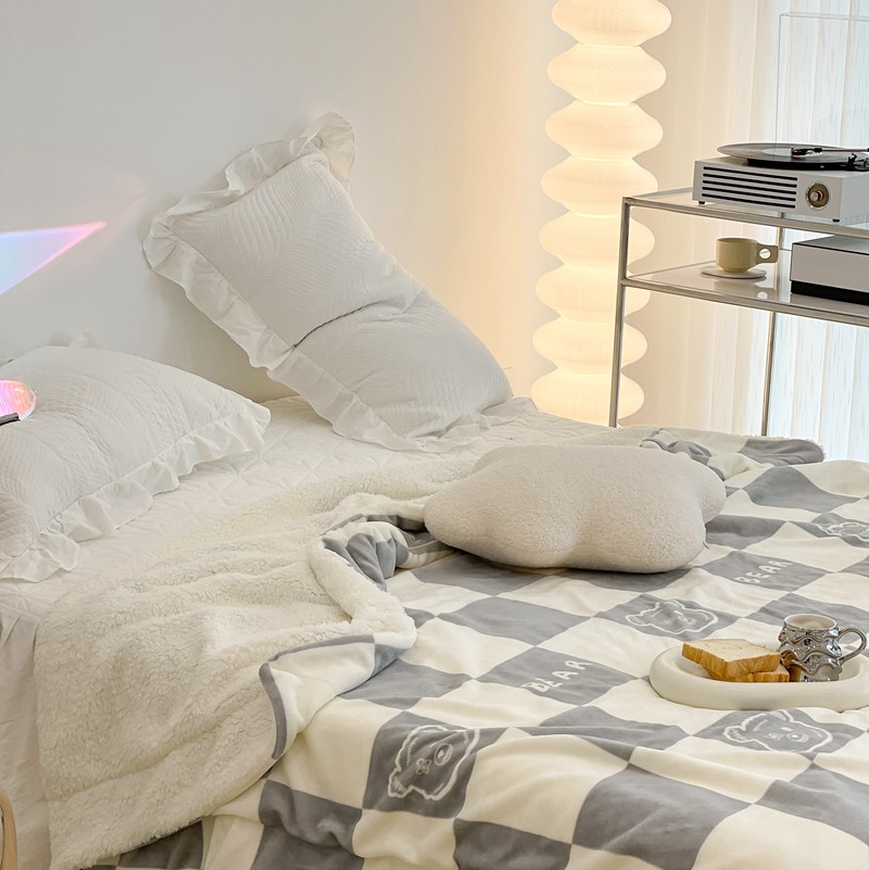 商品名称:昔可家纺 2021新款牛奶羊羔绒印花毯 灰格熊