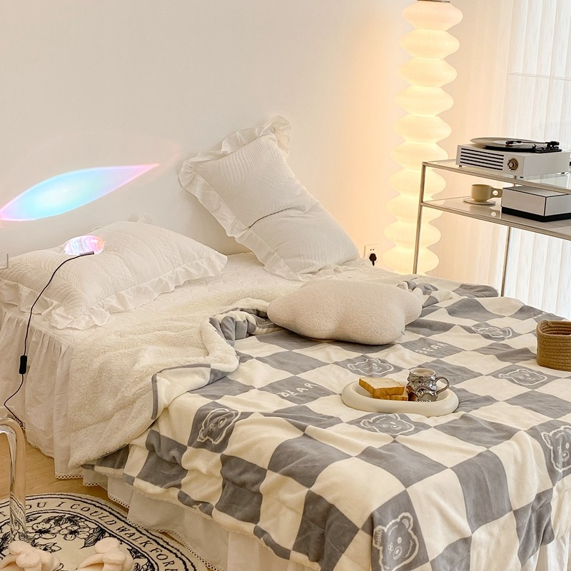 昔可家纺 2021新款牛奶羊羔绒印花毯 灰格熊