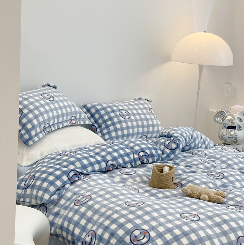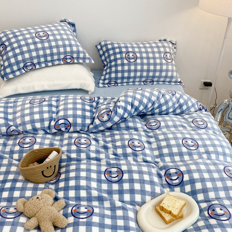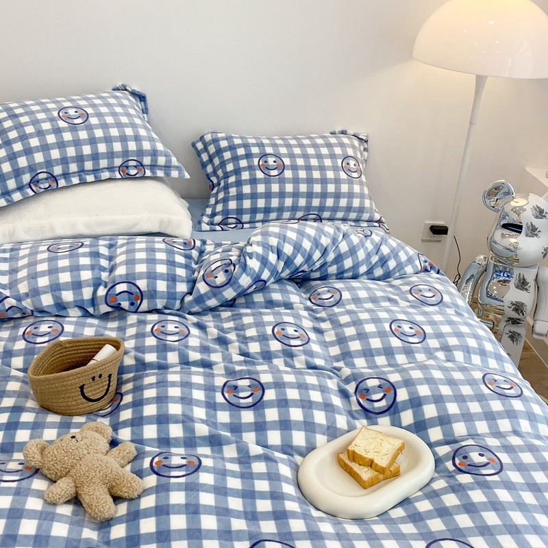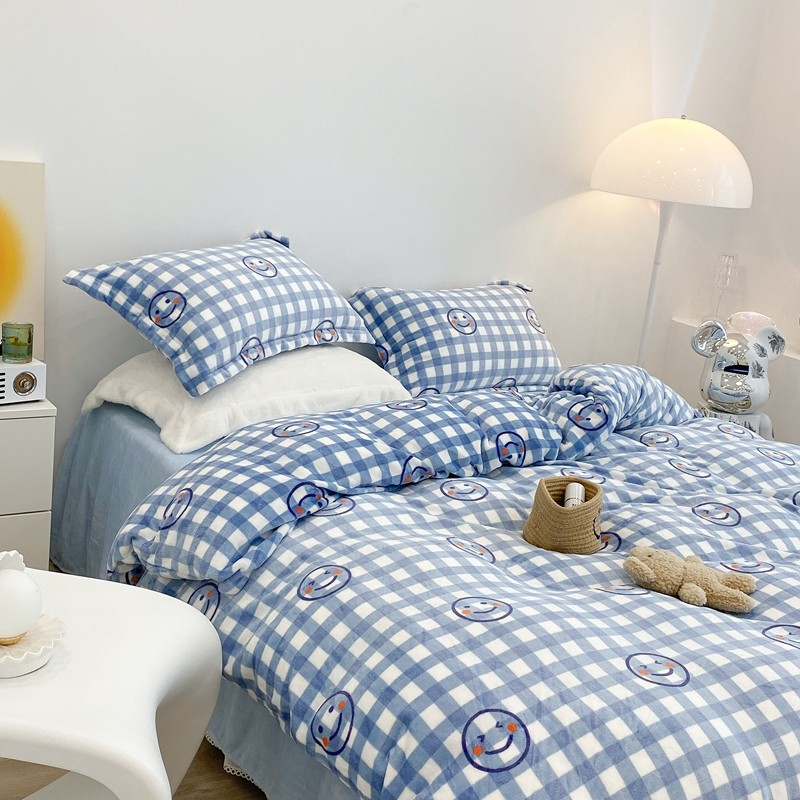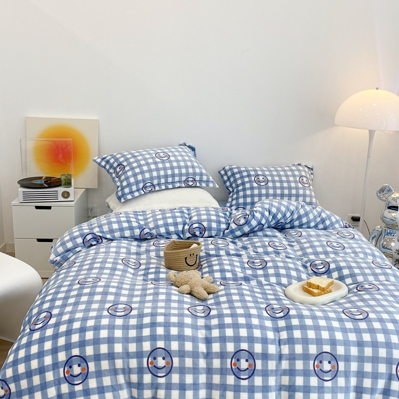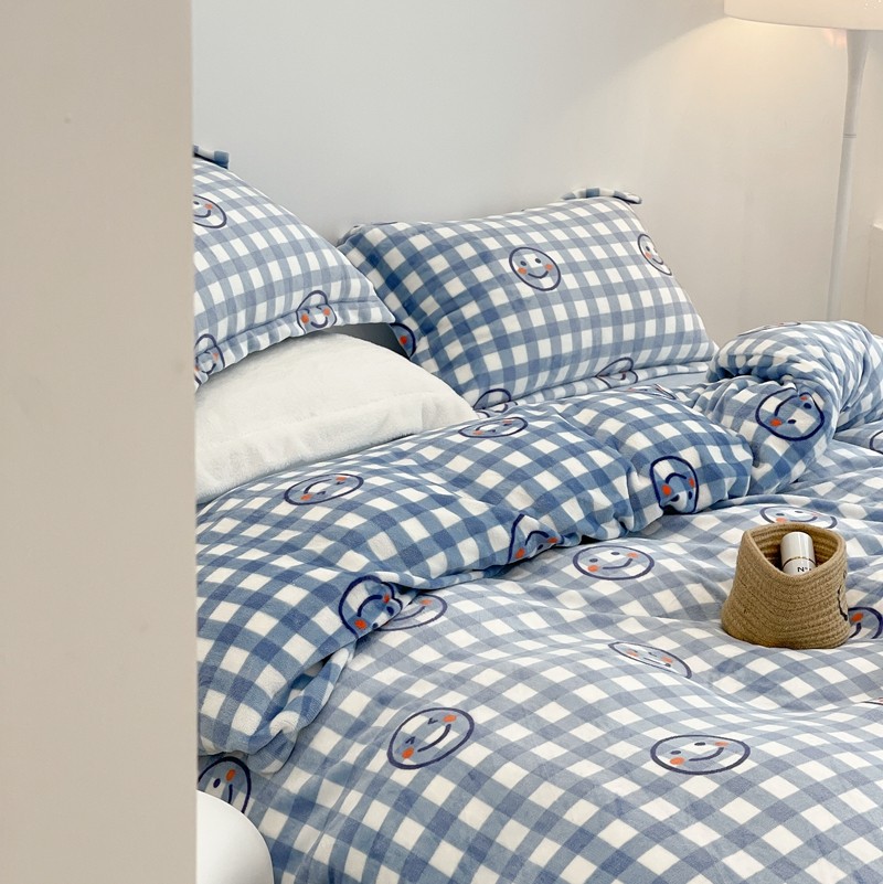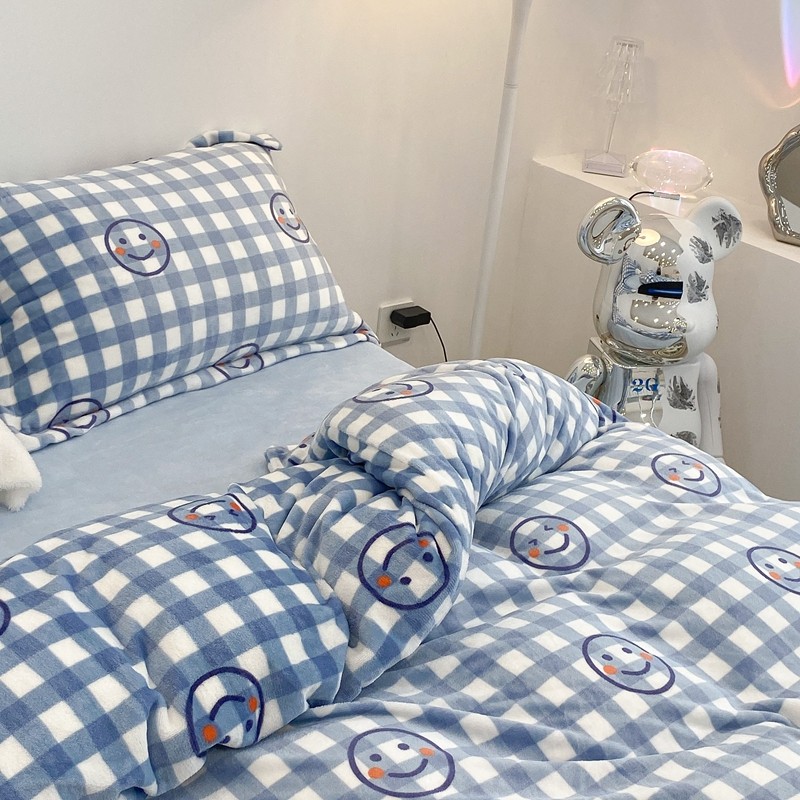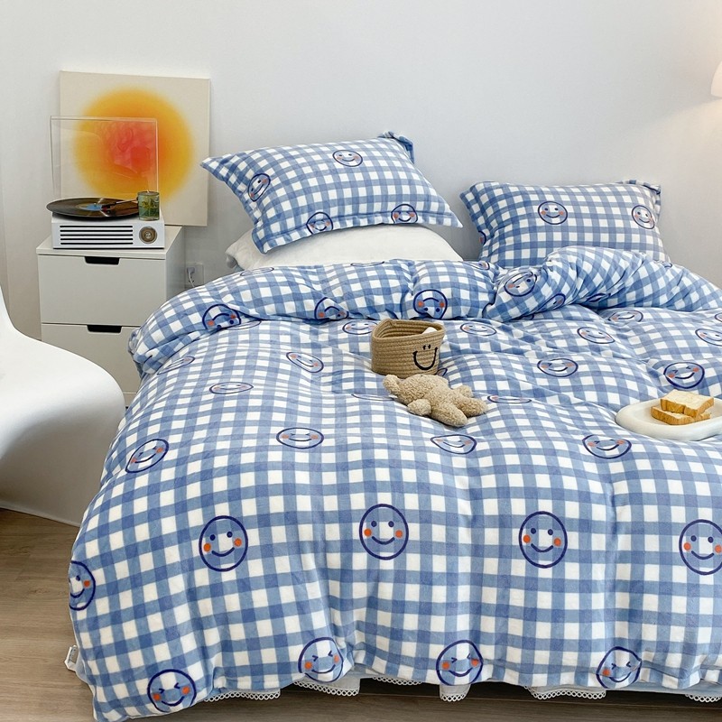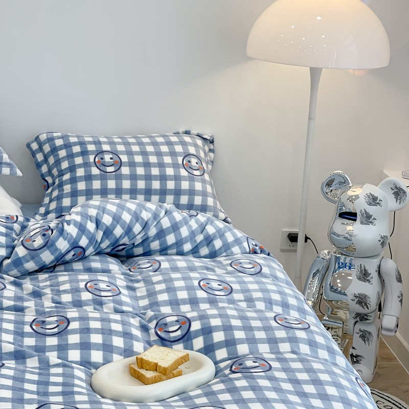 昔可家纺 2021新款牛奶绒四件套-三批 蓝格笑脸