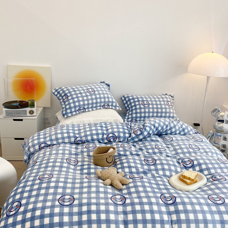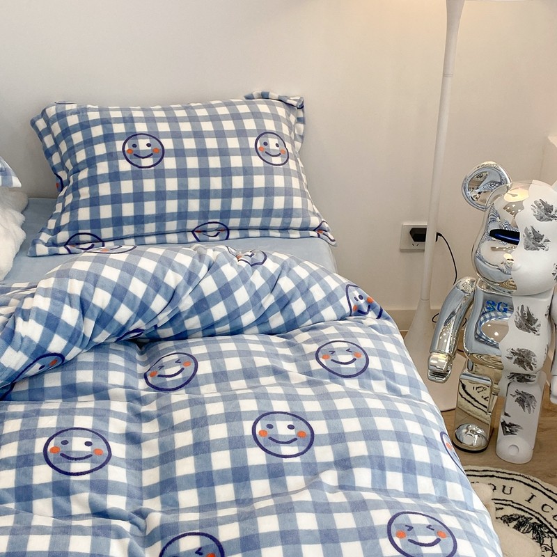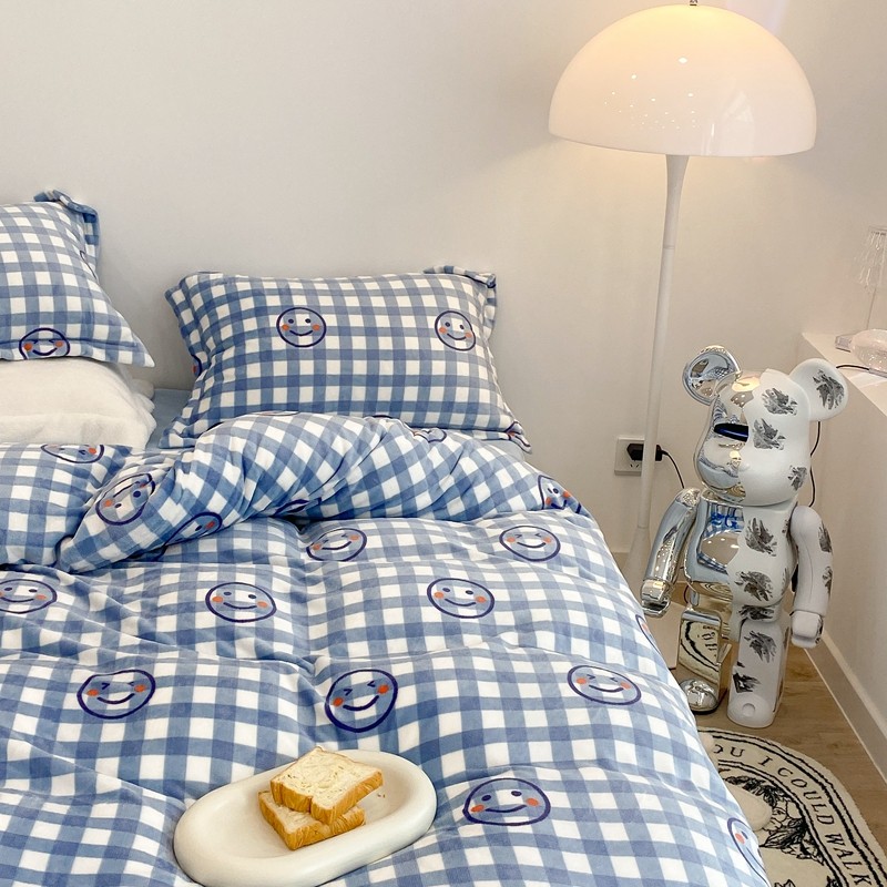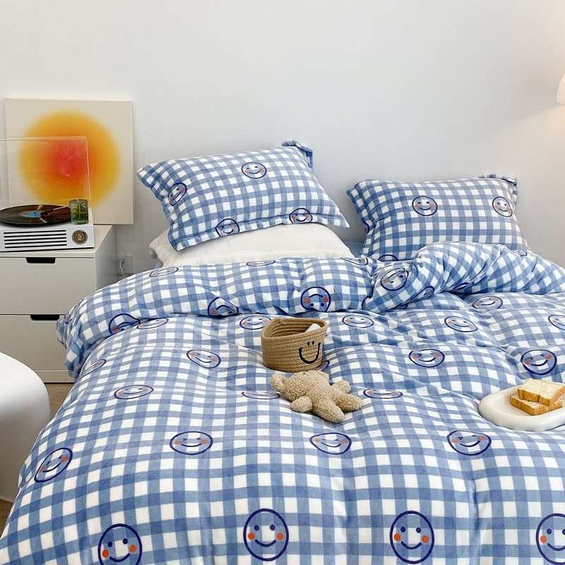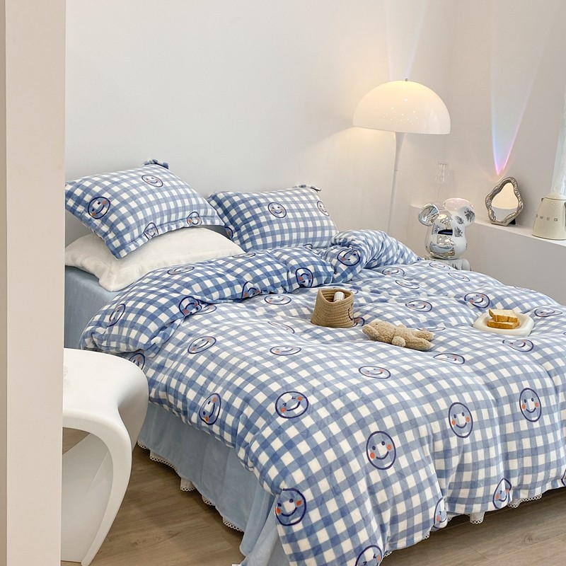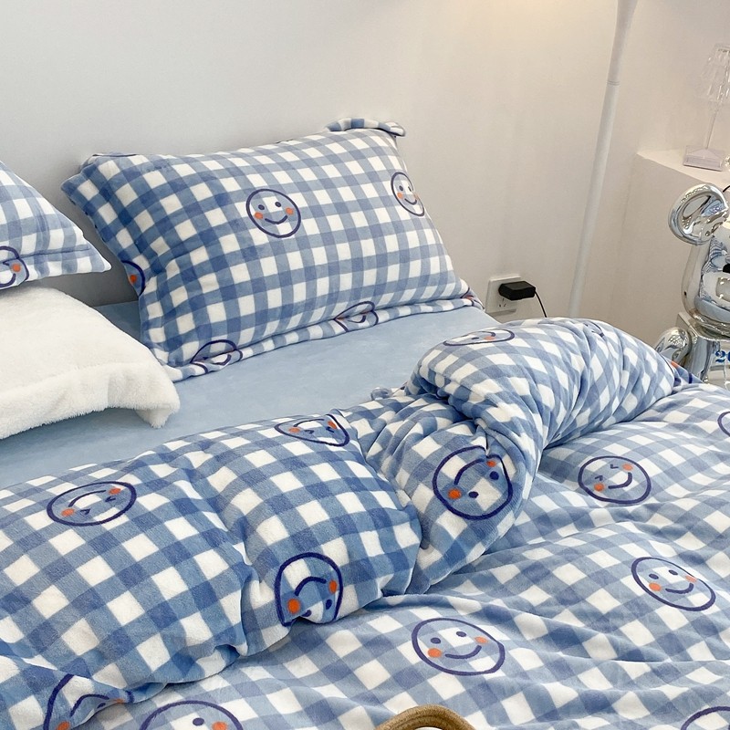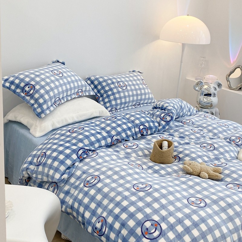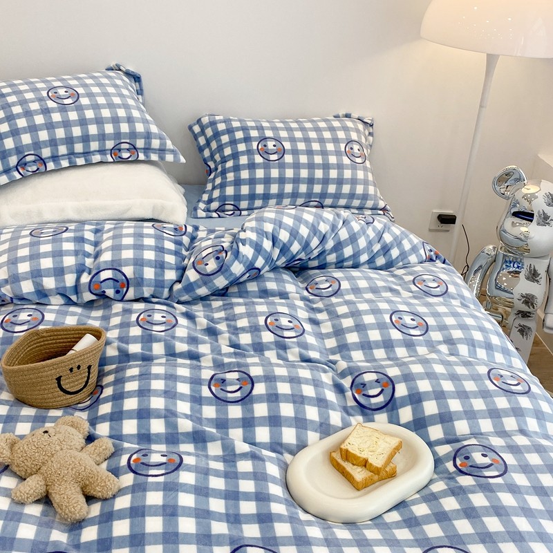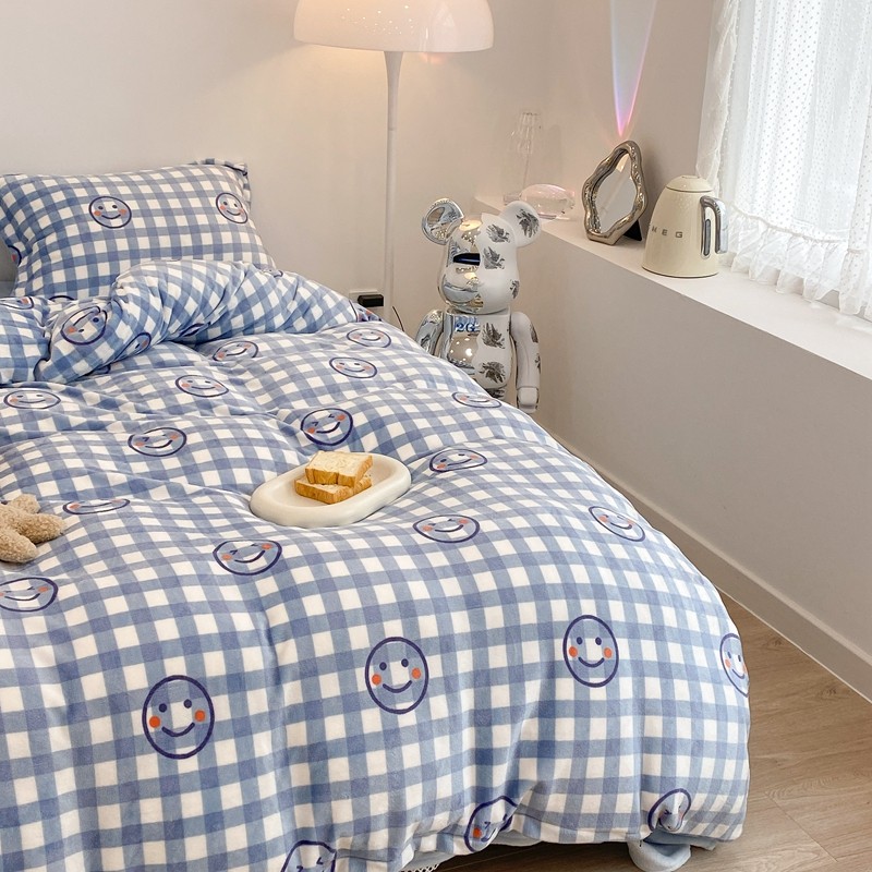 昔可家纺 2021新款牛奶绒四件套-三批 蓝格笑脸