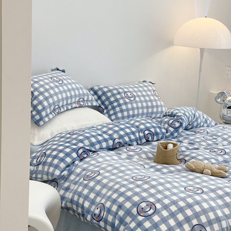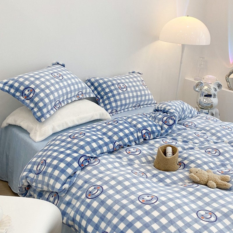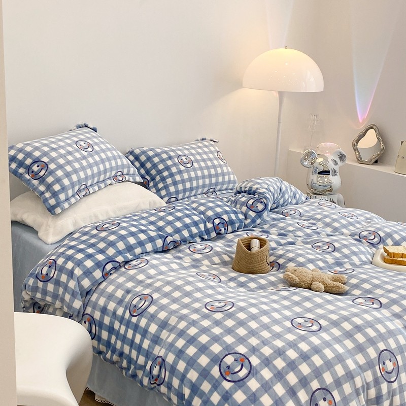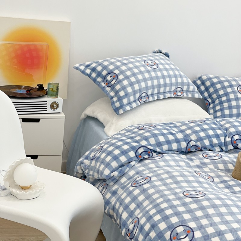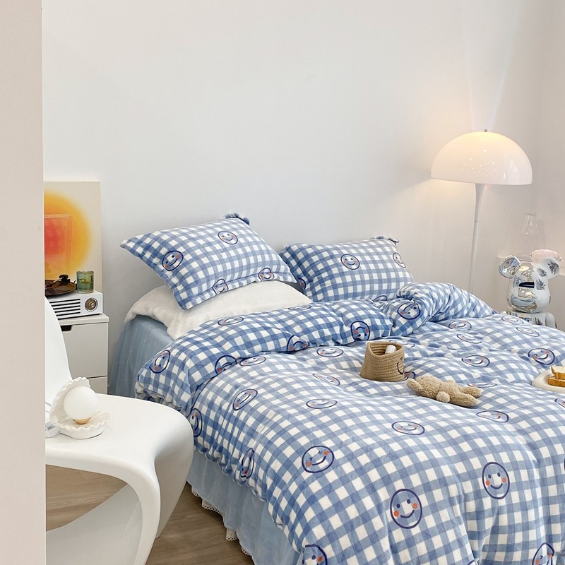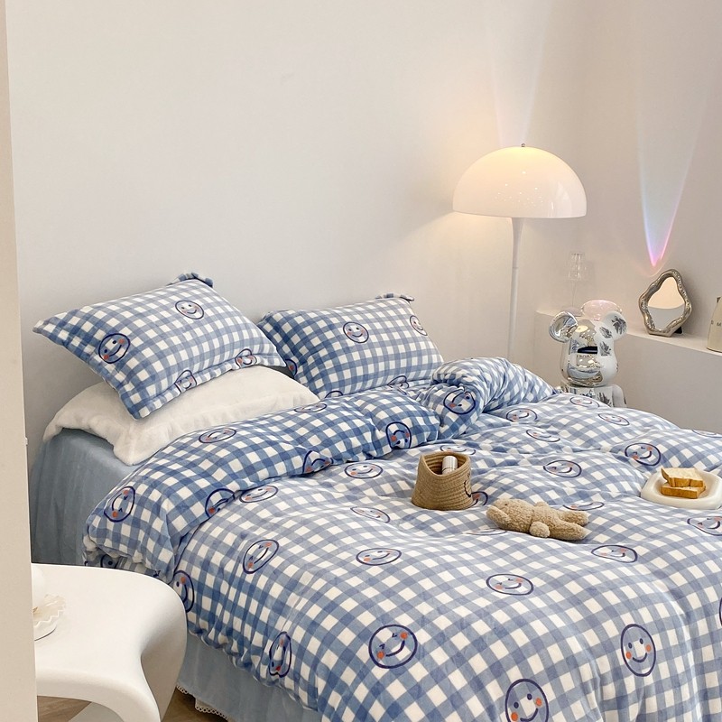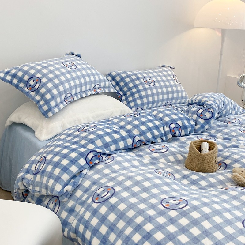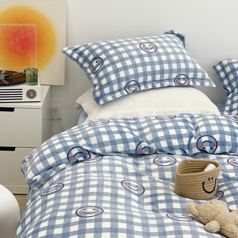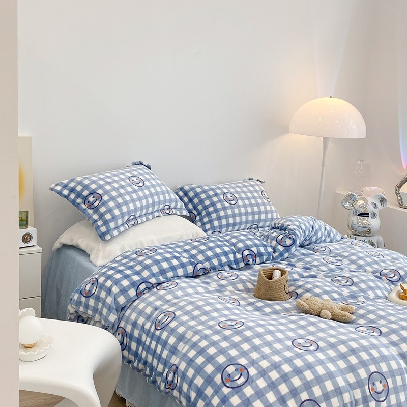 昔可家纺 2021新款牛奶绒四件套-三批 蓝格笑脸