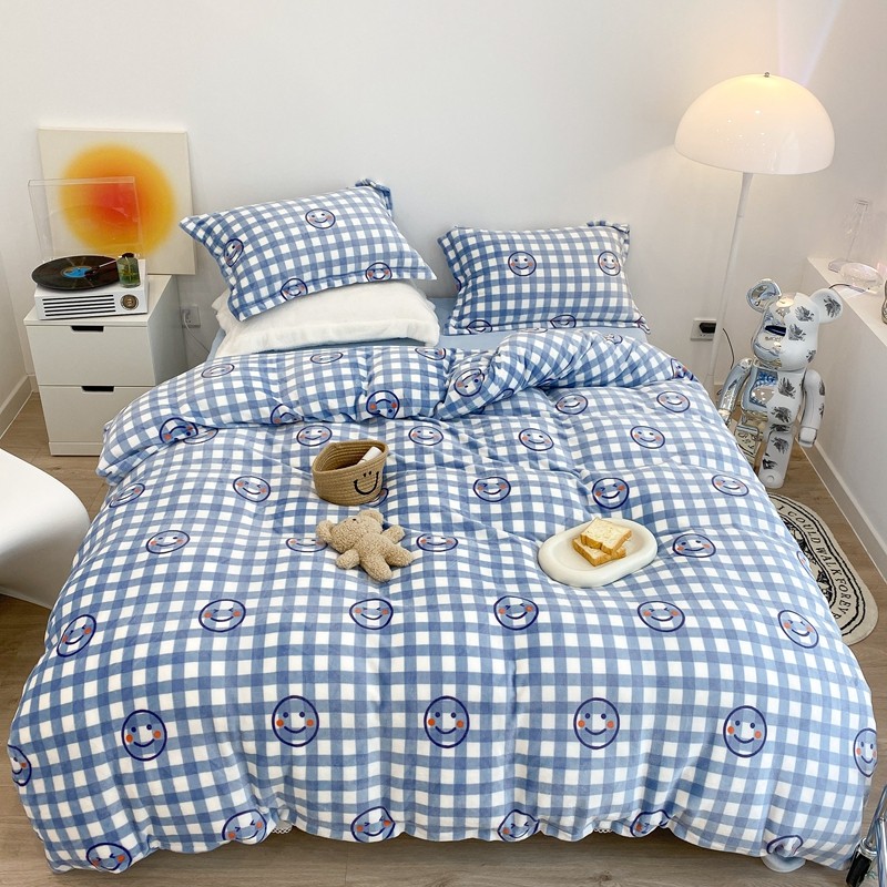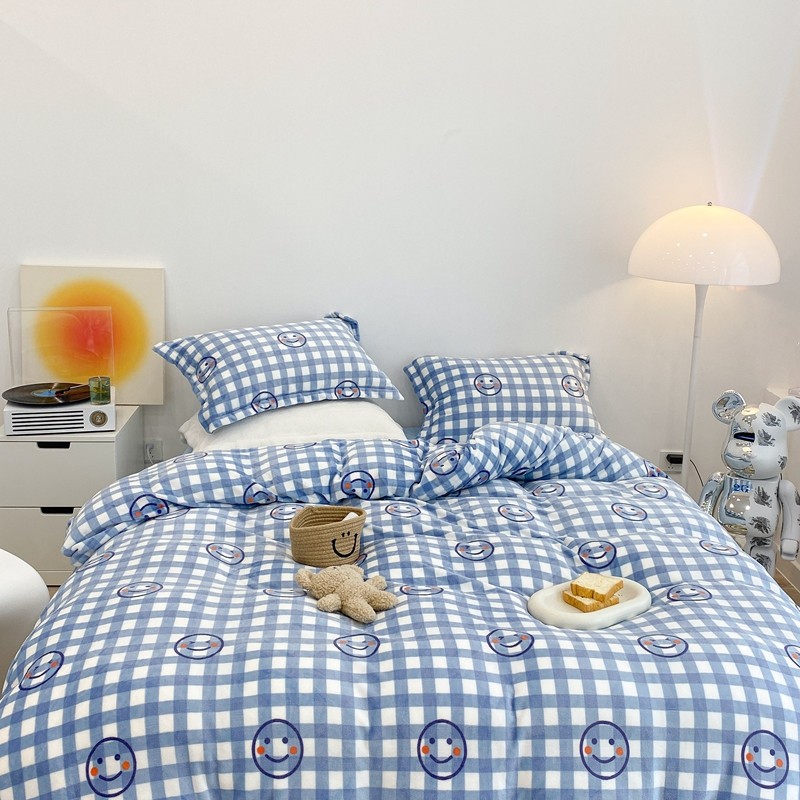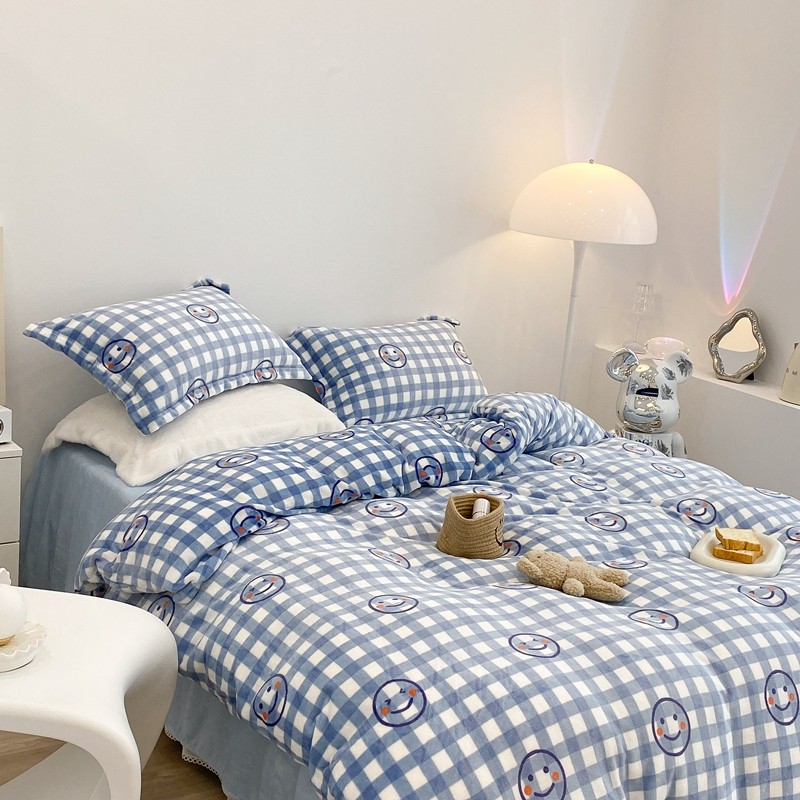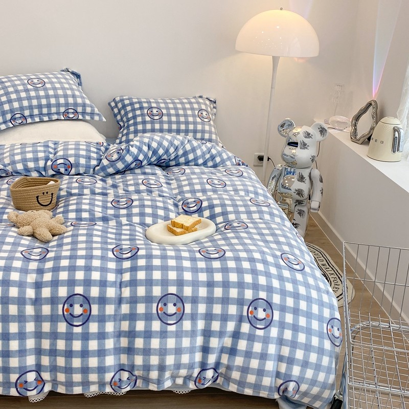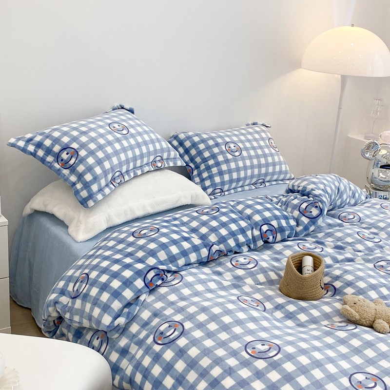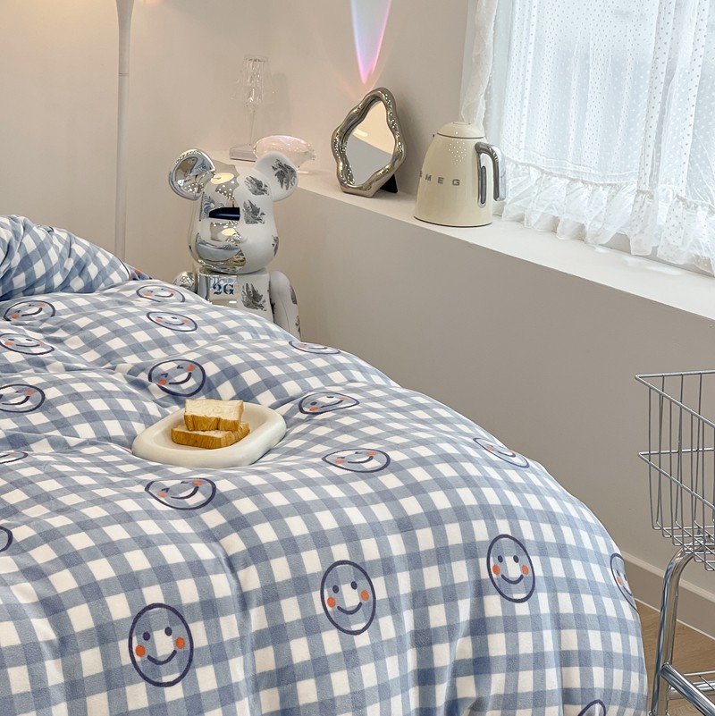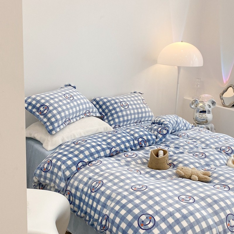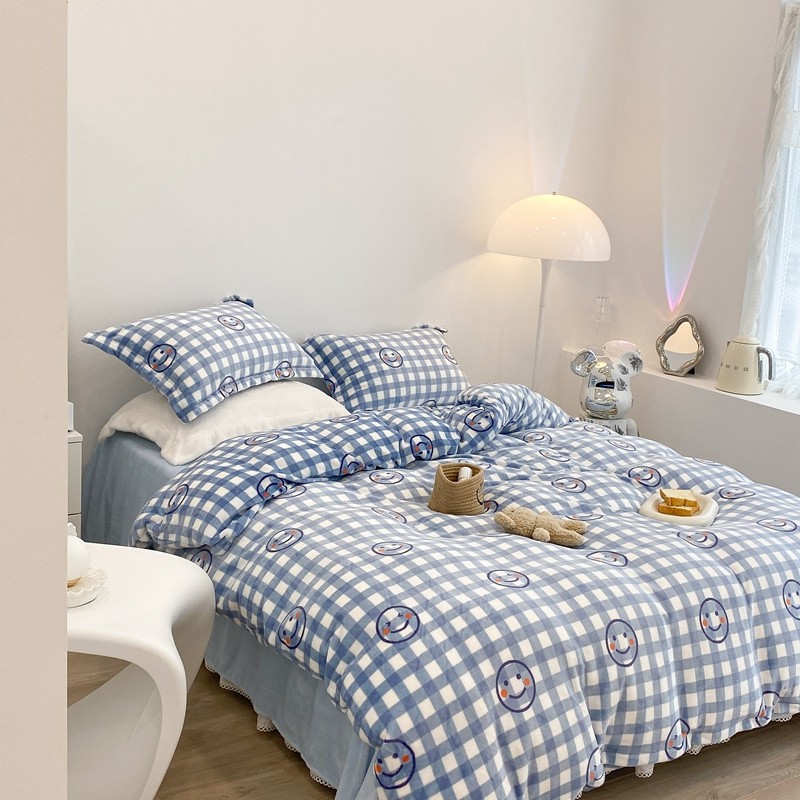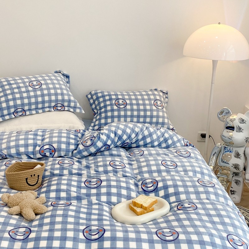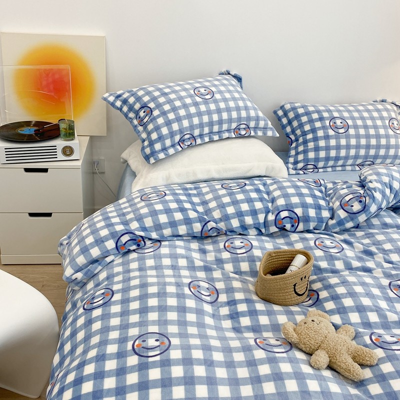 昔可家纺 2021新款牛奶绒四件套-三批 蓝格笑脸