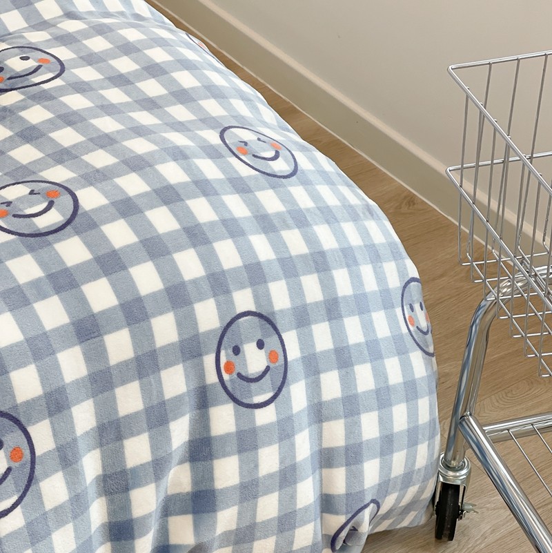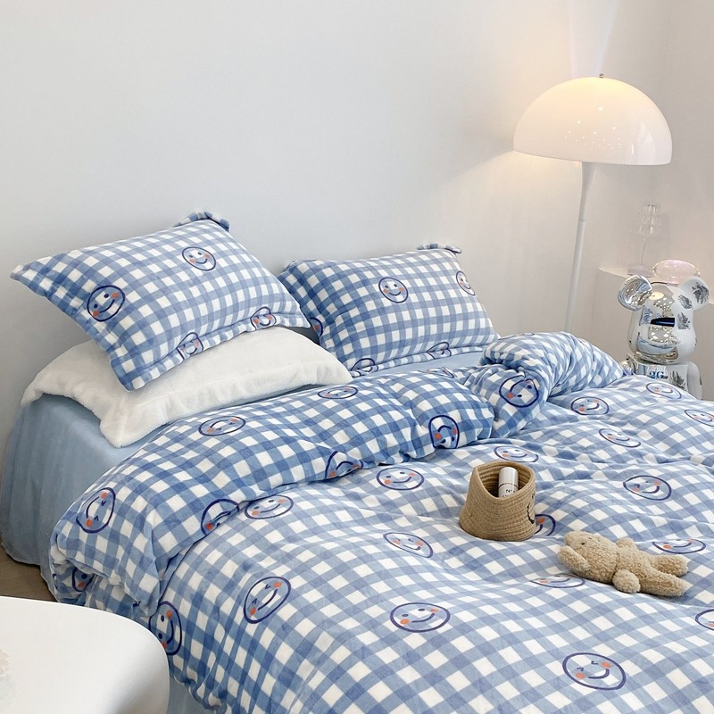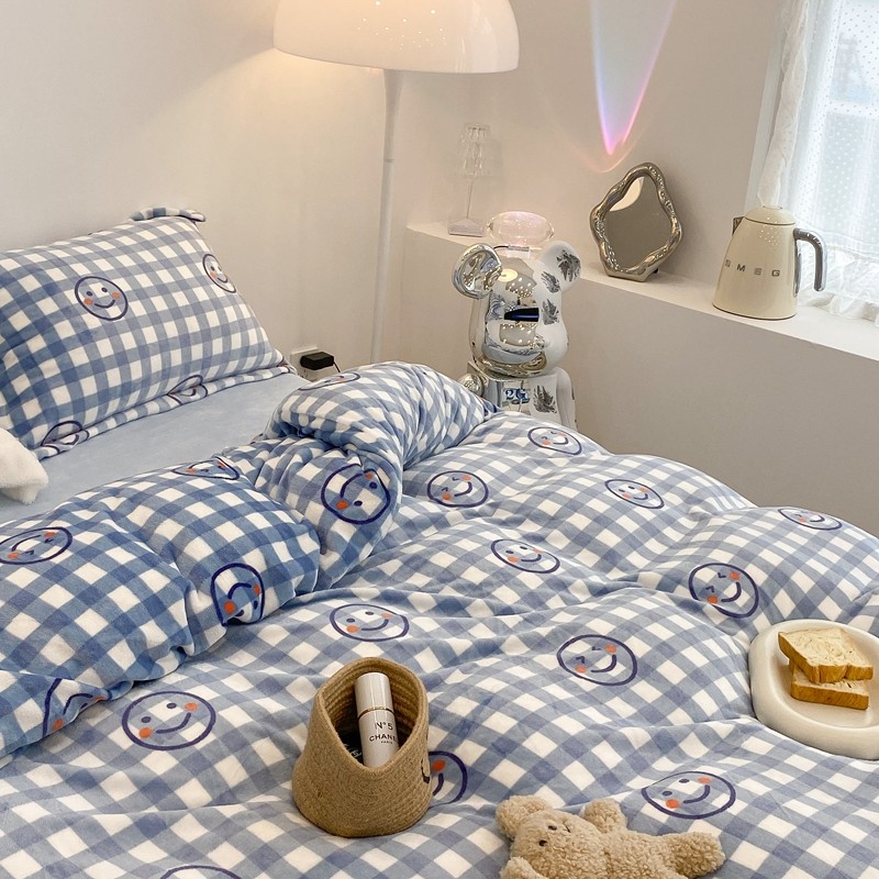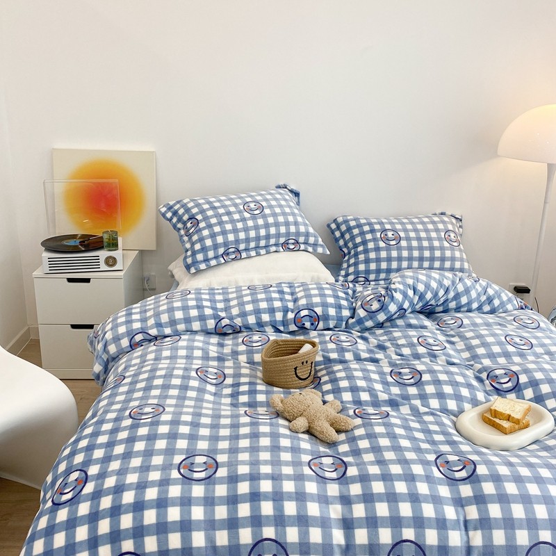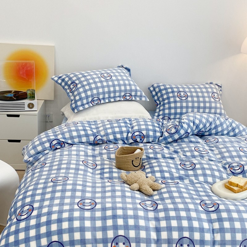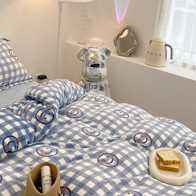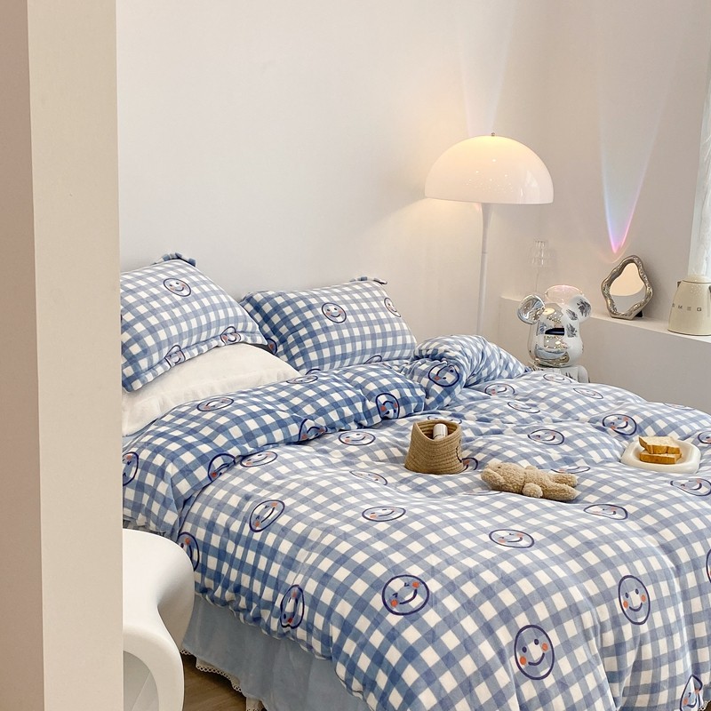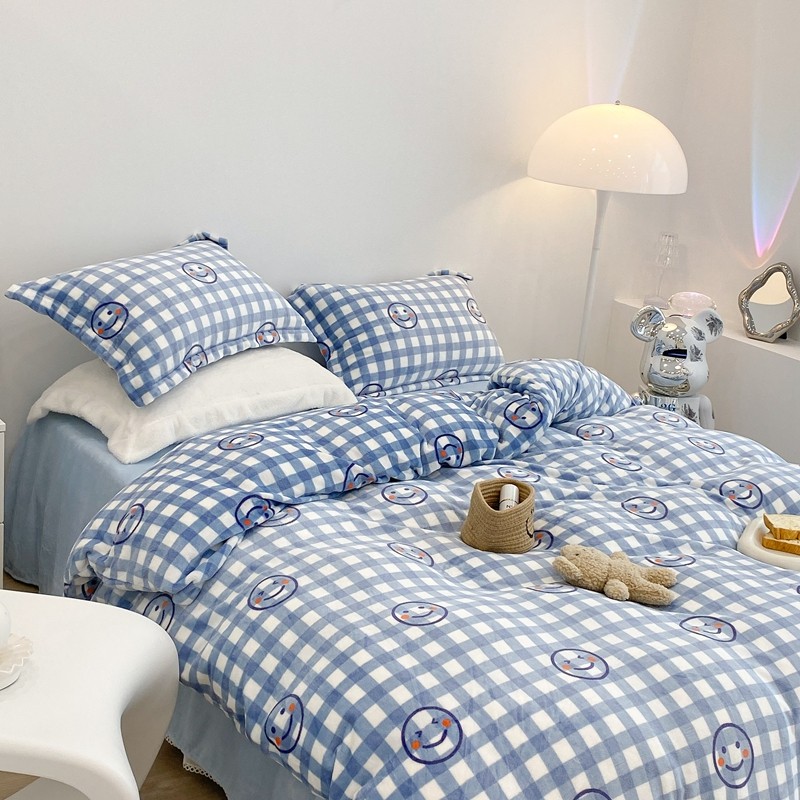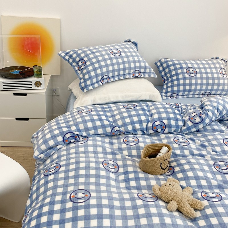 昔可家纺 2021新款牛奶绒四件套-三批 蓝格笑脸