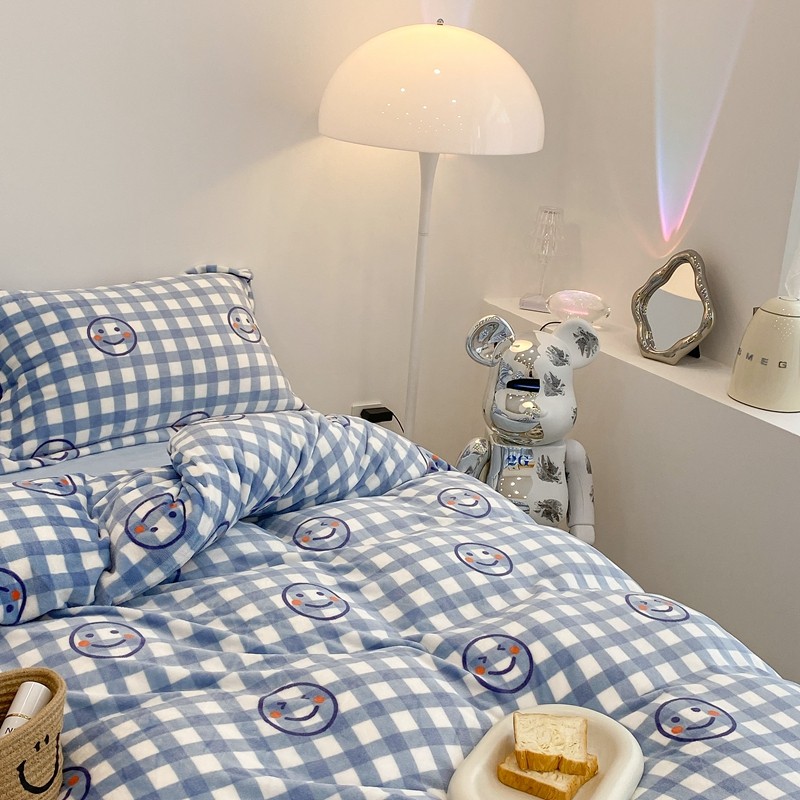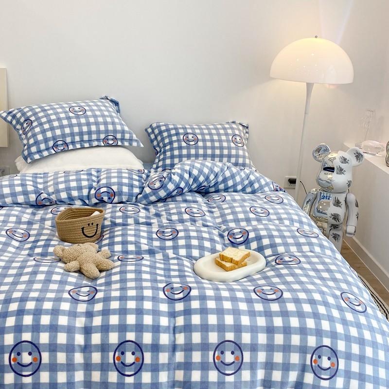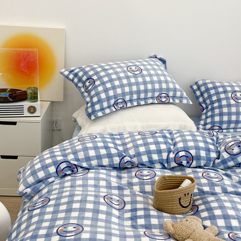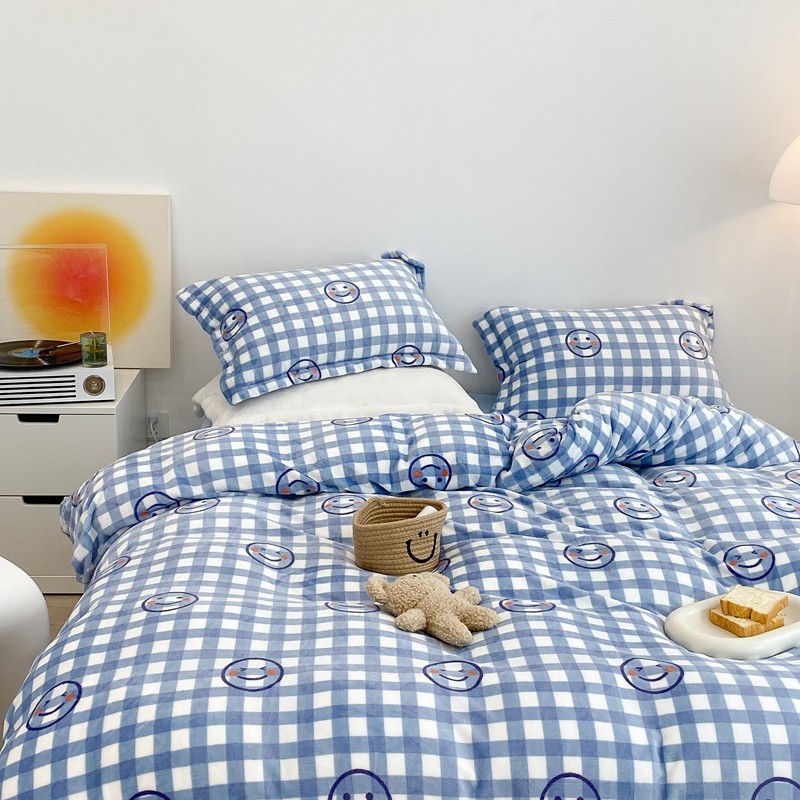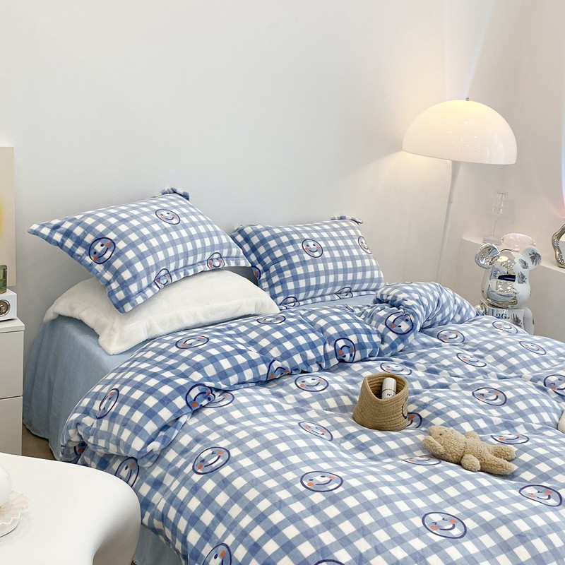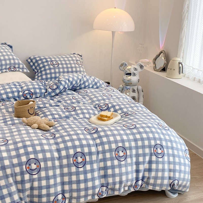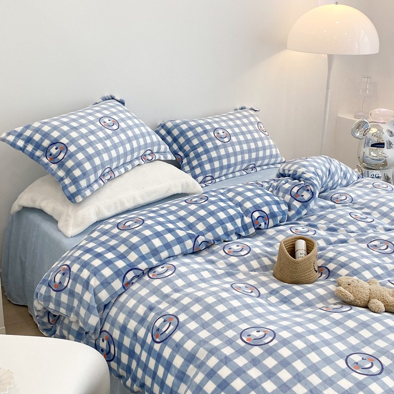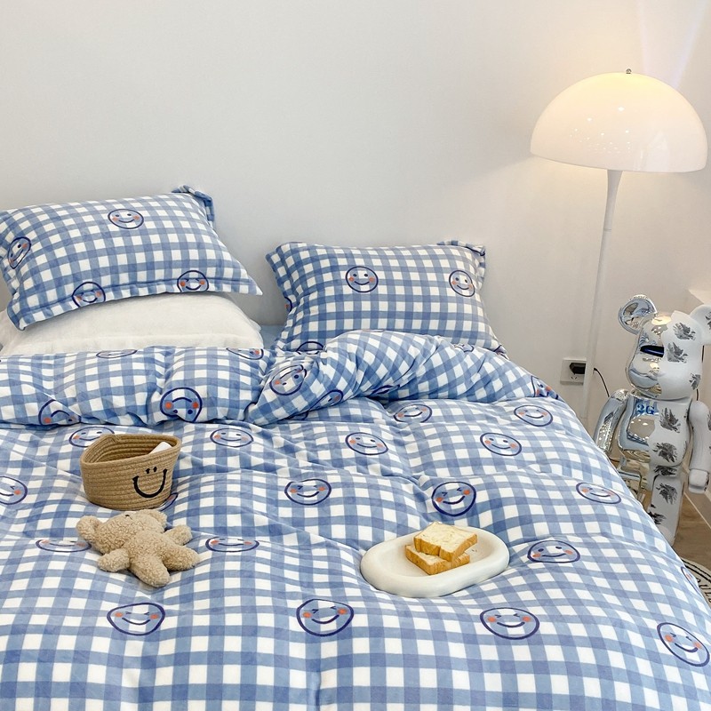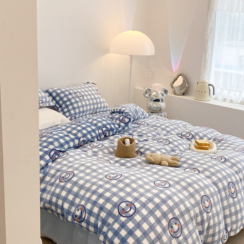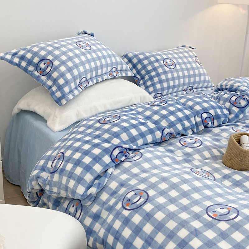 昔可家纺 2021新款牛奶绒四件套-三批 蓝格笑脸