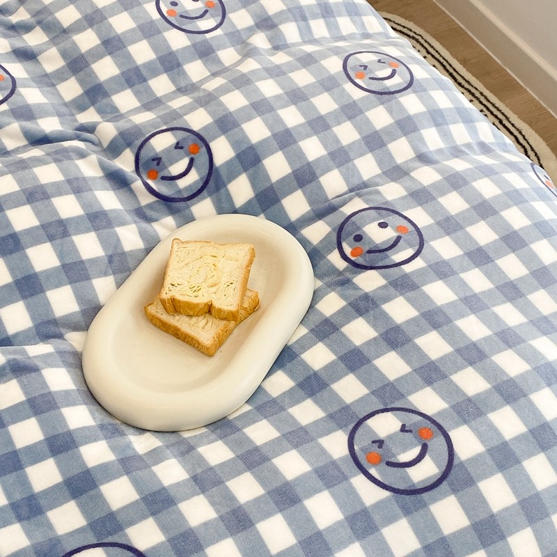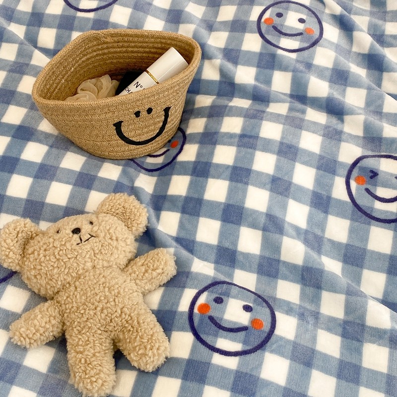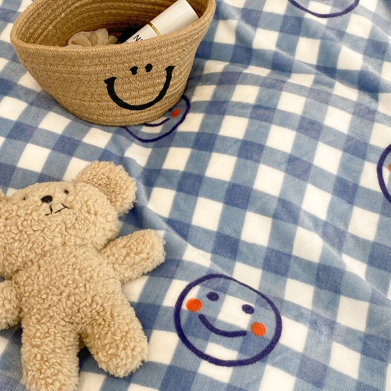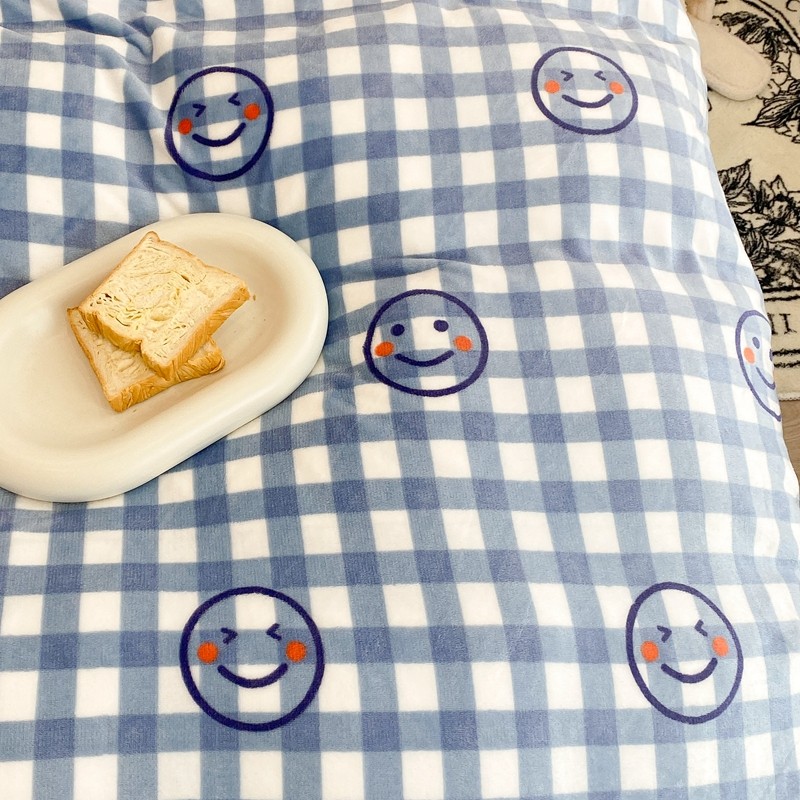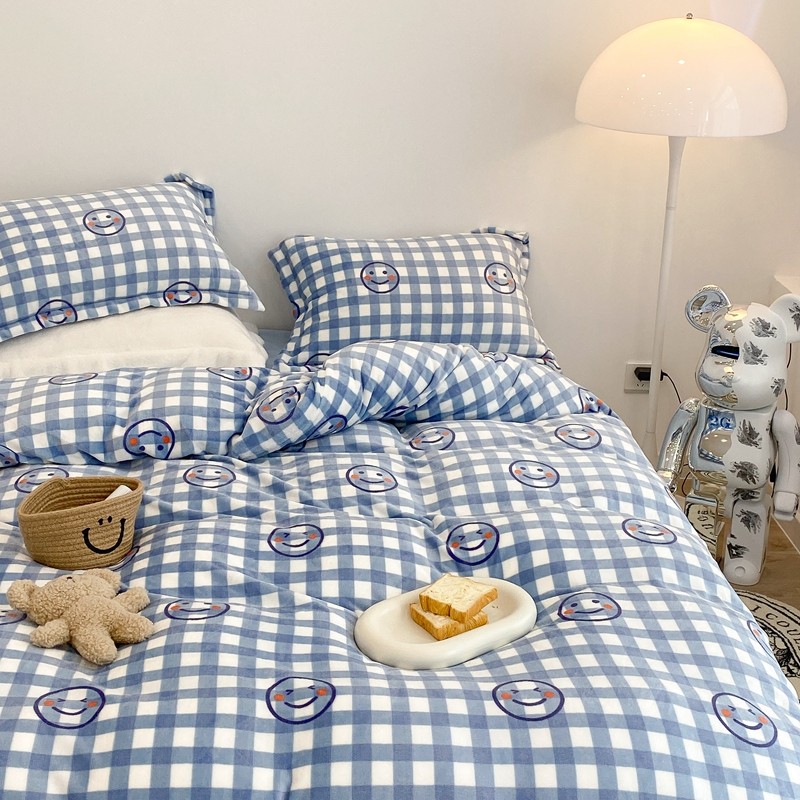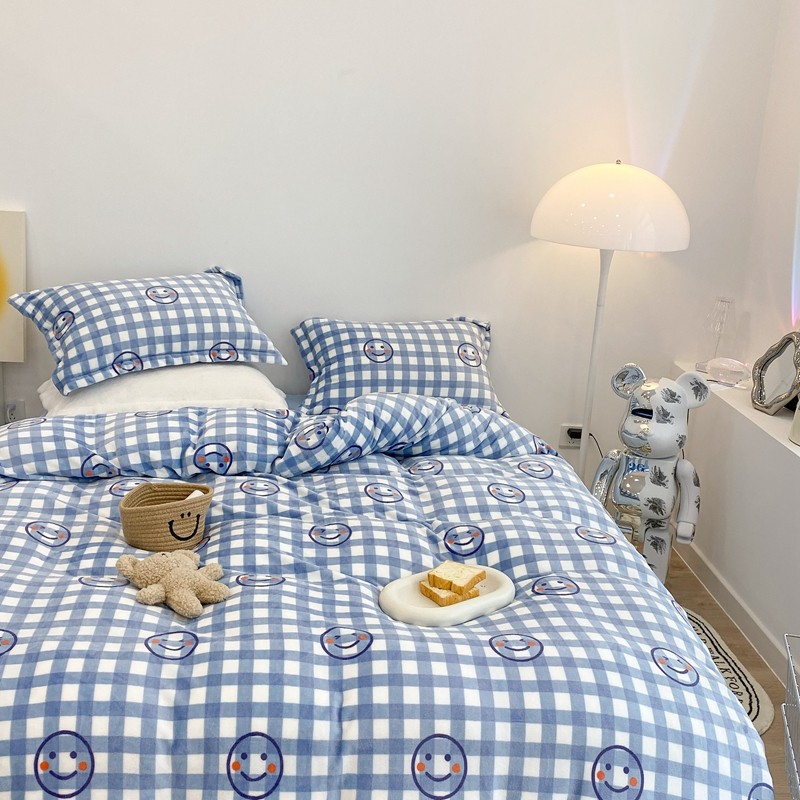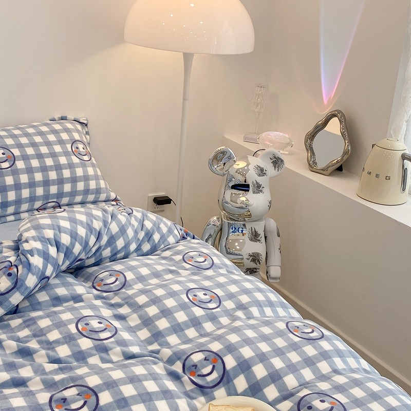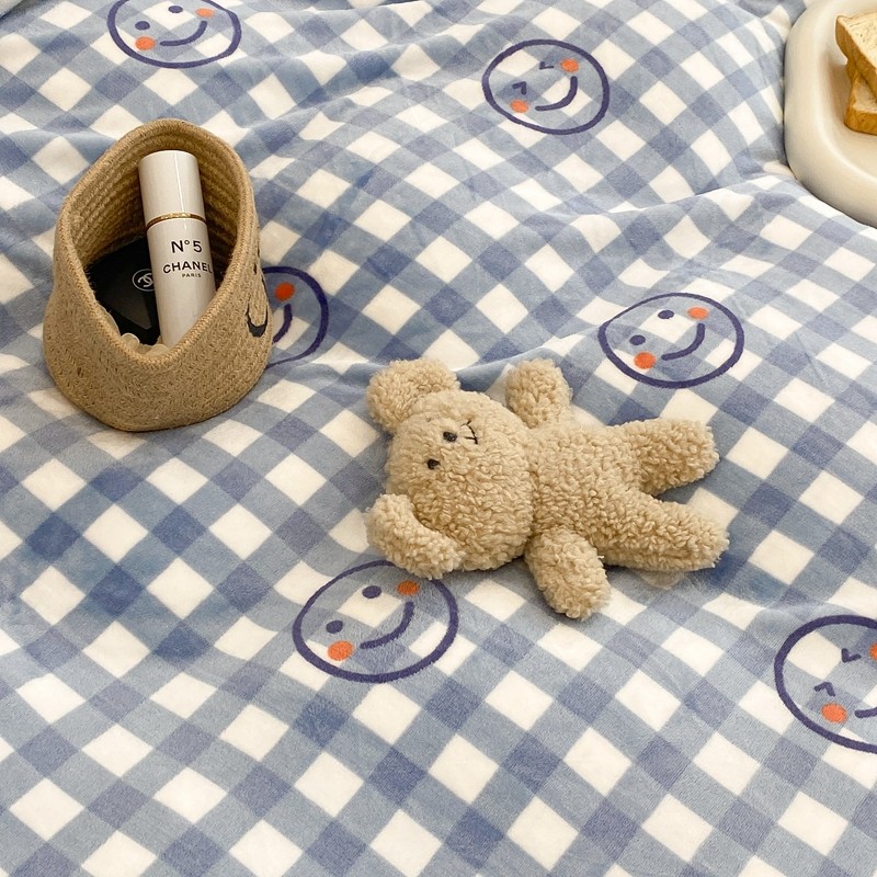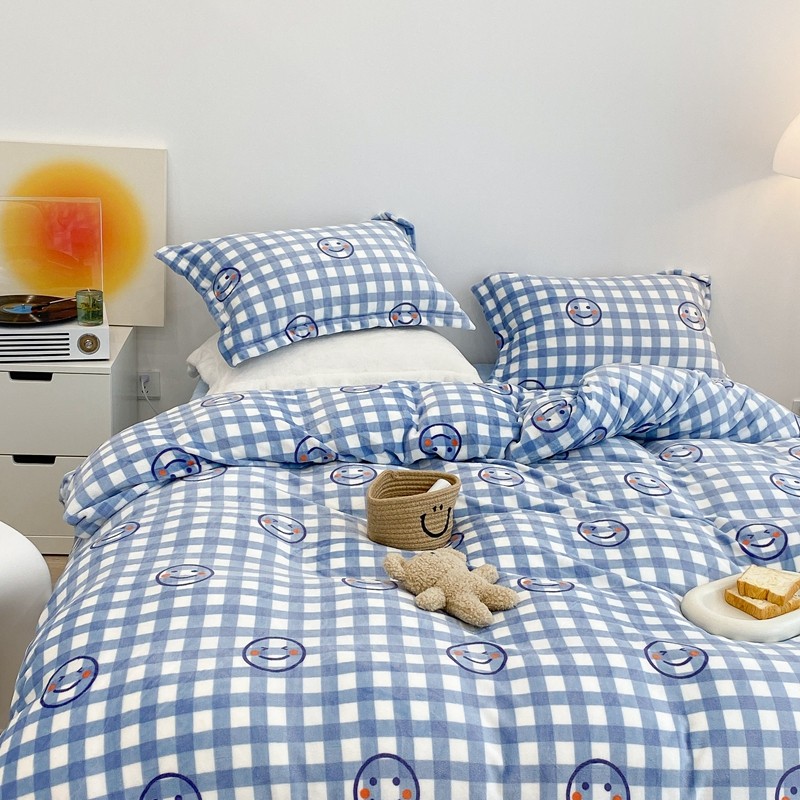 昔可家纺 2021新款牛奶绒四件套-三批 蓝格笑脸