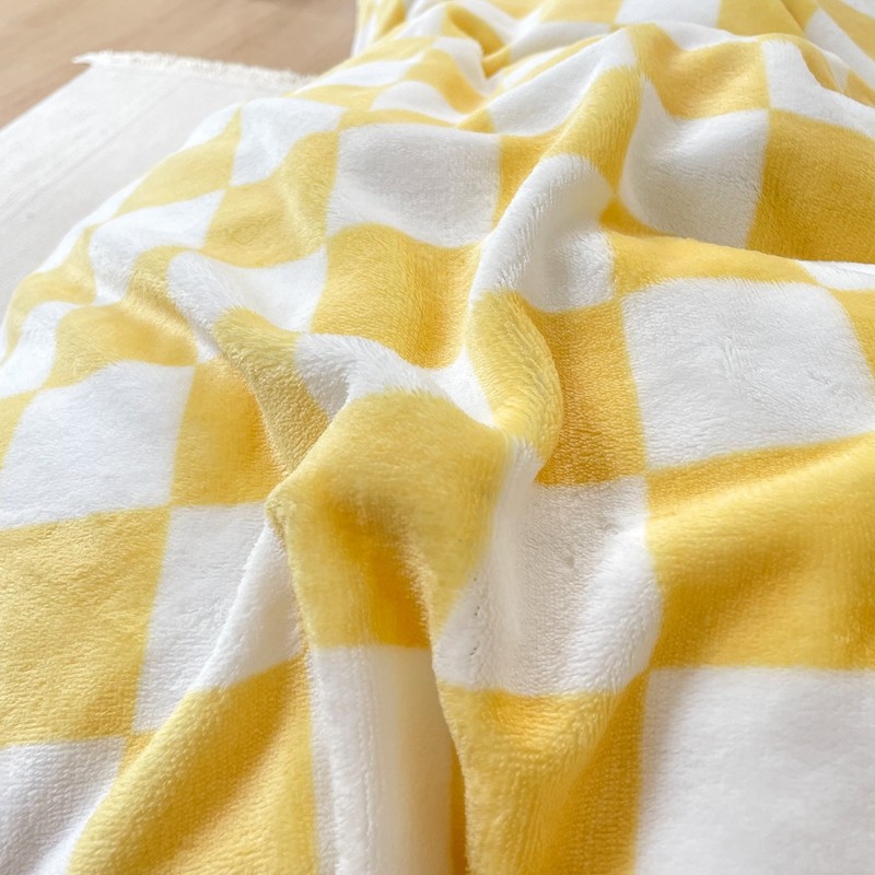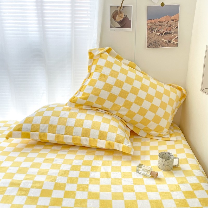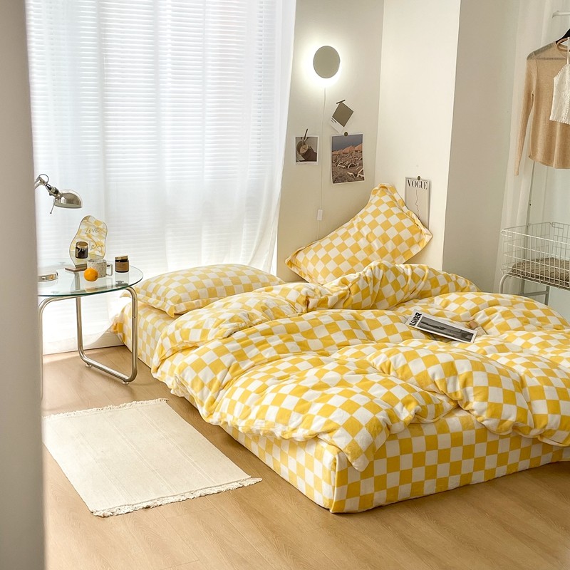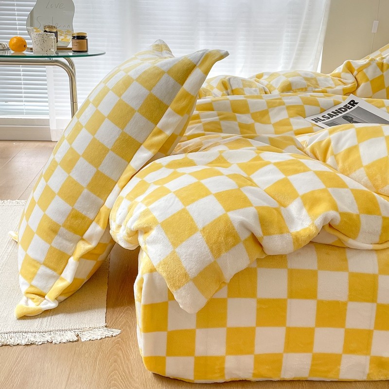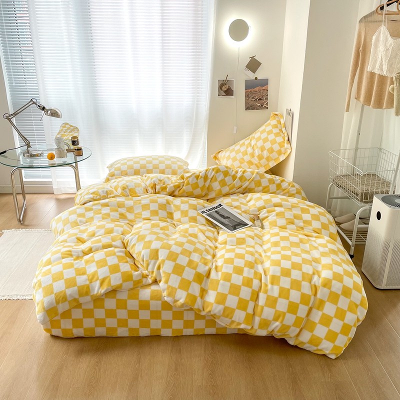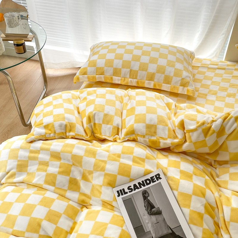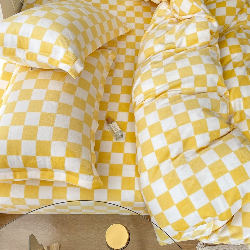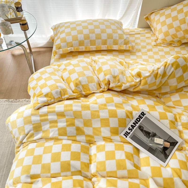 昔可家纺 2021新款牛奶绒棋盘格四件套 棋盘黄