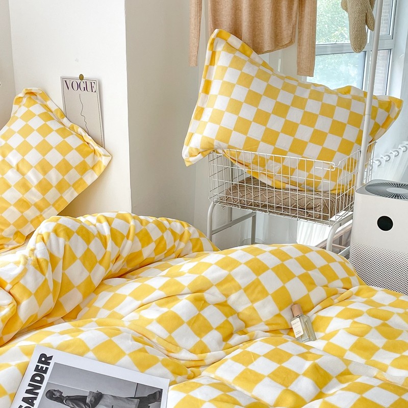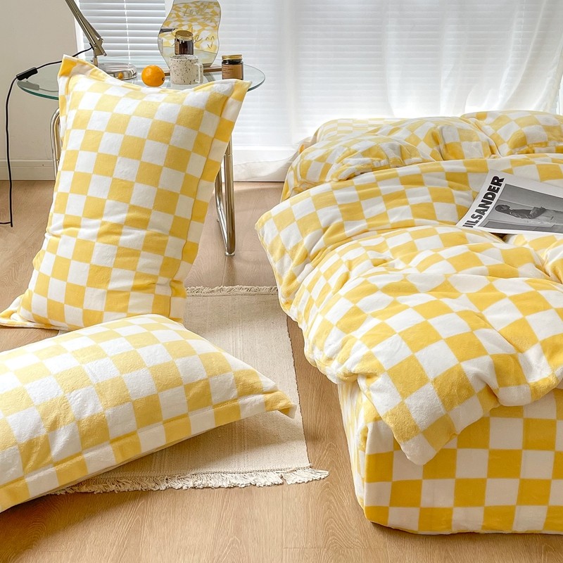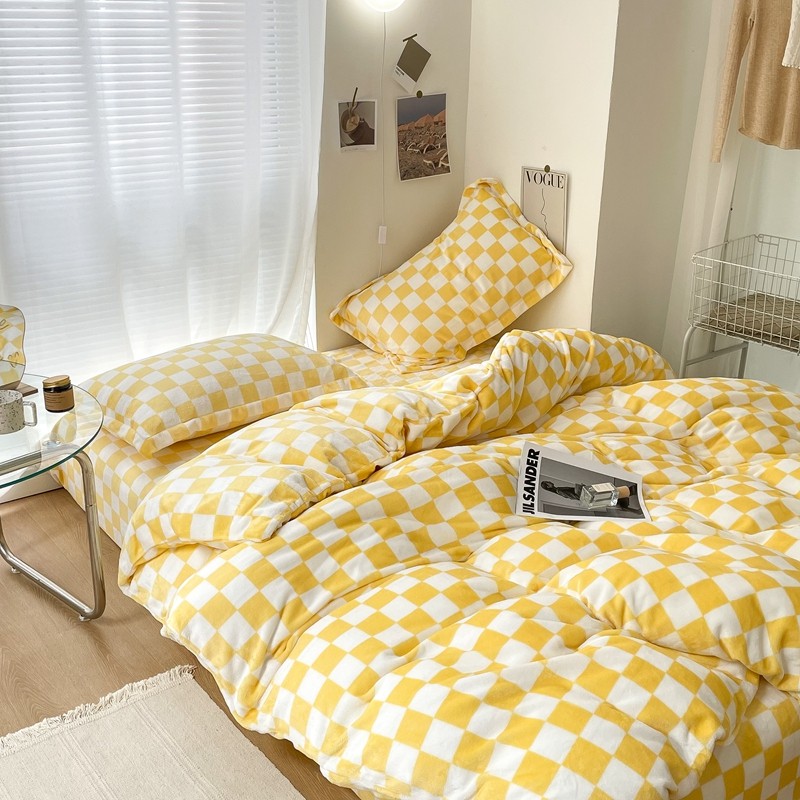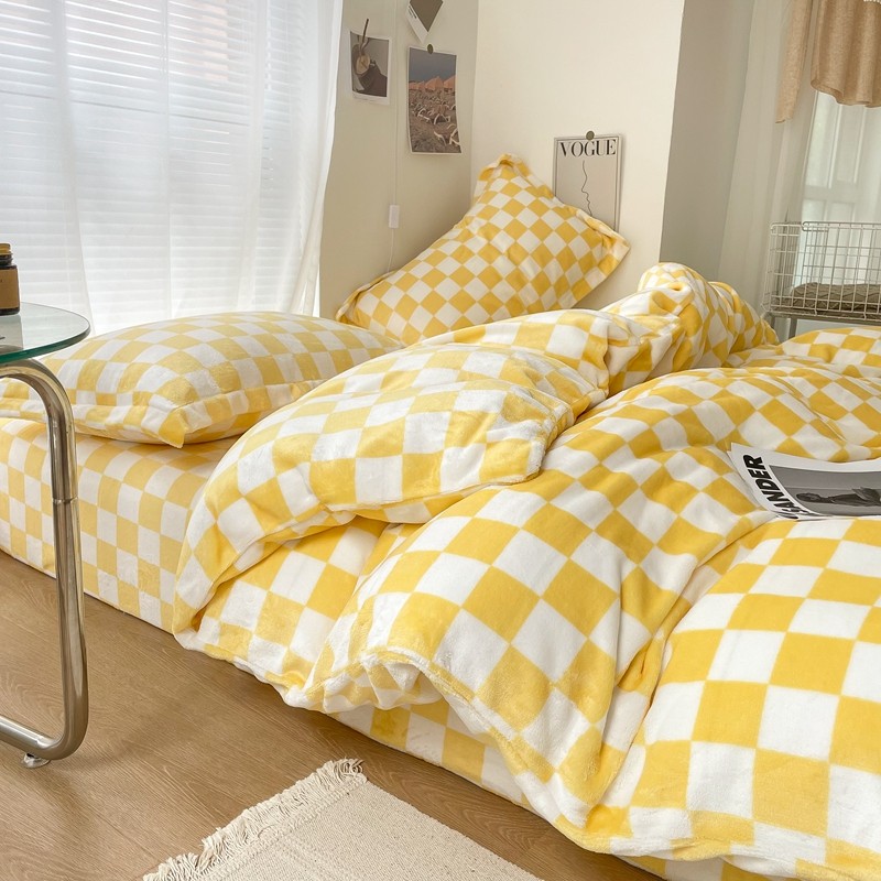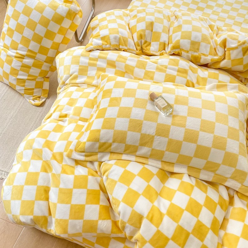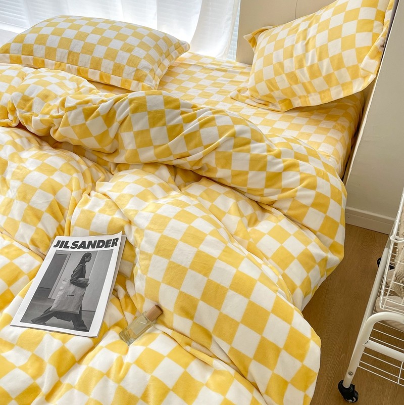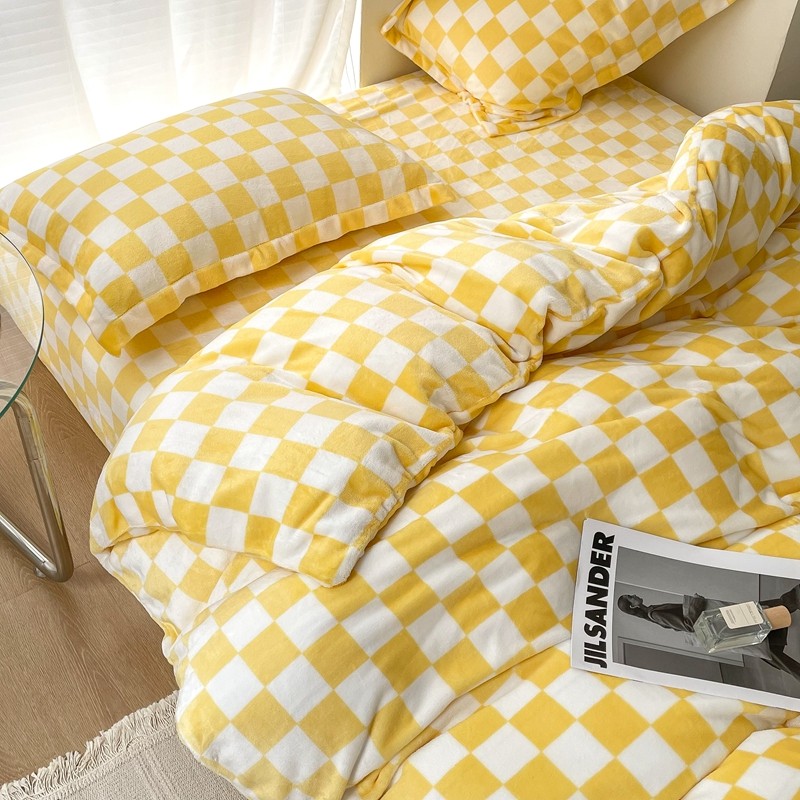 商品名称:昔可家纺 2021新款牛奶绒棋盘格四件套 棋盘黄