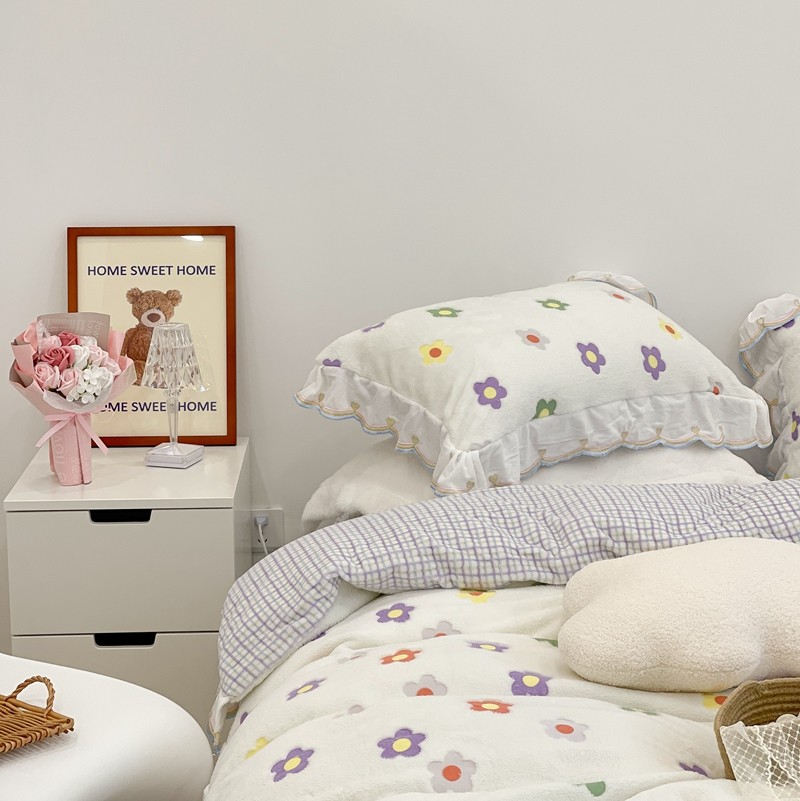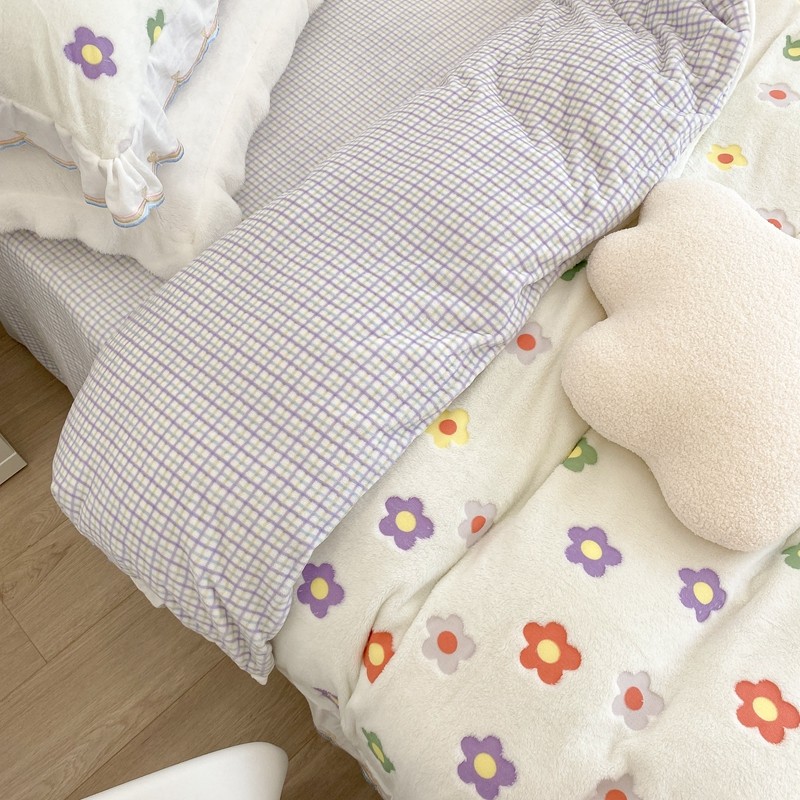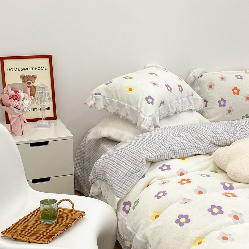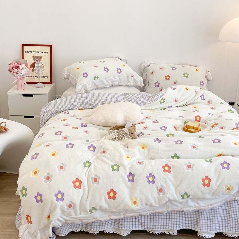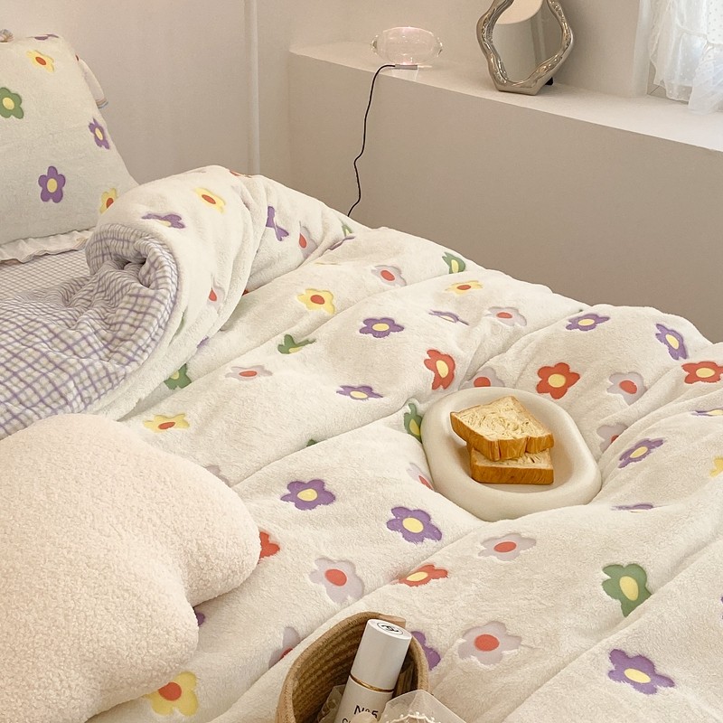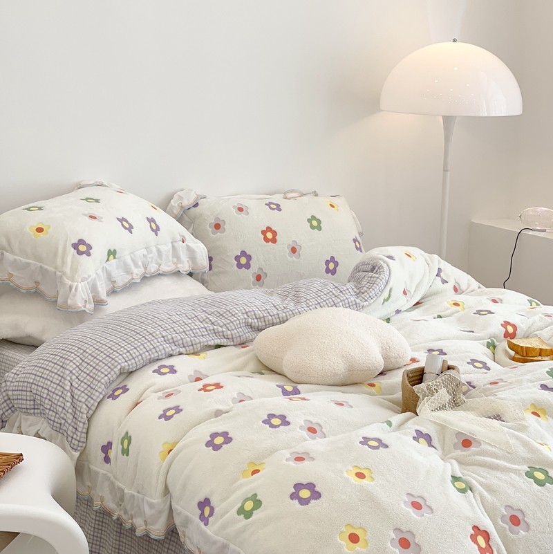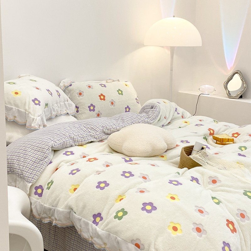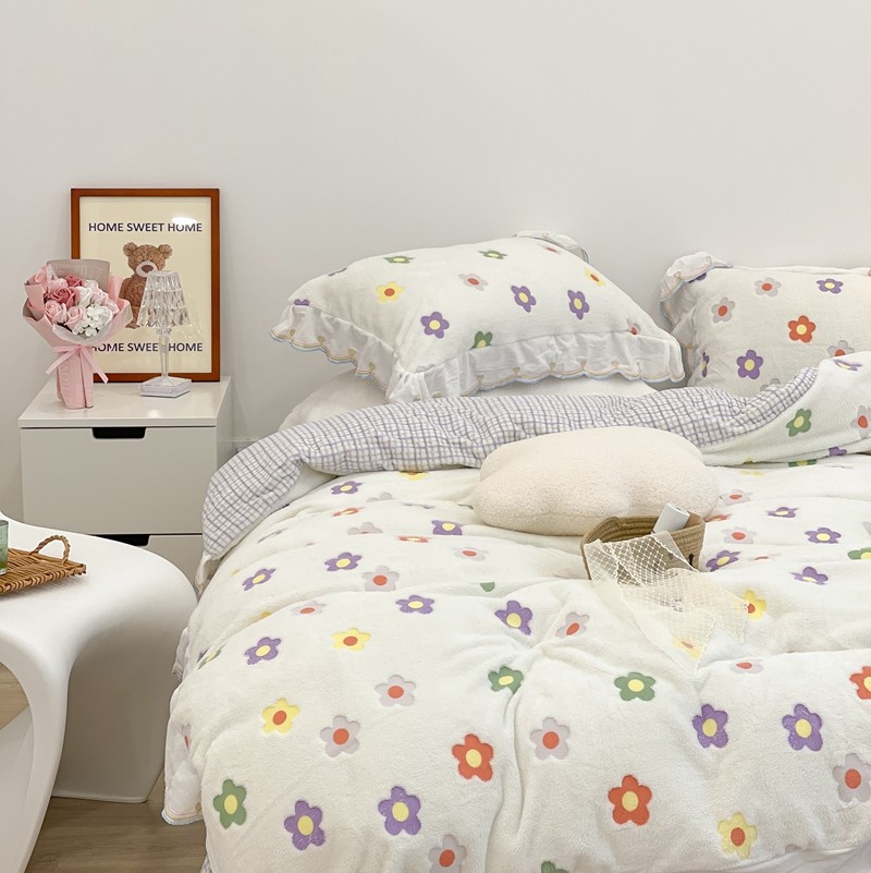 昔可家纺 2021新款coco雪貂绒四件套 炫雅花白